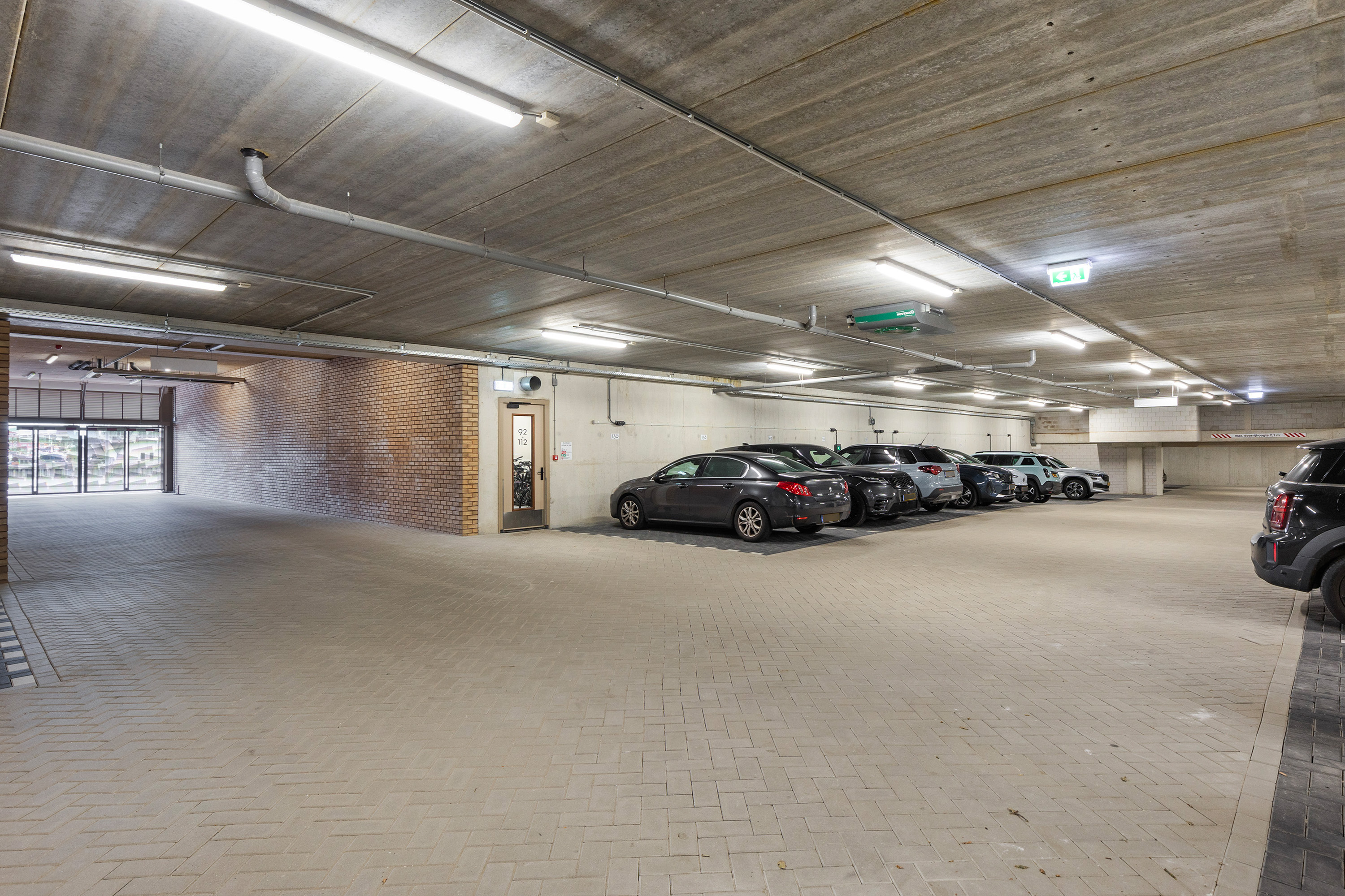 On the lower ground floor there is a private parking space equipped with an individual charging station for an electric vehicle (available for takeover), as well as a spacious private storage room with electricity. There is also a shared indoor bicycle storage area with charging facilities for e-bikes.