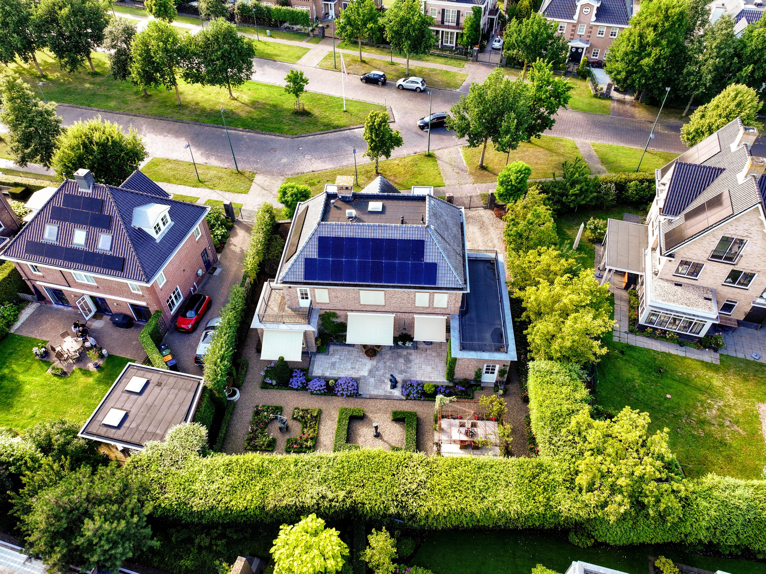 - De 24 zonnepanelen leveren 6.000 tot 6.700 KwH per jaar. Gemonteerd in 2020 (goed voor het totale stroomverbruik incl. elektrische auto’s