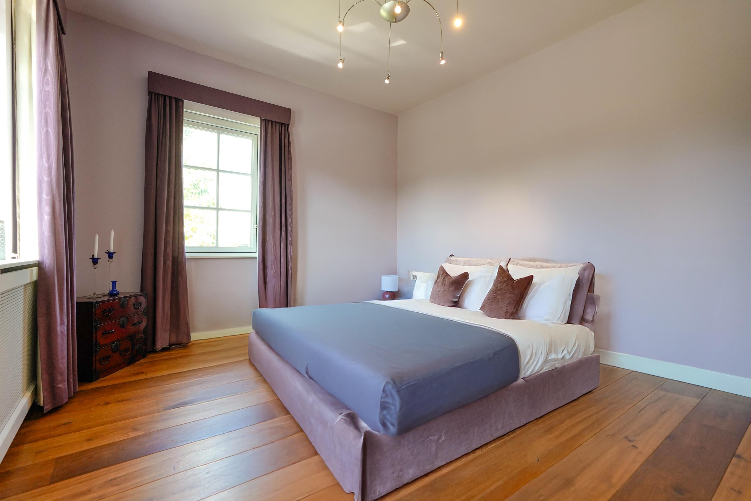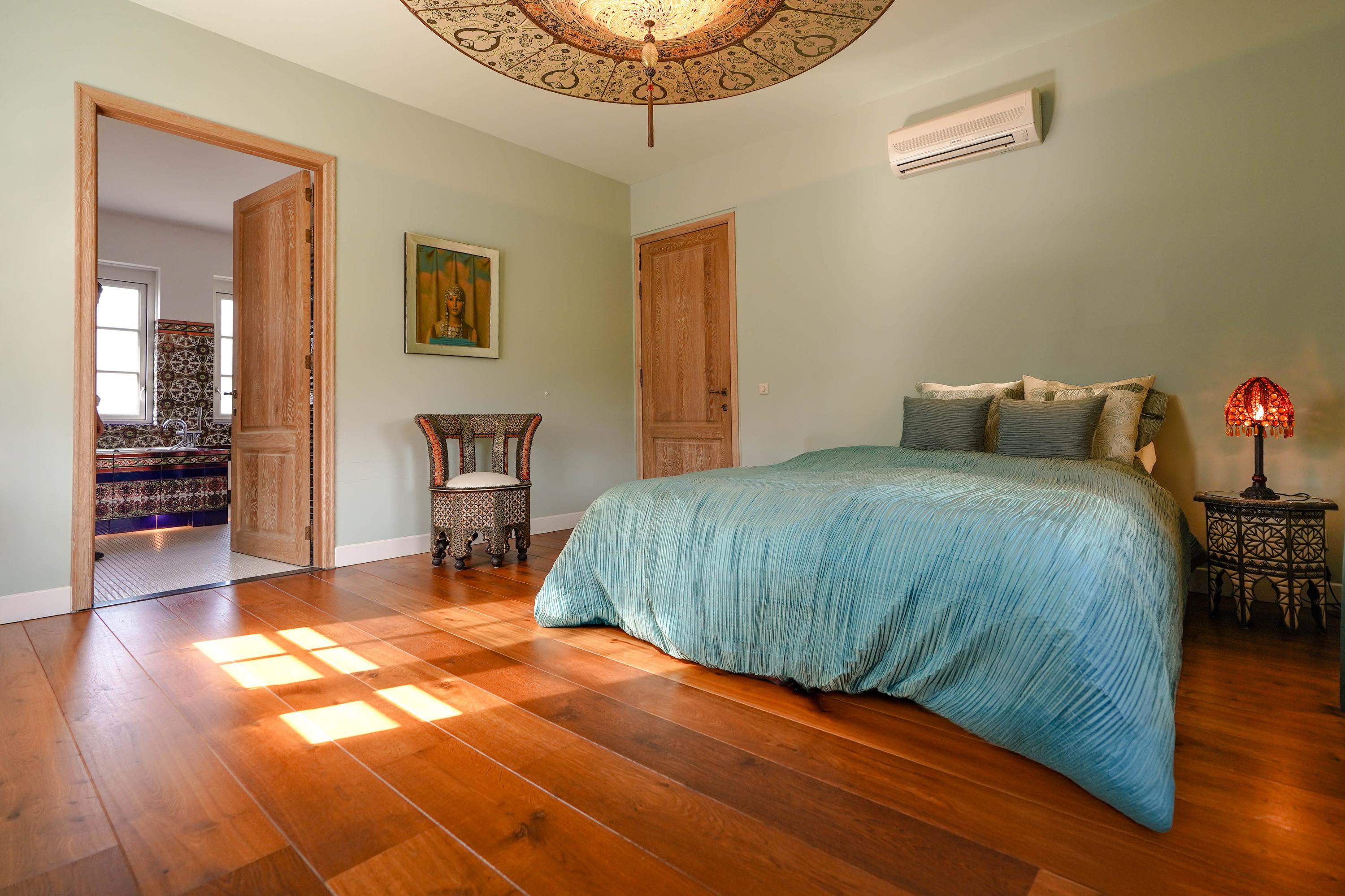 De ruime master bedroom met airconditioning en aangrenzend terras biedt direct toegang tot de badkamer.
