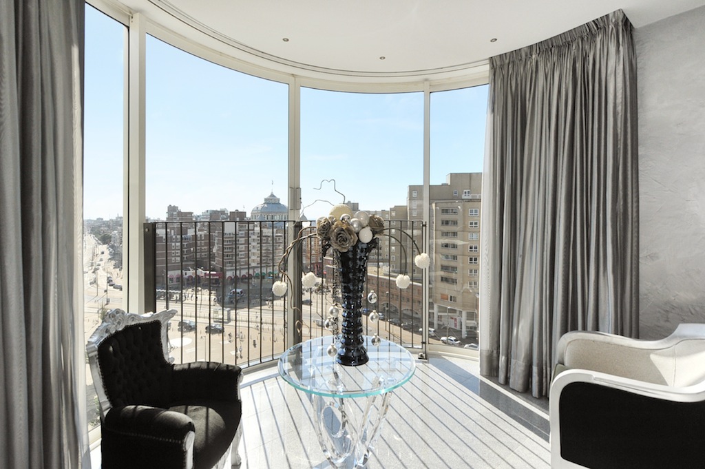 Spanning the full tenth floor of the prominent "Plaza Leonardo da Vinci" apartment complex is this apartment approximately 275 sqm, only 200 m from the sea, with a fantastic view of iconic Kurhaus Hotel, the beach, sea and dunes. The apartment features all conceivable luxuries, including an expansive living room of over 115 sqm with two connecting bright sunrooms, two (previously three) good-sized bedrooms, two bathrooms (previously three), a separate sauna and the possibility to purchase a closed garage box for two parking spaces and a third parking space. The apartment complex, widely known for it Golden Ball as designed by Cees Dam, has international appeal with exquisite finishes and excellent security.