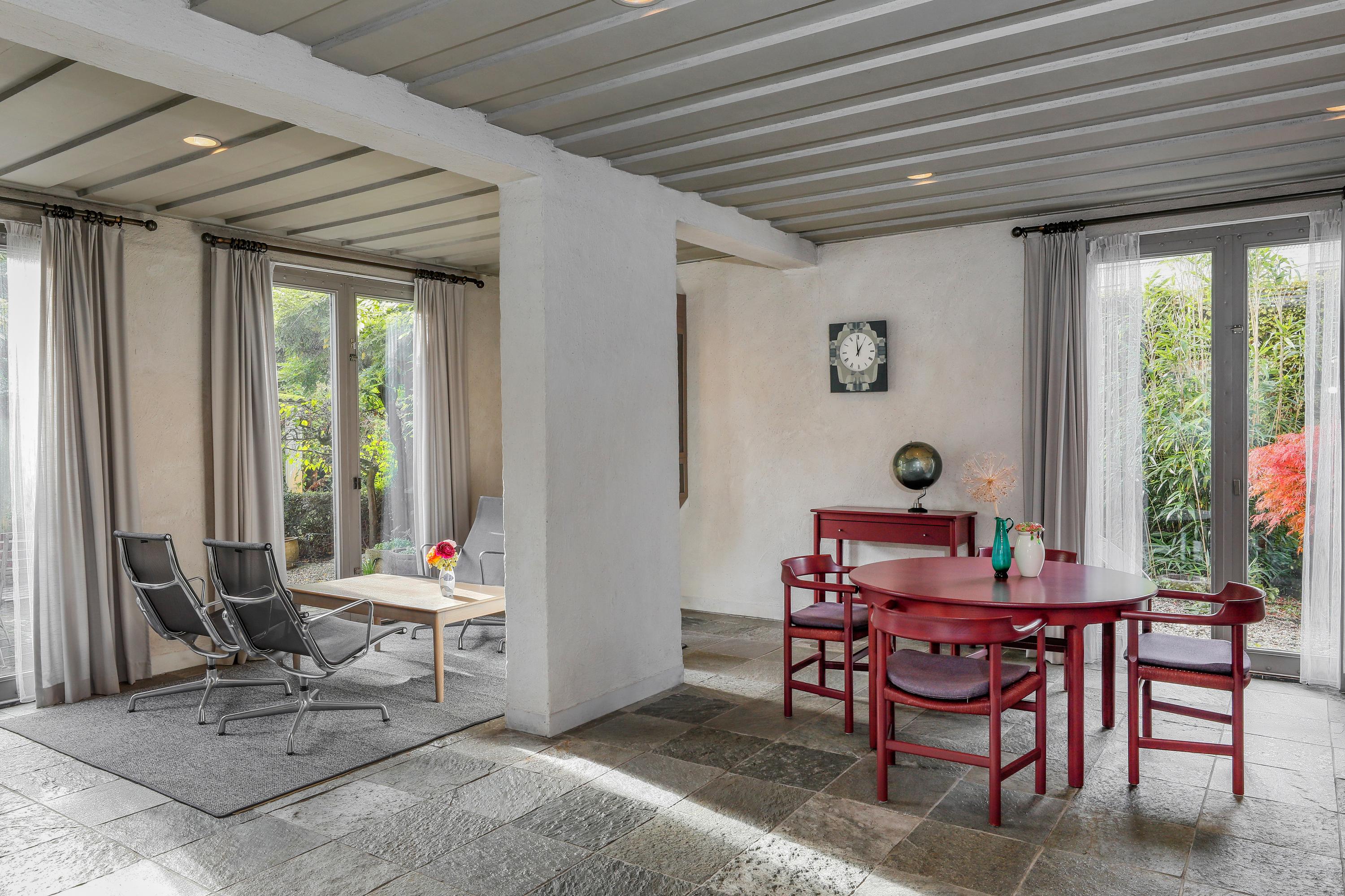 Deze woning is gebouwd in de architectuur van “De Bossche School”. Door deze architectuur, maar ook door de omvang van het pand en het perceel, laat het zich niet vergelijken met andere woningen in de wijk. De architectuur garandeert de bewoner ruimtes met de juiste verhoudingen en mooie doorkijken. Er is een voorhuis en een achterhuis welke verbonden zijn door een hal en trappenhuis. Niet alleen het aantal slaapkamer, maar ook de grote leefruimtes, zorgen ervoor dat je hier als gezin heel royaal en comfortabel leeft. De grote tuin rondom doet dit ook. Er zijn diverse terrassen, een speelveld met volwassen bomen en een bloementuin aan het atelier. Dít is het huis waarvan de buurt zich afvroeg wanneer het te koop zou komen. Nu is dus uw kans.