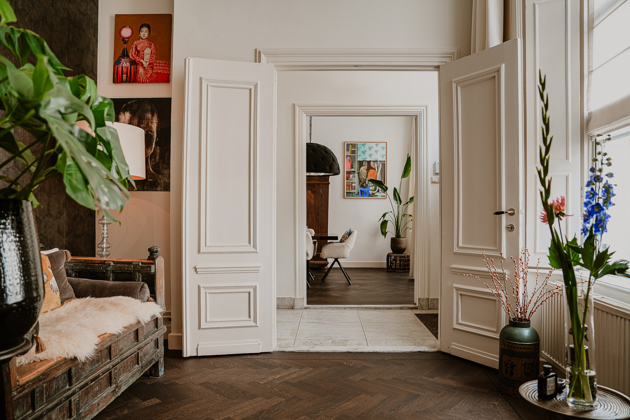 Only the truly wealthy could afford such a wide house at the time of its construction in 1820. Taxes were based on the width of your house. This width still creates a striking and stately home today, with all those tall windows ensuring a very bright living space. The symmetry of a central hallway and living on the first floor also makes for a very pleasant living experience. It's a proud property with no fewer than 10 rooms. So whether you're setting up your office here or occupying it entirely with a large family, it's always a perfect fit.