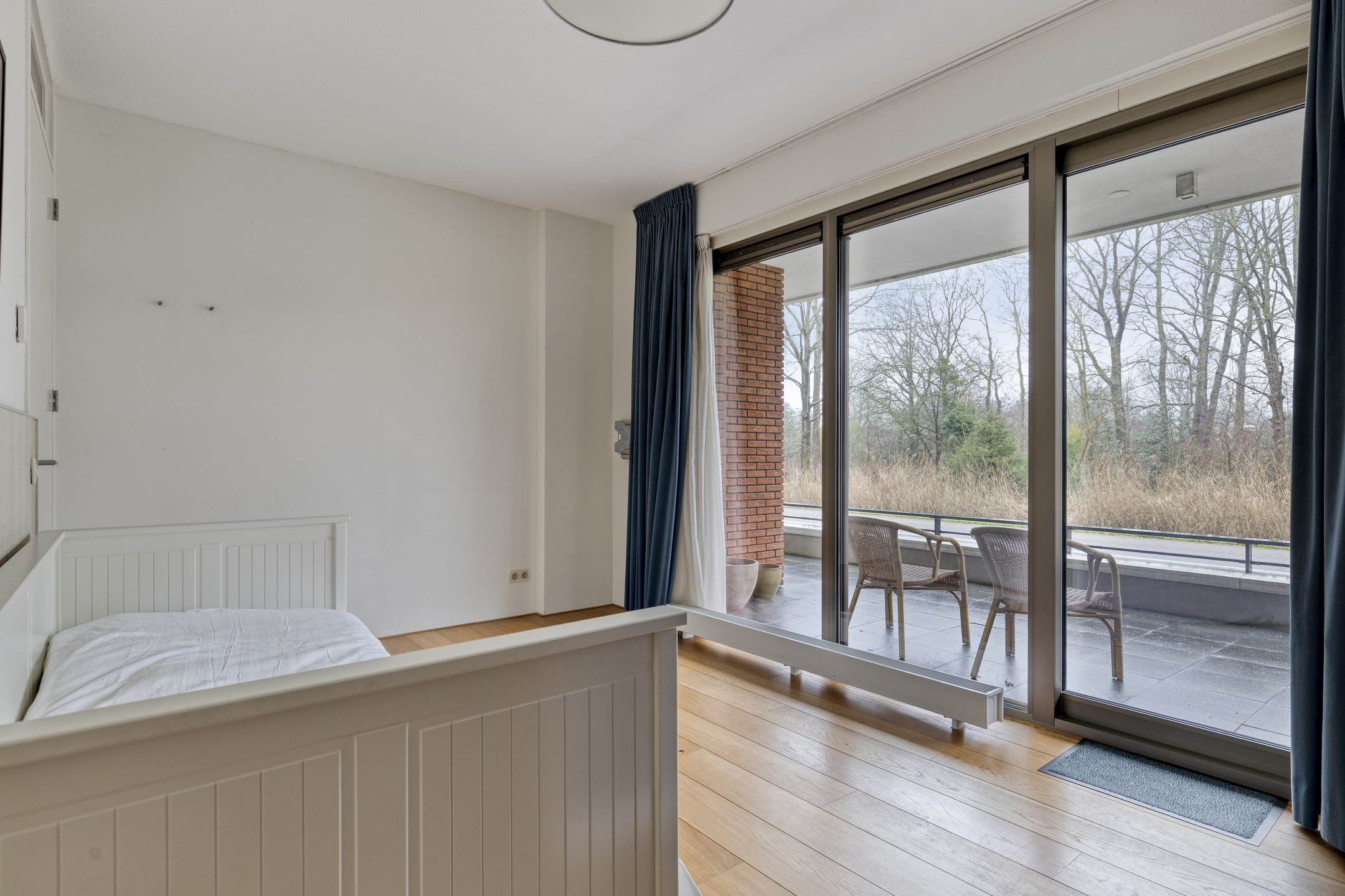 On the right-hand side of the apartment are three spacious bedrooms. All bedrooms feature aluminium sliding doors with direct access to the terrace and offer beautiful views of the surrounding greenery. One of the bedrooms also has practical built-in wardrobes, a washbasin and connections that make it possible to create a second bathroom if desired.