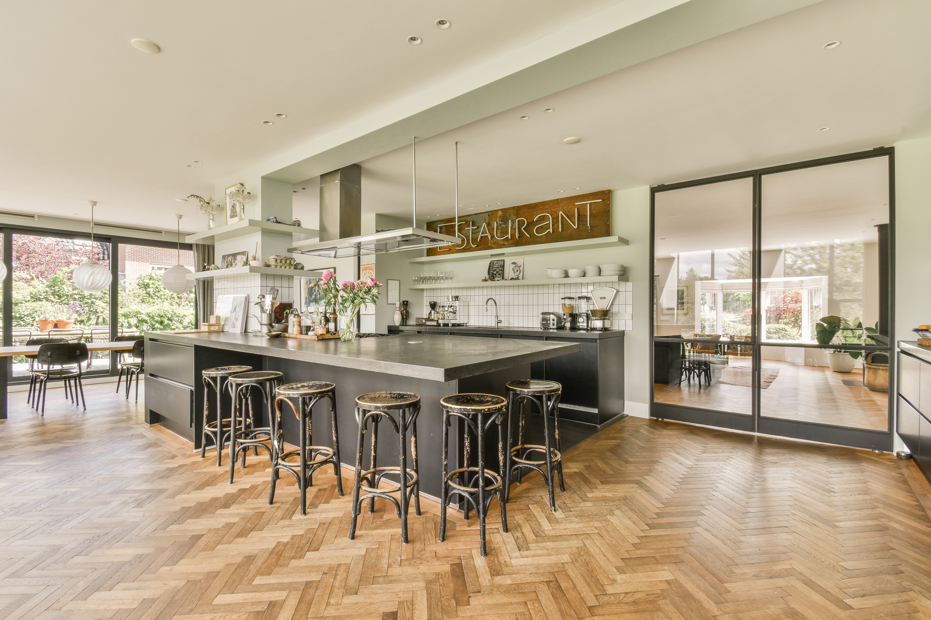 Unique and charming semi-detached villa (407 m²) with thatched roof and unobstructed views over the Amstel. This beautiful family house, completely renovated in 2016, is located in one of the most beautiful locations just outside Amsterdam (a few cycling minutes away from Amsterdam). The house offers free and wide views on all sides over the Amstel in front and meadows behind. The beautiful garden has a heated swimming pool, where you can fully enjoy an oasis of luxury and privacy. The generous plot offers everything one could wish for, including multiple private parking spaces in addition to free street parking.