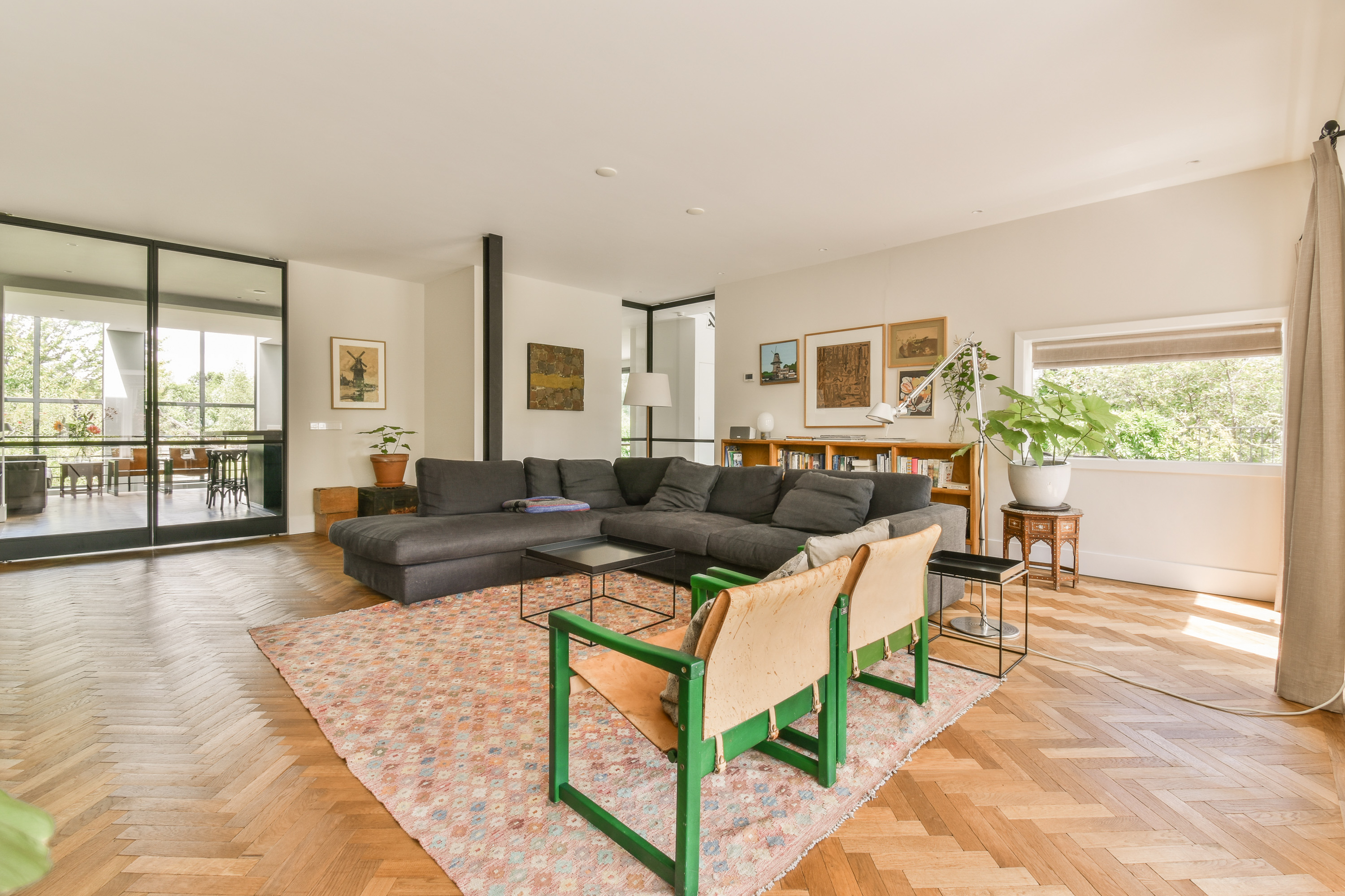 The classic semi-detached 1930s villa enjoys an open view of the Amstel River at the frond and offers a serene escape at the rear, with a sunny garden and terrace overlooking the farmlands. The house is situated on a generous plot of 2,415m². The beautifully landscaped backyard approximately 87 metres deep and about 23 metres wide. It features three terraces and a swimming pool, offering an ideal setting to enjoy the sun from early spring onwards in complete privacy and comfort.