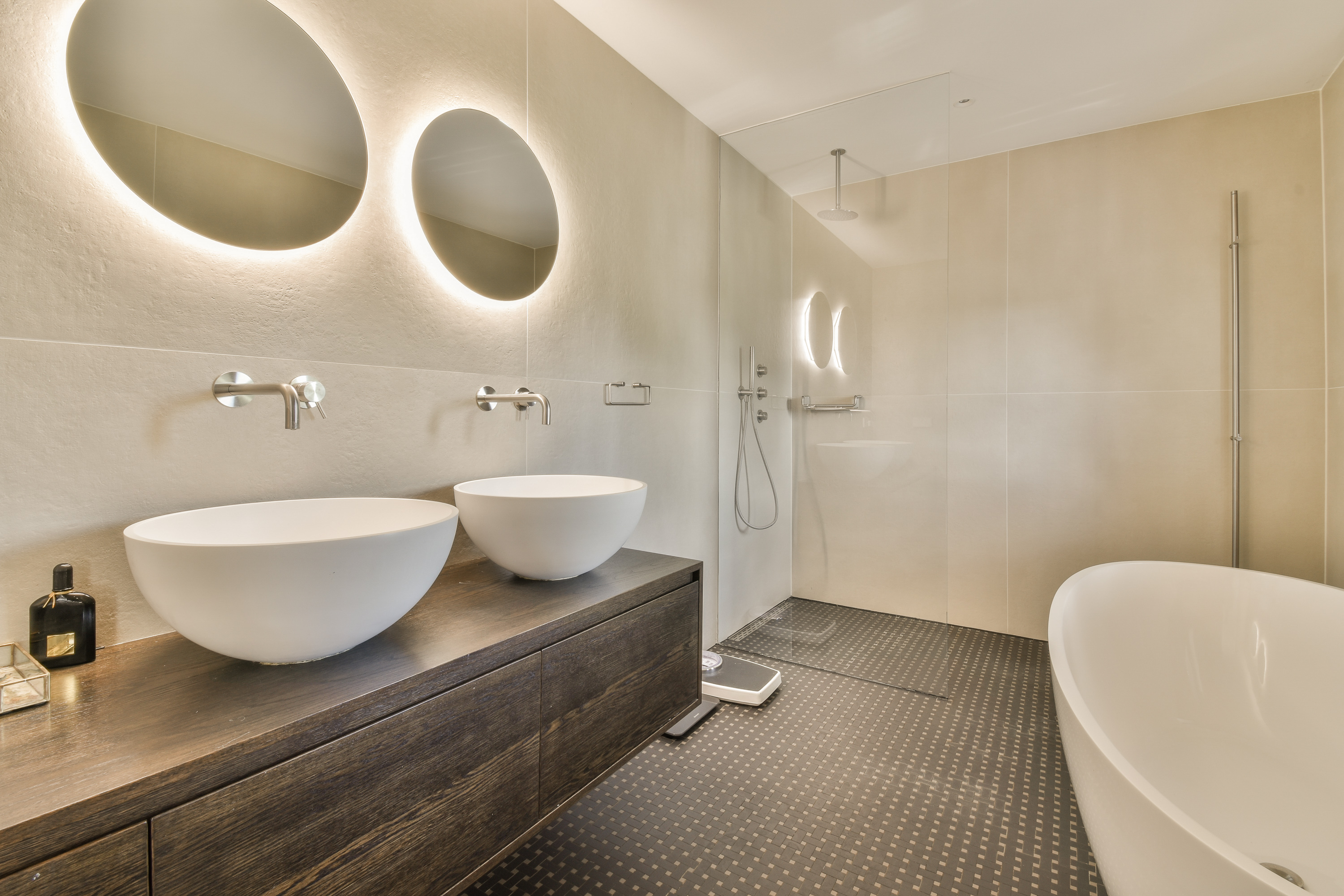A staircase leads to the first floor, where peace and privacy are key. At the front of the home is the spacious bedroom, offering panoramic views of the Amstel. This room includes a large walk-in closet and a luxurious en-suite bathroom with a freestanding bathtub, double vanity, walk-in shower and toilet. At the rear is a second large bedroom, also with an en-suit bathroom. This bathroom is equipped with a double sink, walk-in shower and toilet. A bright landing connects the rooms and enhances the overall sense of space and refinement.