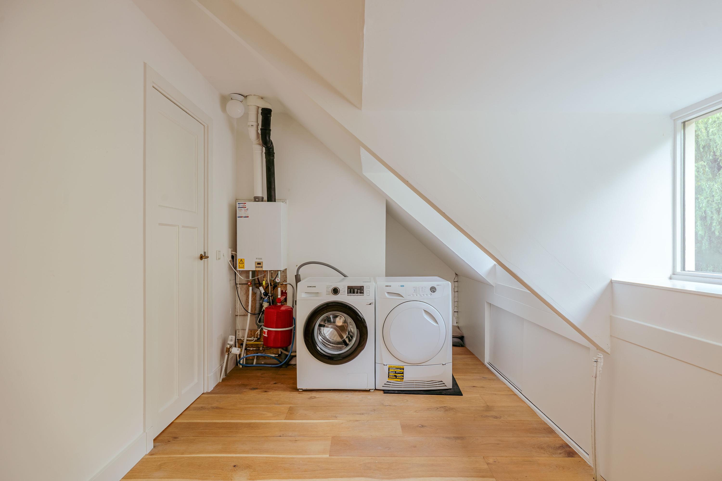 Light moves through the space from south-facing windows and a garden door that opens to the professionally designed 41 m² garden. This outdoor retreat, created in 2022, features architectural landscaping, lighting, irrigation, and an external storage space with electricity. Upstairs, three serene bedrooms are supported by a generous bathroom with a heated mirror and double washbasin. A further two bedrooms, including a flexible second-floor suite with a newly installed dormer and triple glazing, offer privacy and versatility. The second bathroom introduces additional space for guests or family, with contemporary finishes and underfloor heating.