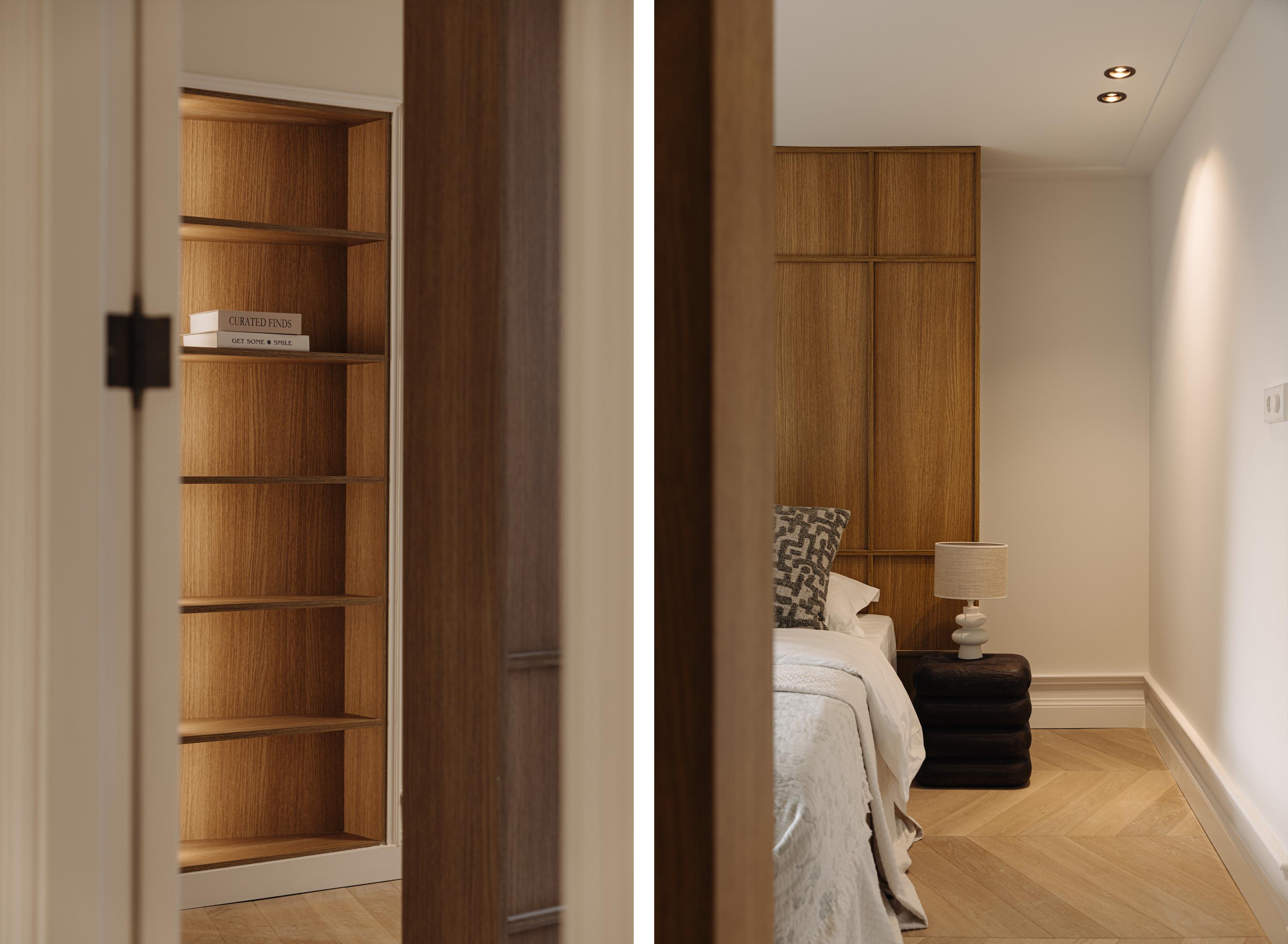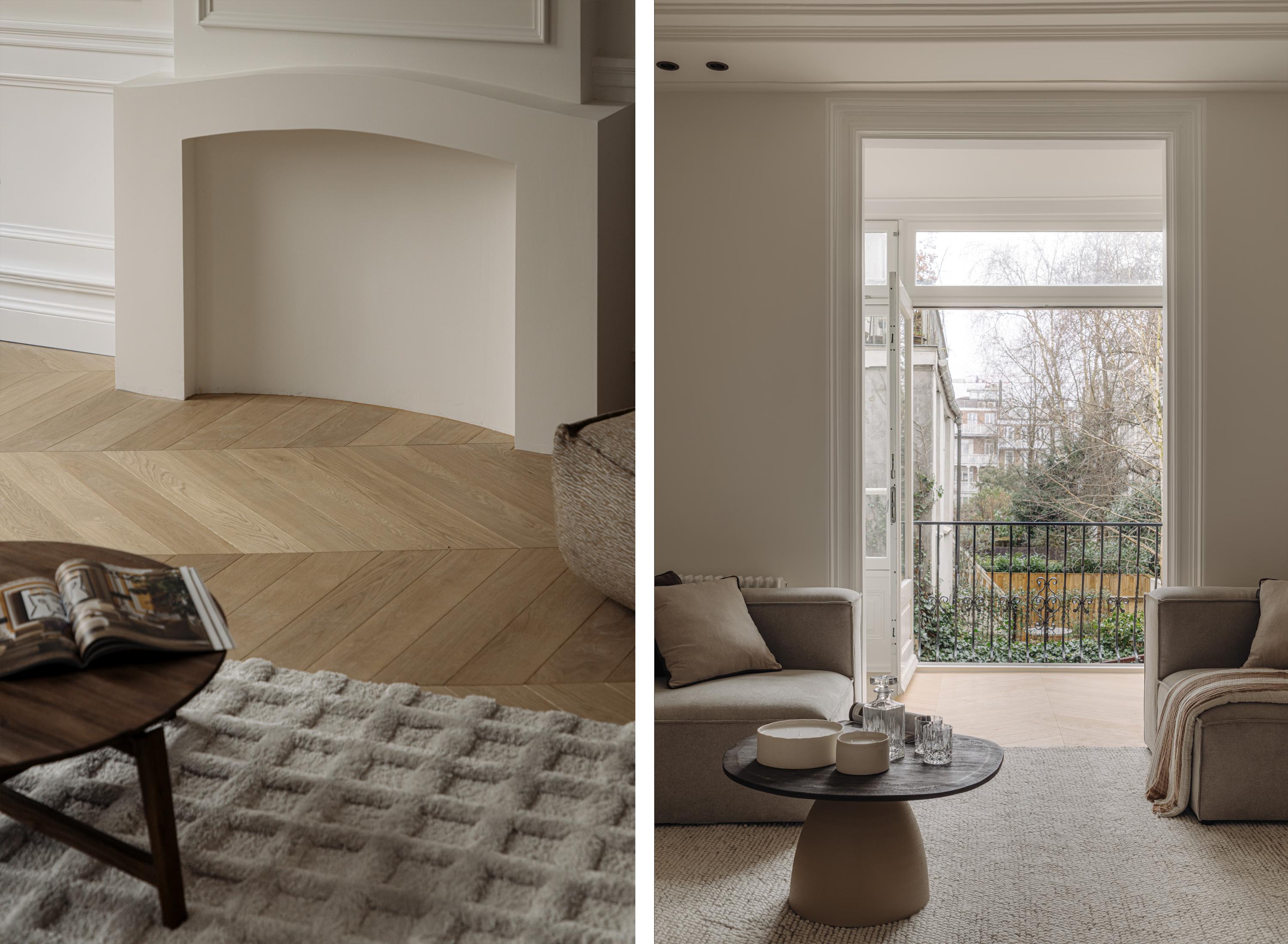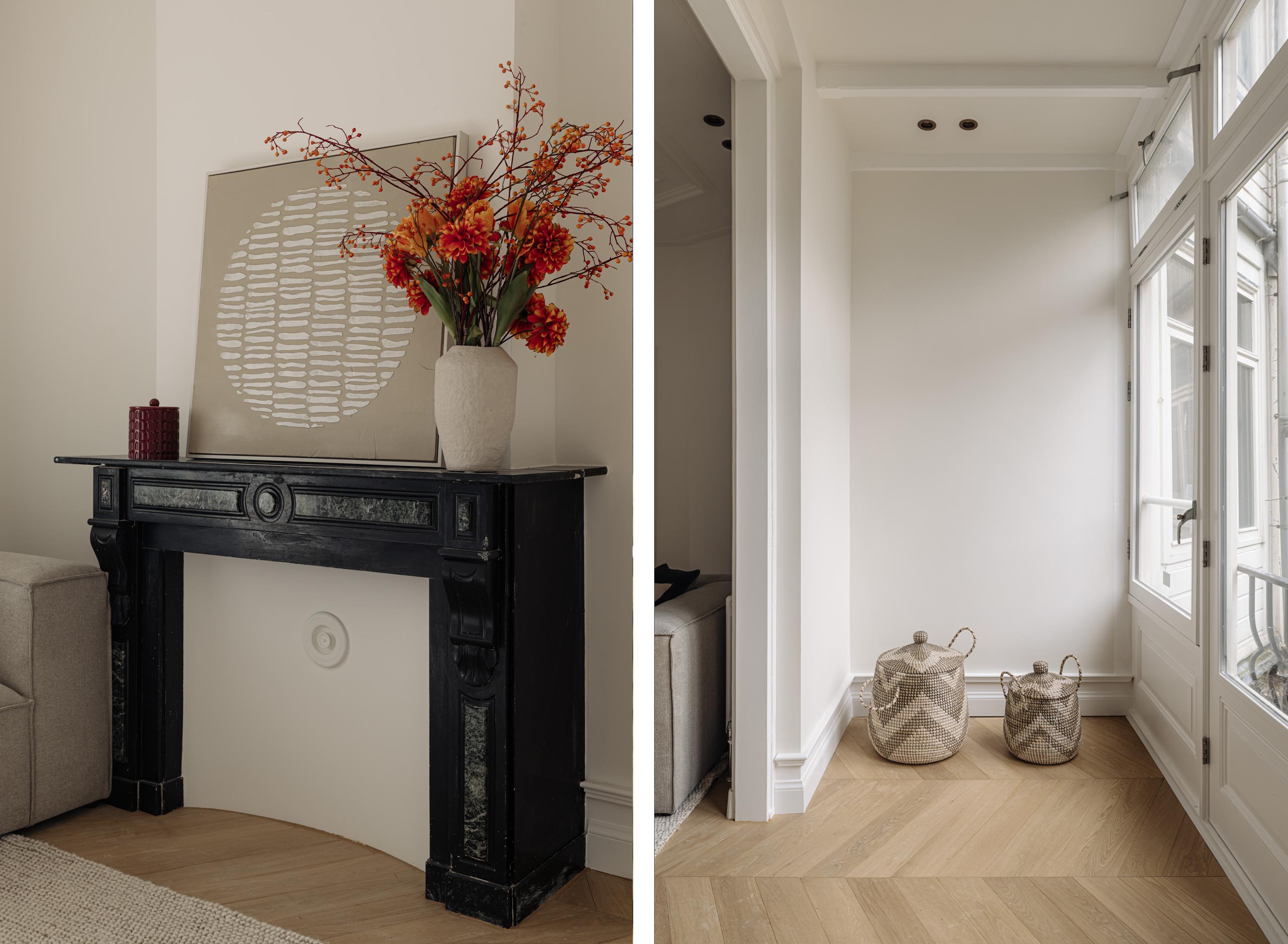 The monumental staircase leads to the landing of the first floor. At the rear is the classic dining room with access to a second internal balcony. This balcony features a folding glass façade, seamlessly connecting indoor and outdoor living. Thanks to its favourable position, you can enjoy the sun here well into the evening. At the front is the spacious kitchen-diner with cooking island—without doubt the centrepiece of the home. The kitchen is finished in beautiful dark oak and complemented by an elegant composite worktop. It is equipped with high-end Siemens StudioLine appliances, a Bora cooktop, and a Quooker tap. The island also features a welcoming bar area. With a width of nearly 7 metres and three large windows, the kitchen enjoys wonderful open views towards Jan Luijkenstraat. From both the kitchen and the landing, the fourth (bed)room can be accessed, which is ideal as a home office or study.