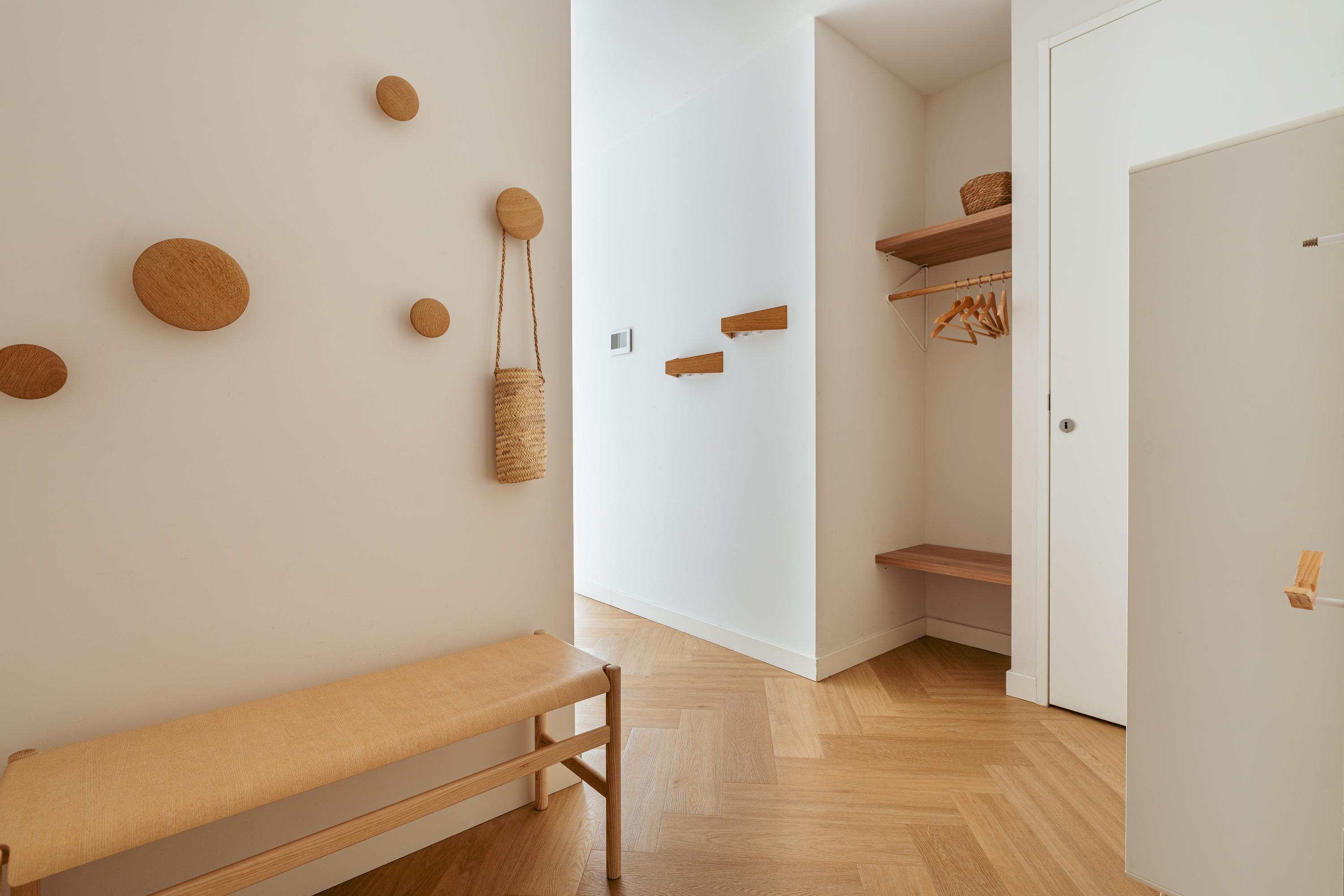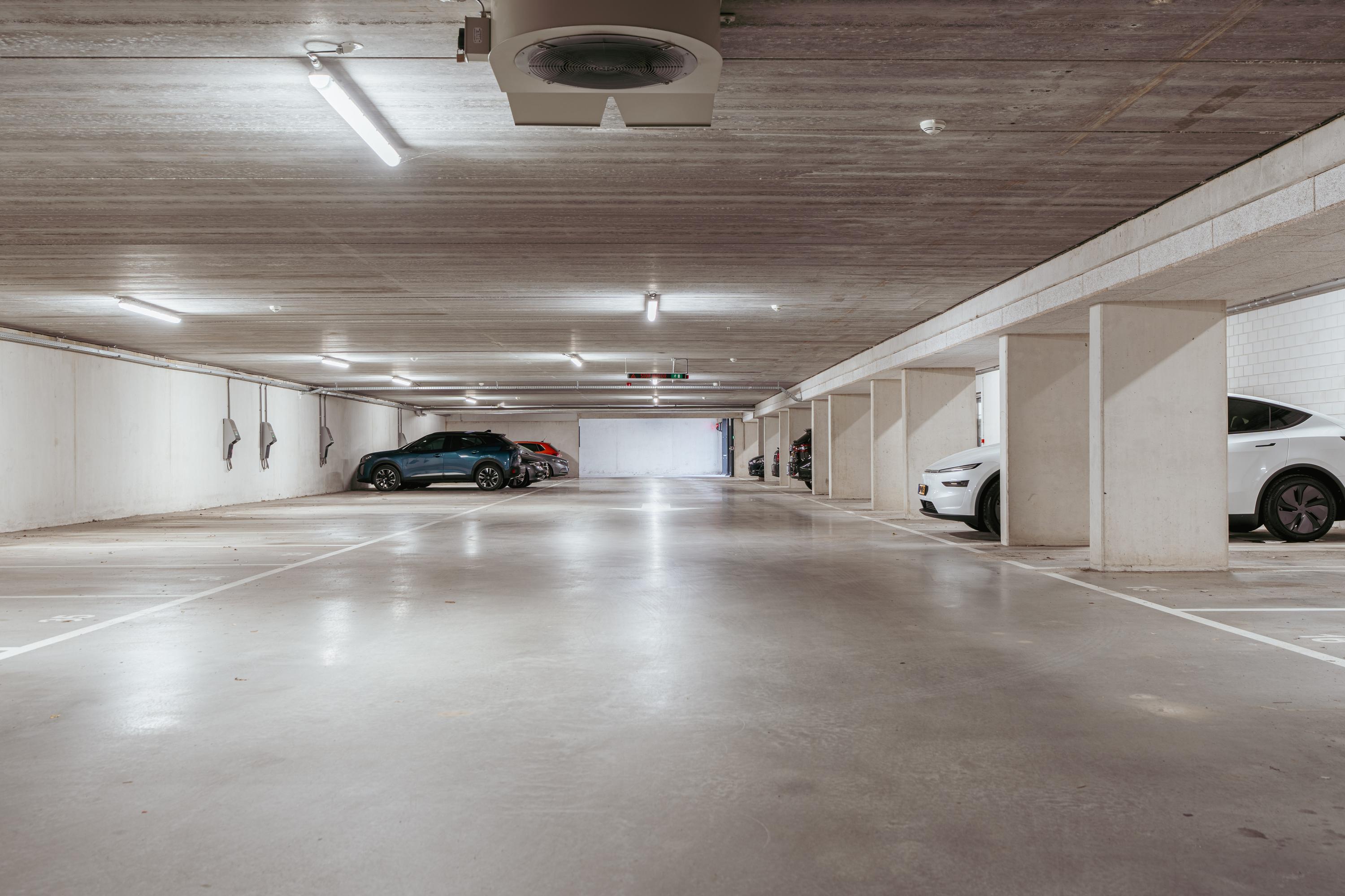 The apartment complex 'The Grid' consists of 68 luxurious residences. Completed in 2021, the building is characterised by its stepped façade and thoughtful design. The spacious lobby features an extra-high ceiling and forms the heart of the building. Situated directly along the street, with plenty of glass and views of the internal garden, it is a wonderful meeting place. The building also includes a shared indoor bicycle storage area and a parcel delivery room.