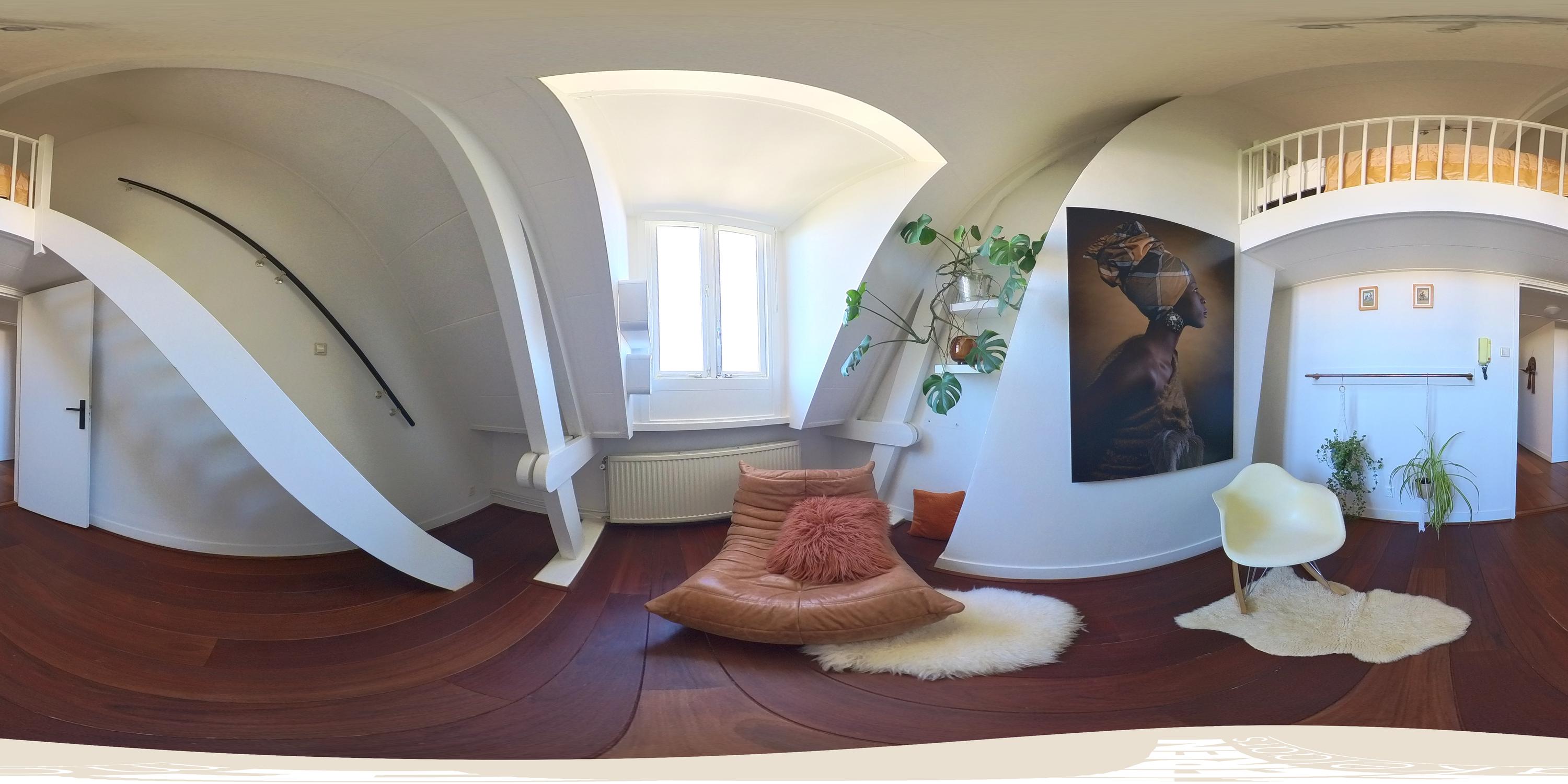 This level features a spacious landing with original exposed wooden beams—perfect as a music room, workspace, or gaming area. The fourth bedroom and a convenient storage room are located at the front. There’s also an additional washbasin on this floor. A staircase leads to the roof, where you can enjoy views of Carré Theatre and even the Rijksmuseum. This characteristic building, designed by architect A.C. Boerma, is constructed of brick accented with limestone blocks and bands. The facade boasts three elegant wooden bay windows adorned with authentic ornaments and fantasy figures. Throughout the home, you’ll find beautiful hardwood flooring, high ornamental ceilings, and original stained-glass transom windows. We invite you, like the current residents, to fall in love with this truly exceptional and spacious home.