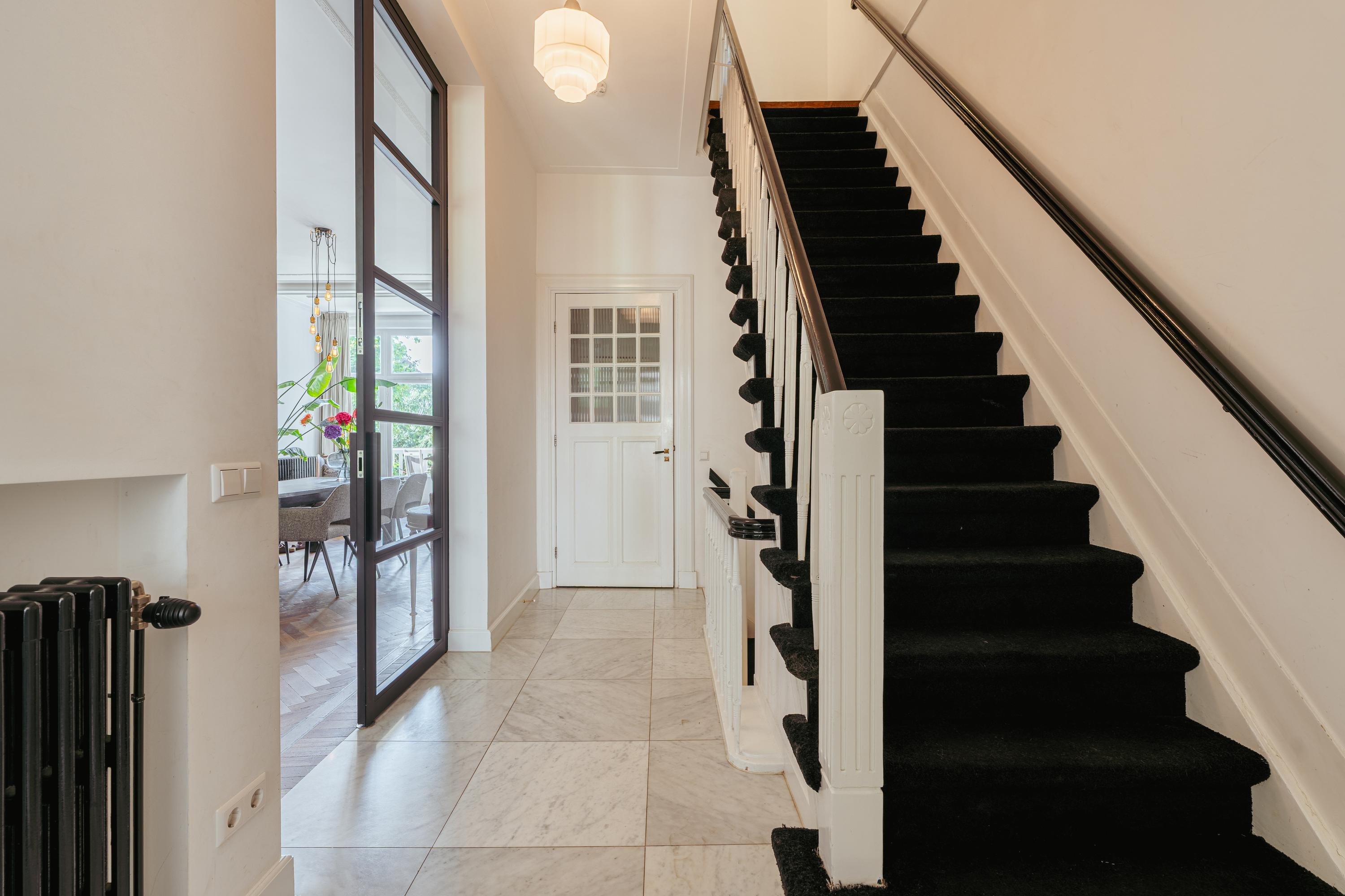 In summary: A characteristic and spacious family home with high-quality finishes, charming details, five bedrooms, and multiple outdoor spaces.