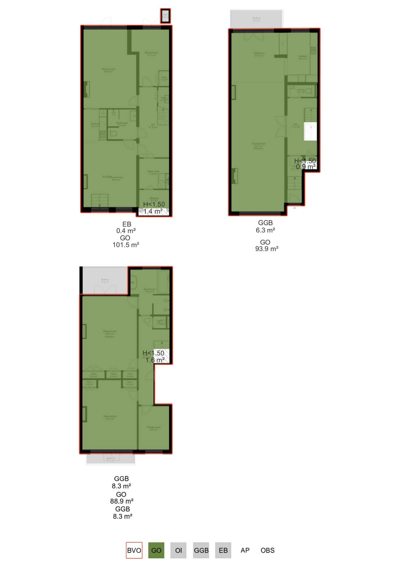 The first floor comprises three bedrooms, a spacious bathroom, and a separate toilet. The master bedroom at the rear is fitted with practical built-in wardrobes and French doors opening onto a charming balcony. The second bedroom, located at the front, also has a balcony and convenient built-in wardrobes. The third adjoining bedroom is ideally suited as a child’s room or home office. The generous bathroom is equipped with a bathtub, double walk-in shower, and a vanity unit with washbasin.