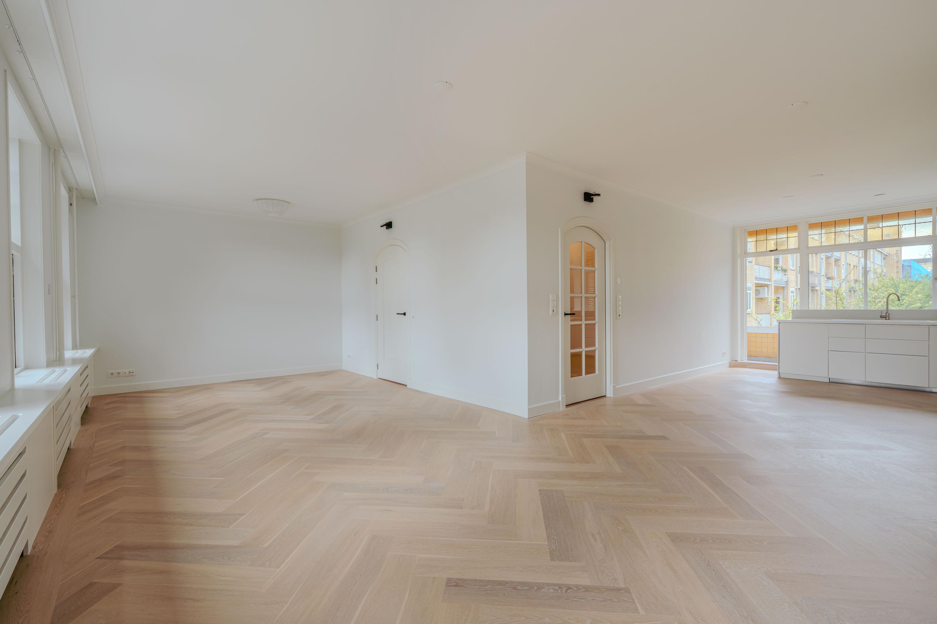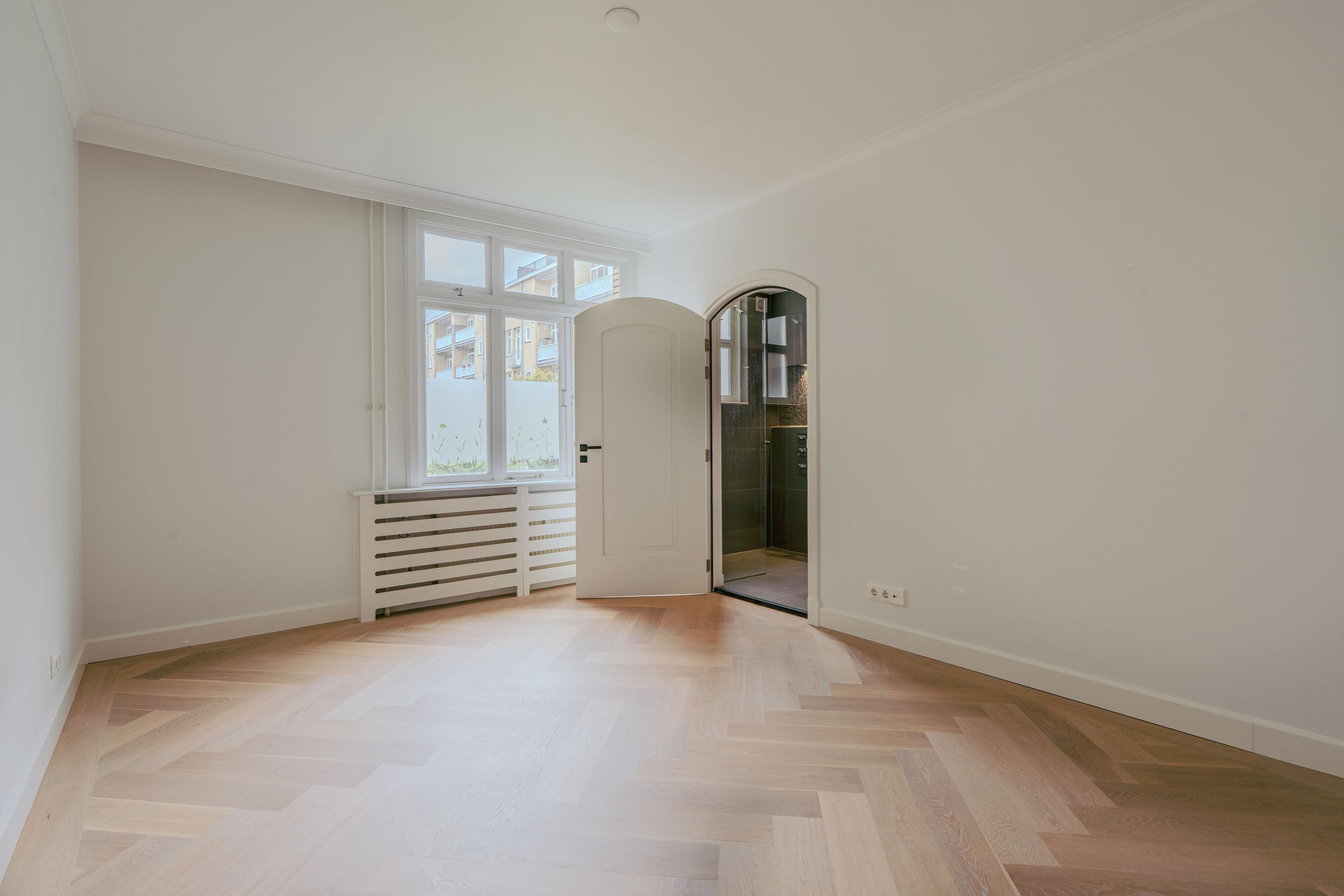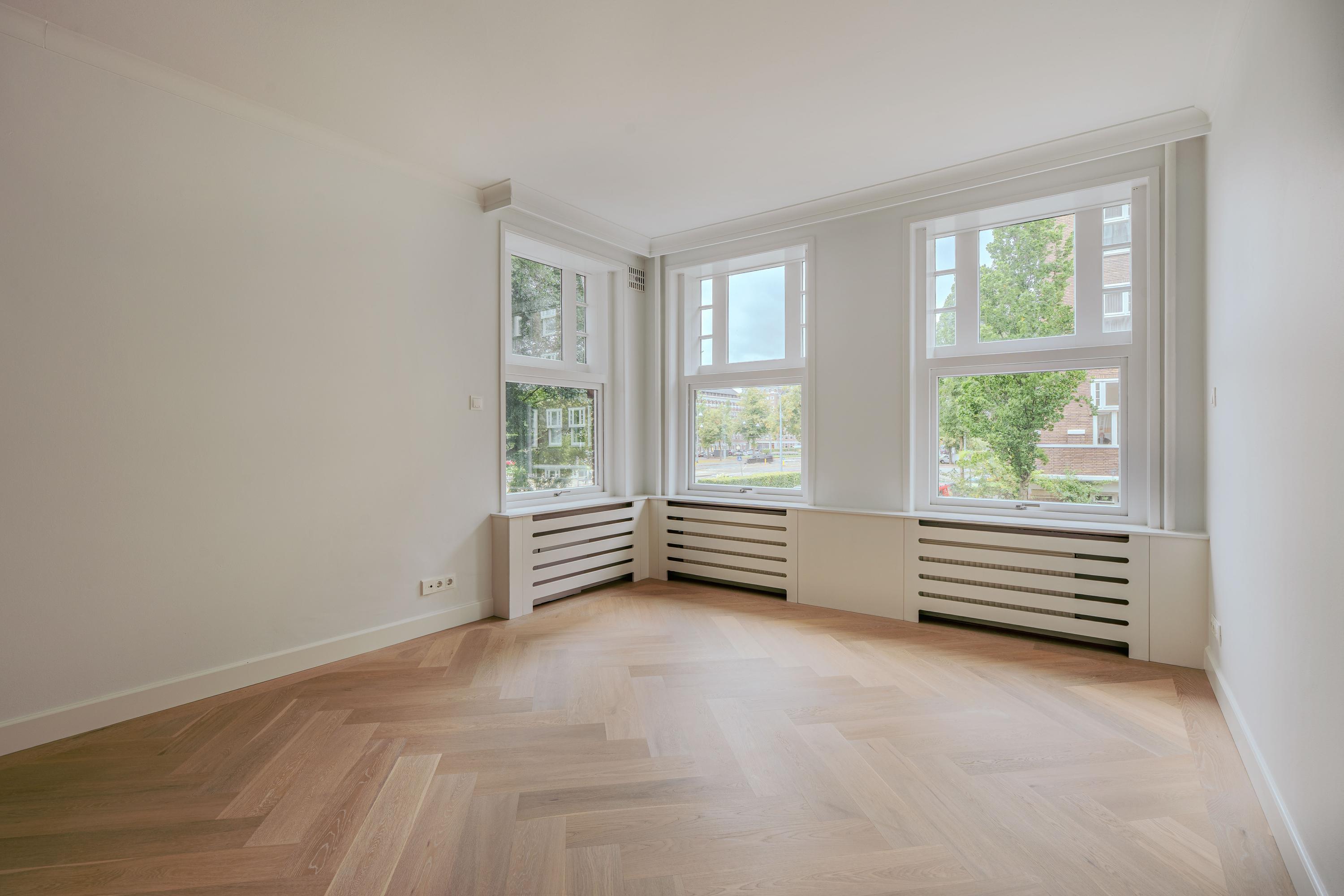 Beautifully bright and luxuriously renovated 3-room apartment of approx. 123 m² with sauna, lift, balcony and private storage, located in a prime location in Amsterdam South, just around the corner from Beethovenstraat. The property features two spacious bedrooms with en-suite bathrooms, but is large enough to easily create an additional bedroom.