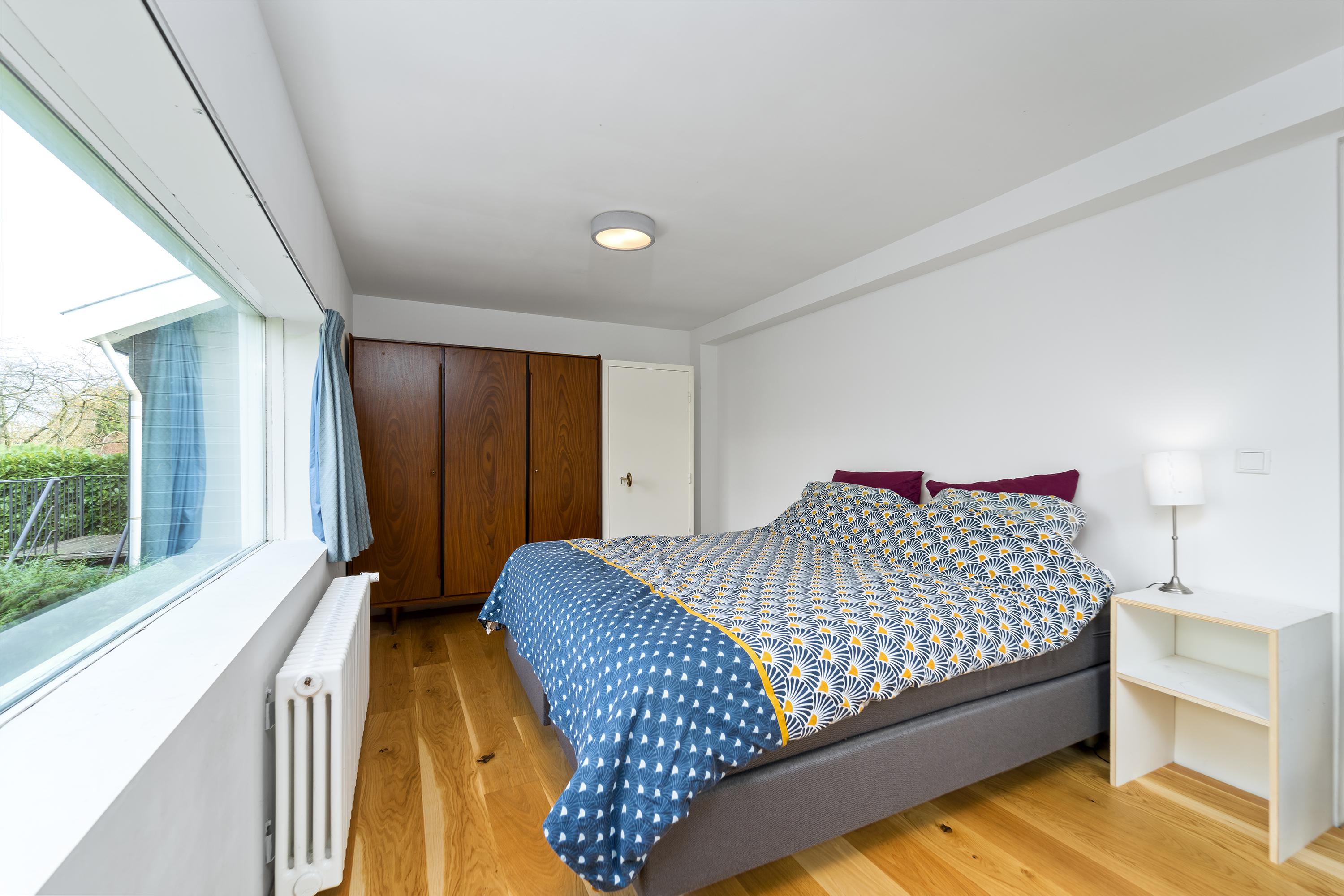 The bedroom floors in the original house feel secure while being of generous dimensions.
