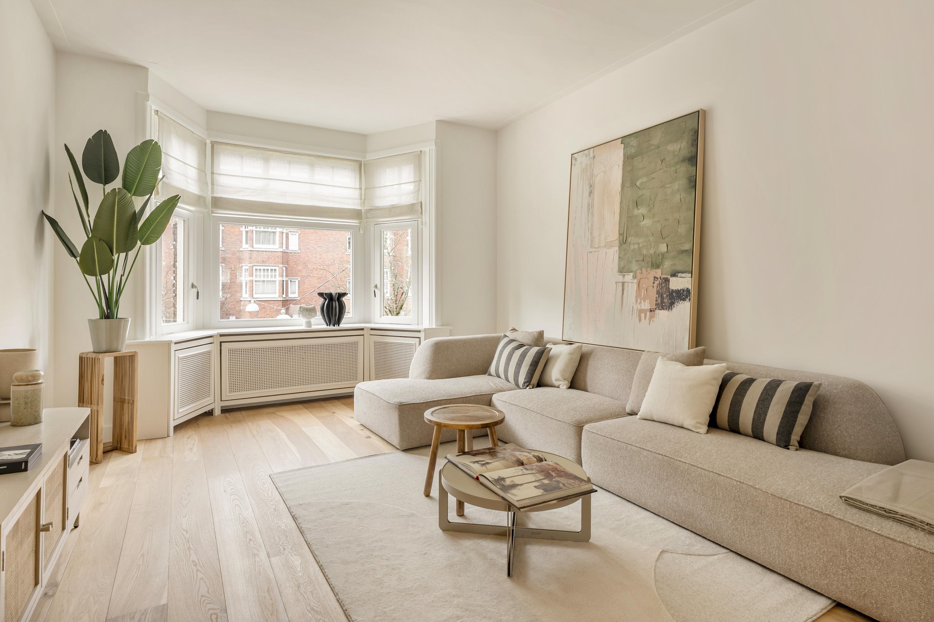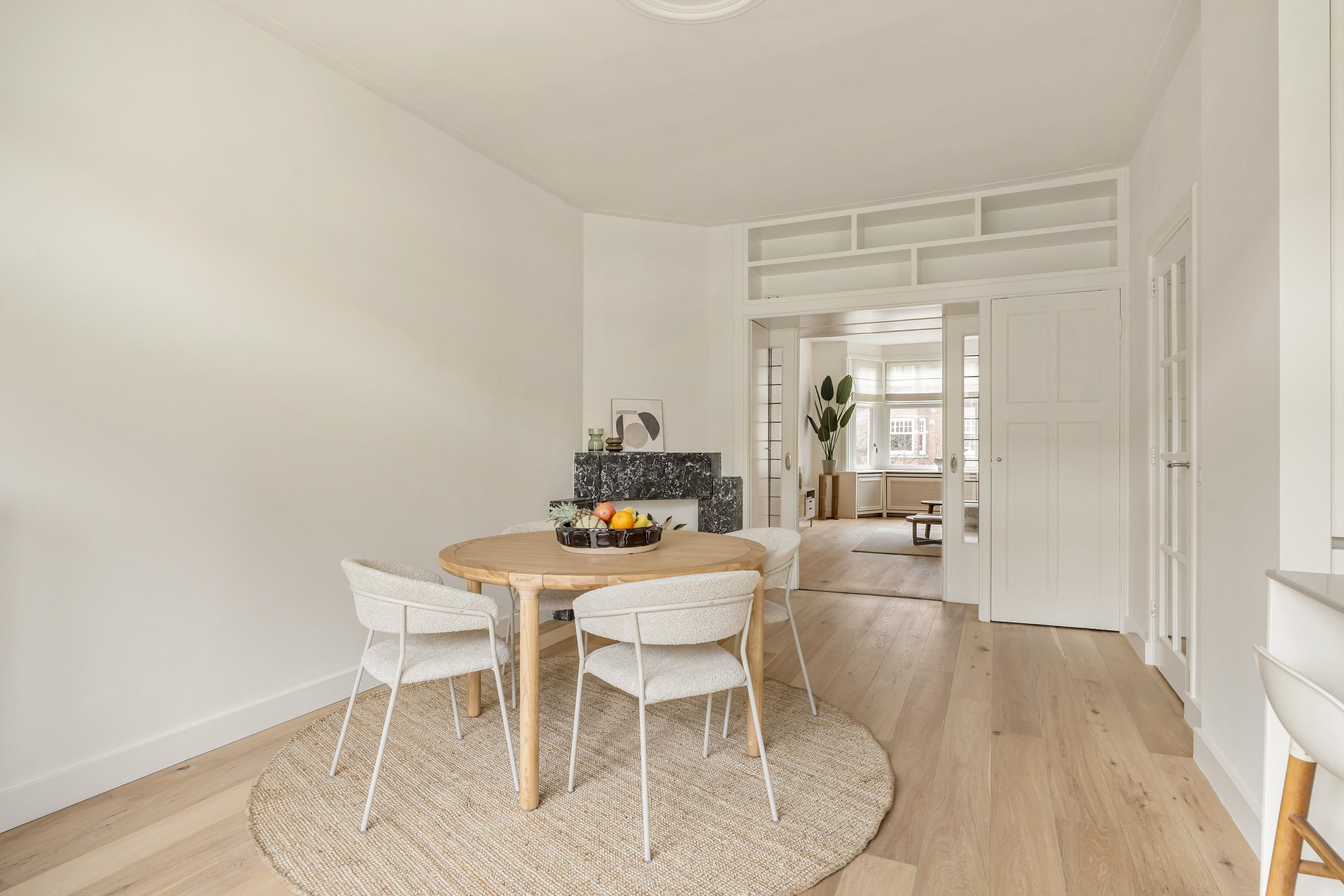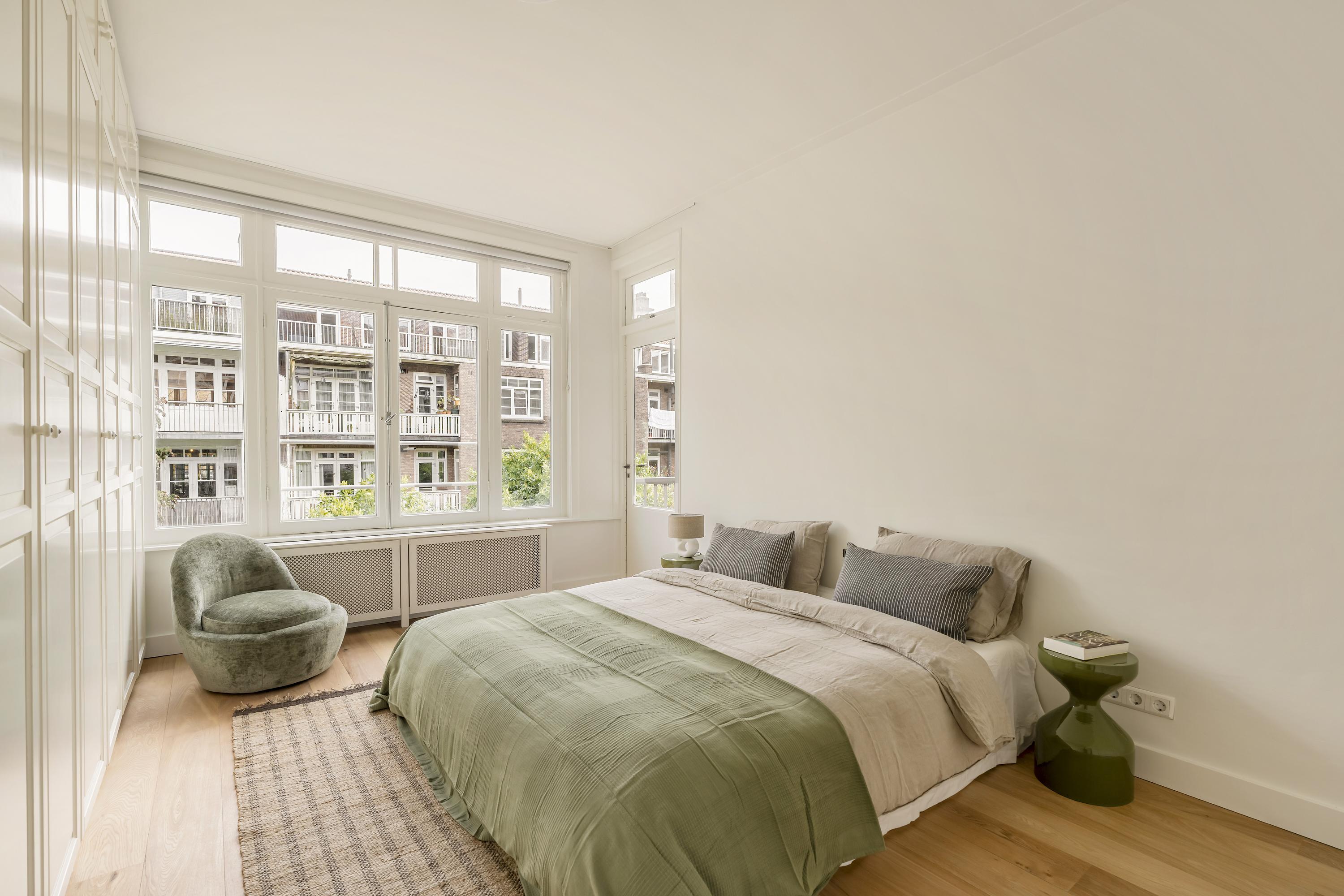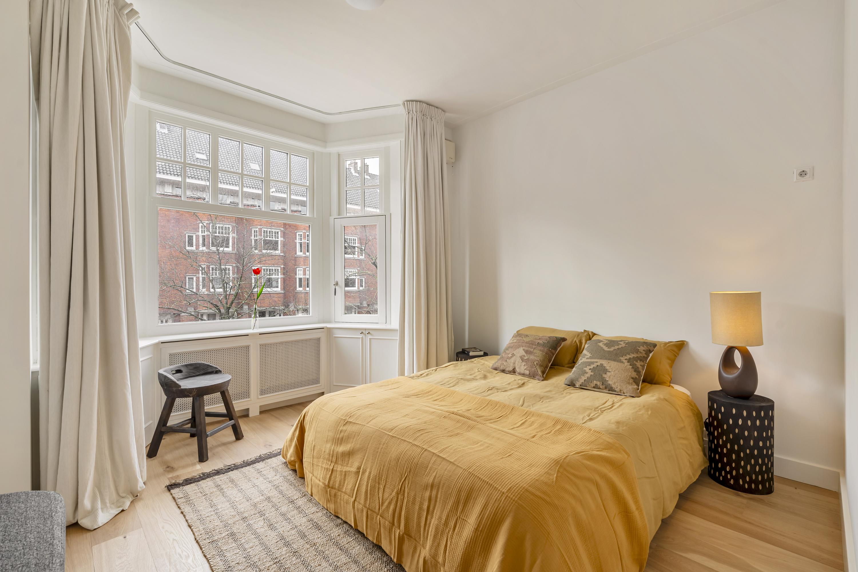 Apartment Amsterdam Zuid brings together period charm and contemporary comfort in a coveted Amsterdam-Zuid address. This residence spans approximately 112 m², offering three well-proportioned bedrooms and a spacious living area infused with character. The apartment’s heritage features, including original sliding doors, custom cabinetry, and iconic bay windows, are complemented by thoughtful renovations such as floor insulation and double glazing.