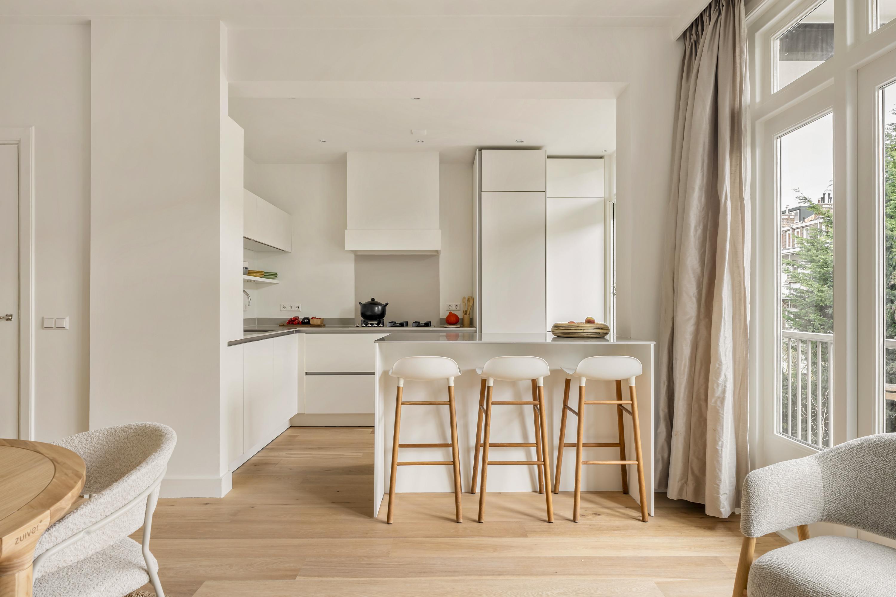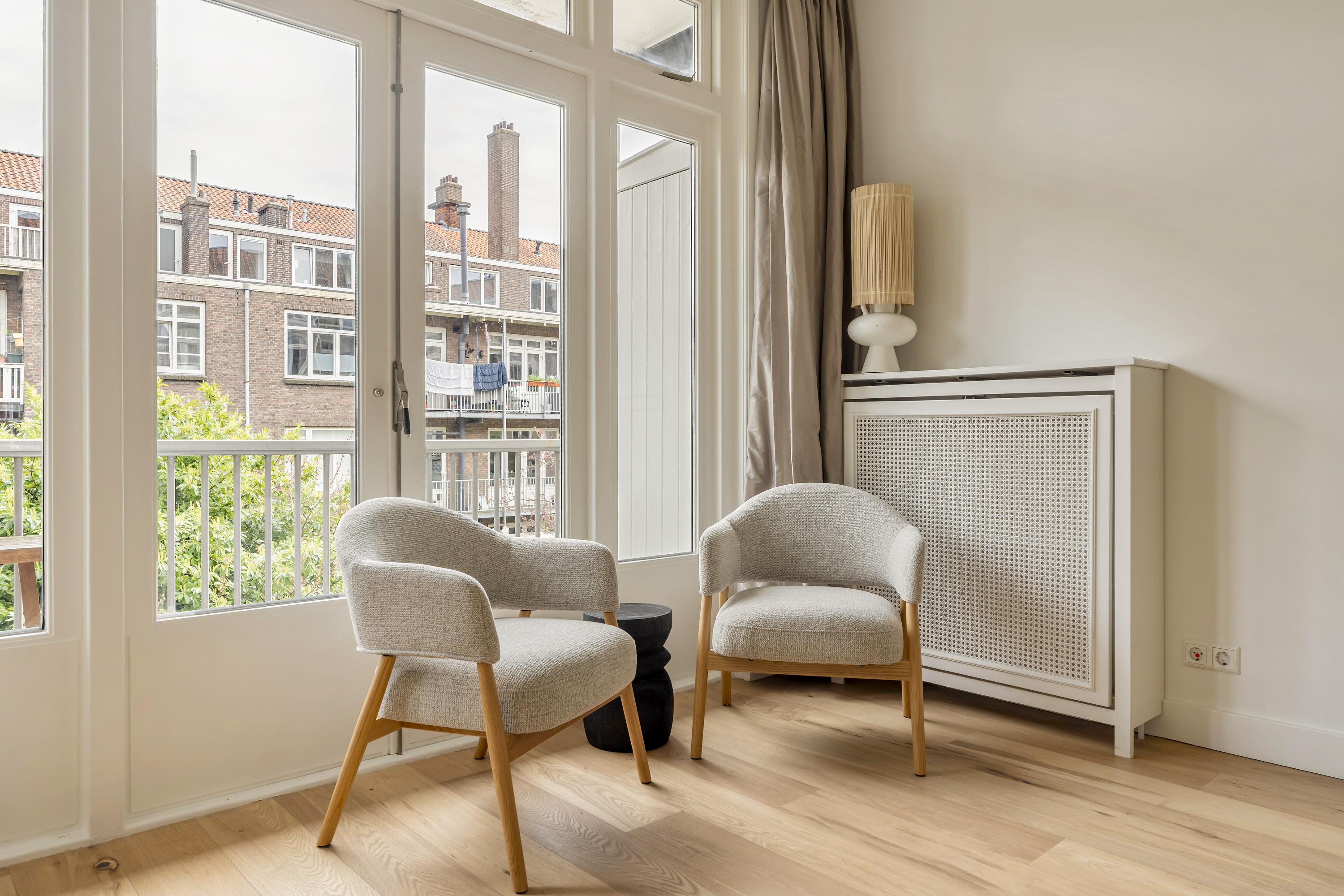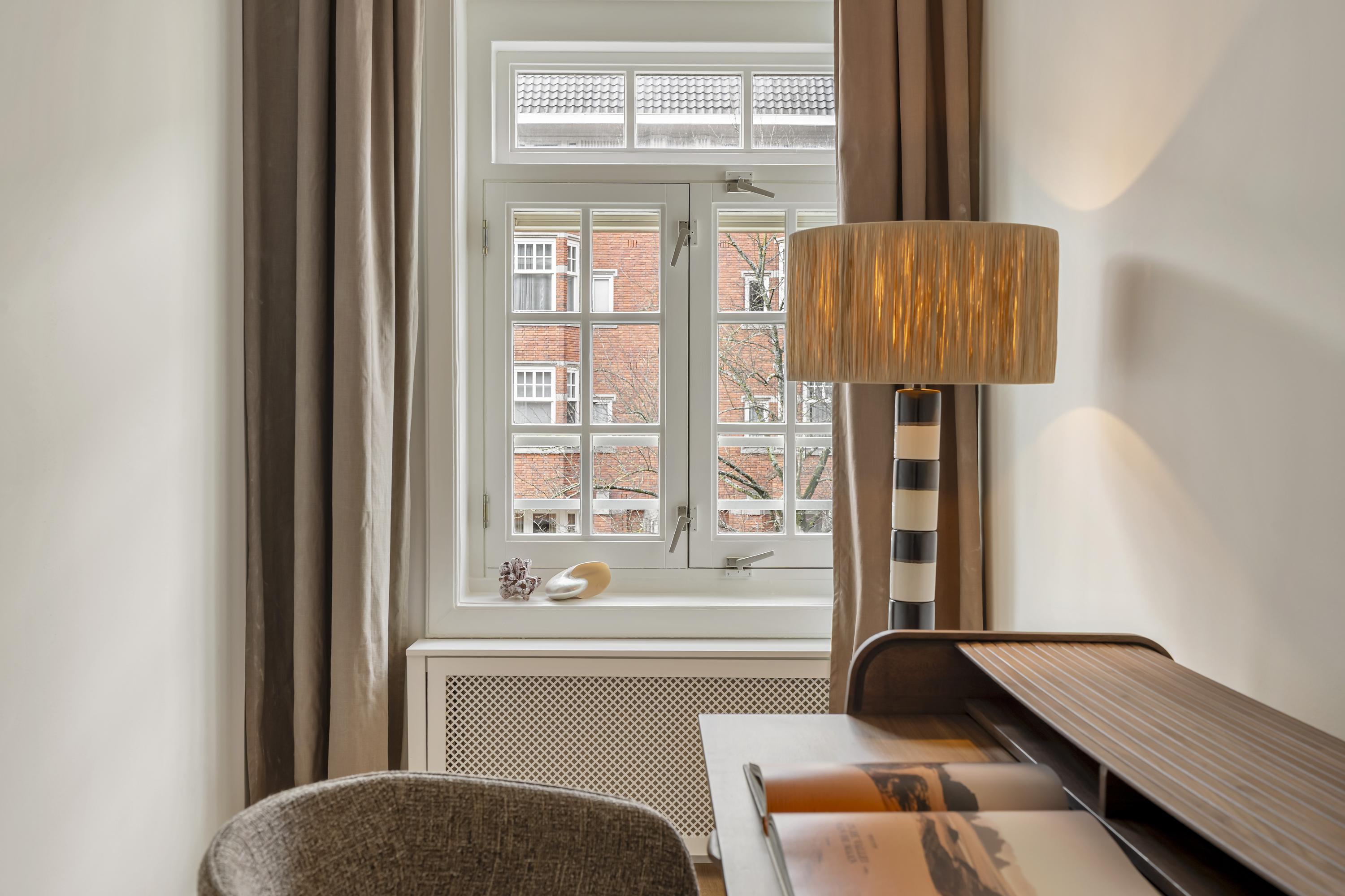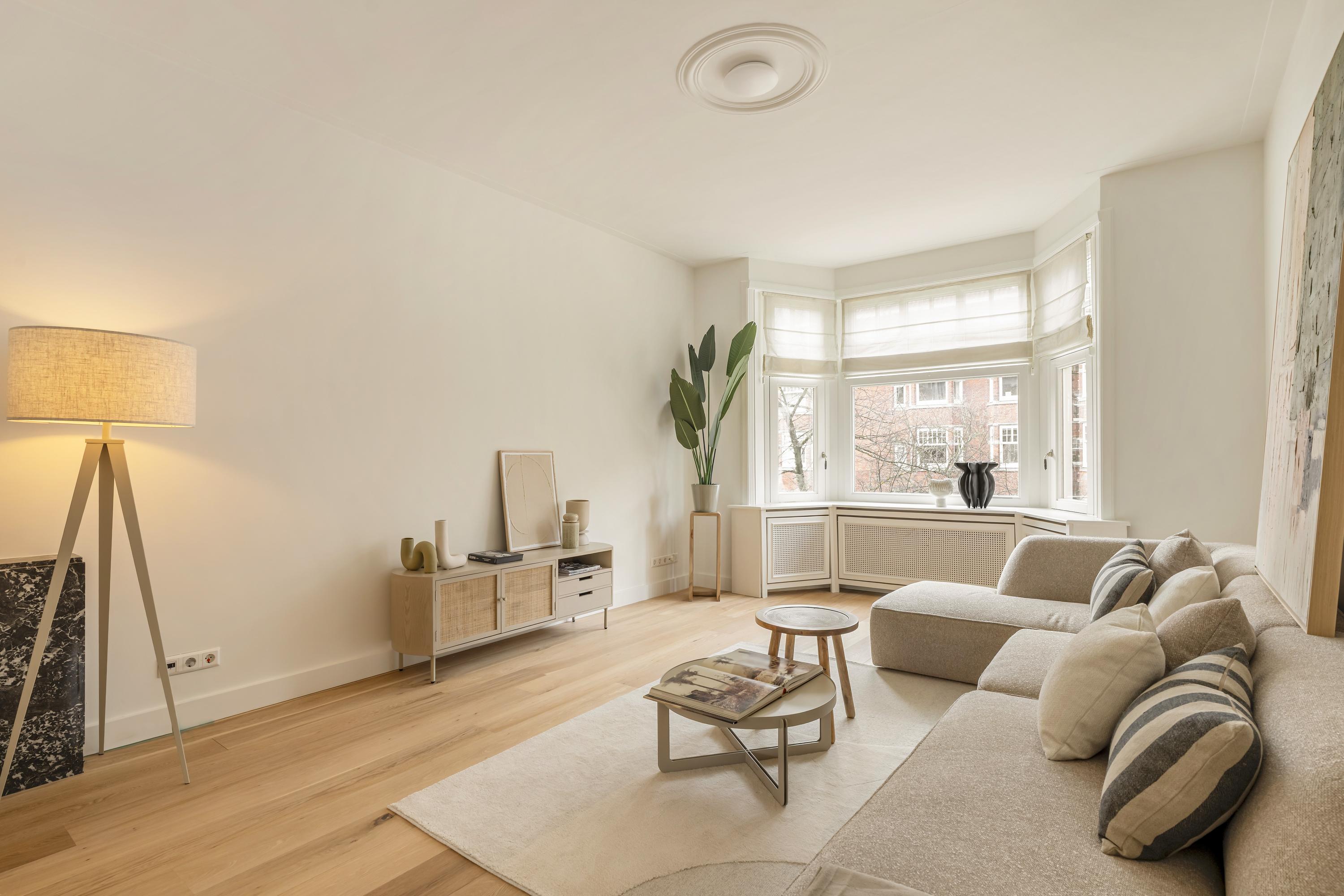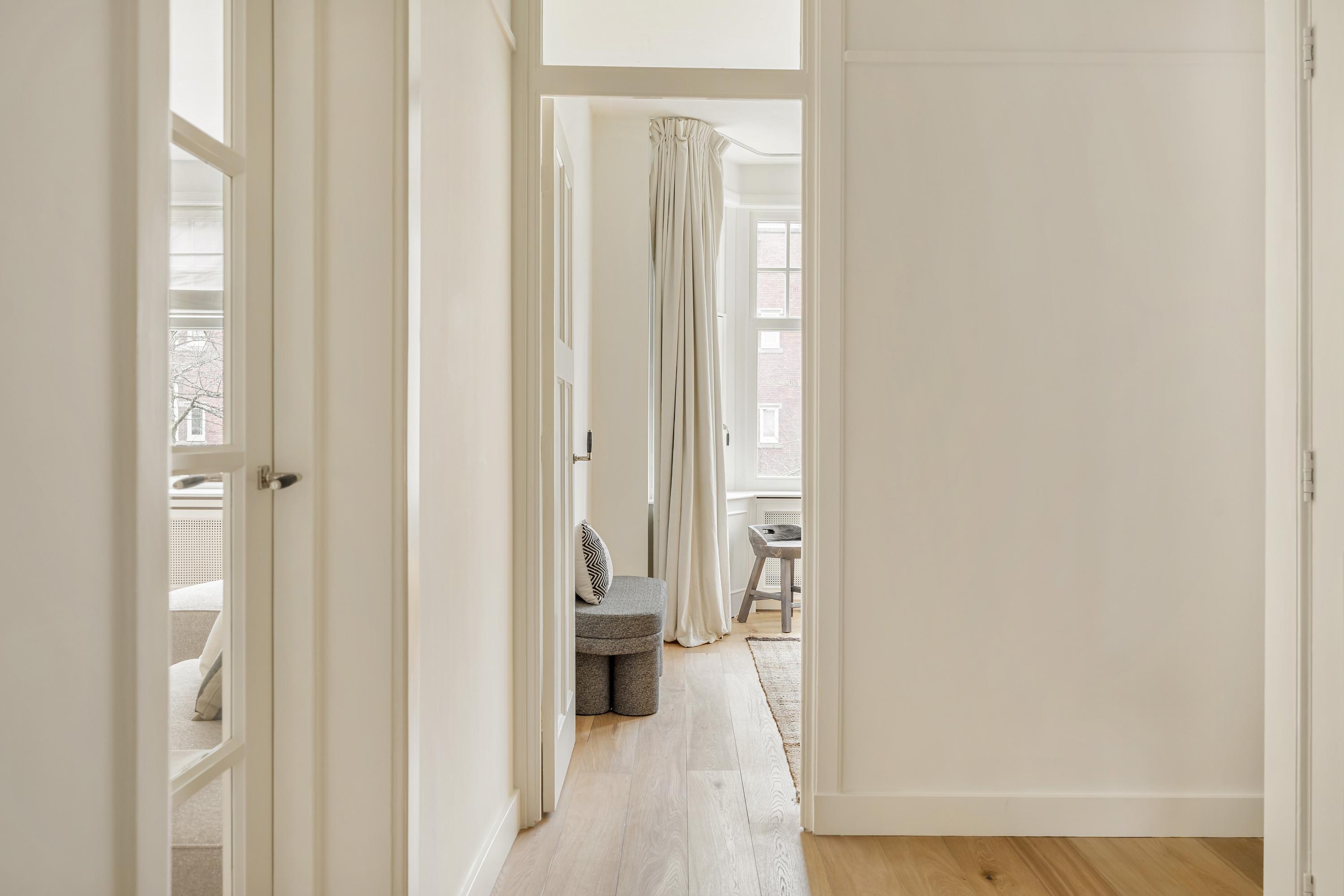 Apartment Amsterdam Zuid brings together period charm and contemporary comfort in a coveted Amsterdam-Zuid address. This residence spans approximately 112 m², offering three well-proportioned bedrooms and a spacious living area infused with character. The apartment’s heritage features, including original sliding doors, custom cabinetry, and iconic bay windows, are complemented by thoughtful renovations such as floor insulation and double glazing.