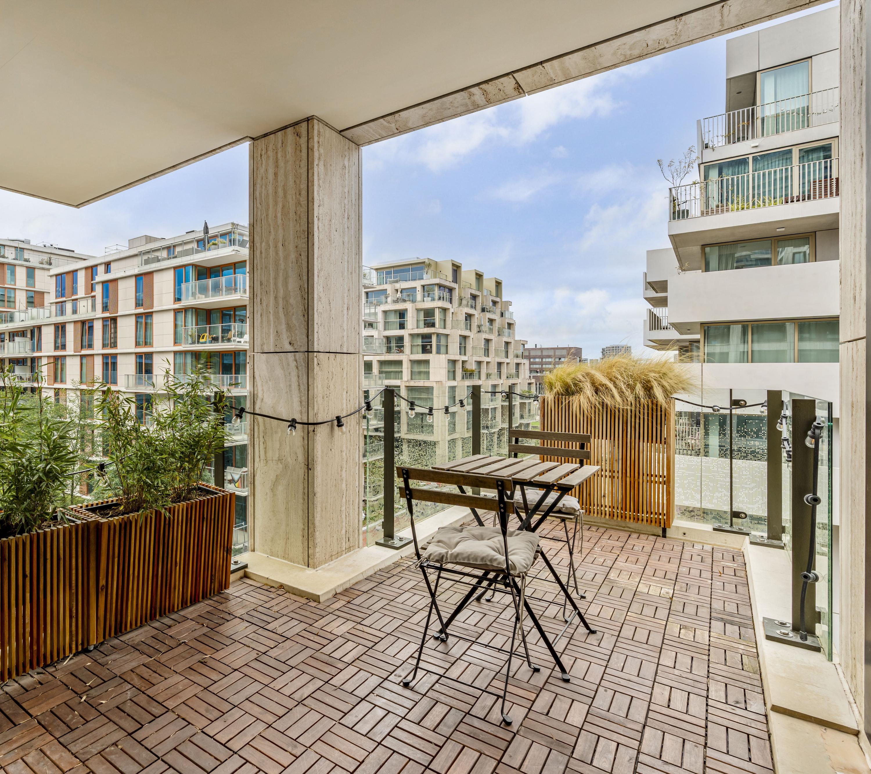 De keuken is uitgevoerd in matzwart design en voorzien van alle denkbare inbouwapparatuur, waaronder een inductiekookplaat, combi-oven, vaatwasser en een Quooker. Er is meer dan genoeg opbergruimte. Vanuit de woonkamer is er toegang tot het ruime balkon op het zuidwesten, waar u geniet van de middag/avond zon en een prachtig uitzicht op het groene plein.