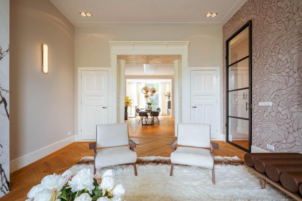 Located on the beautiful Vossiusstraat, this exceptionally stylish and spacious home of 323 m², spread over three floors and situated on freehold land, offers a rare combination of classic elegance and contemporary comfort. Finished with high-quality materials, including herringbone wooden floors, steel pivot doors, marble accents, and multiple gas fireplaces, this property features six bedrooms, three luxurious bathrooms, an expansive live-in kitchen, a beautifully landscaped south-facing garden (157 m²), and stunning views over the park. It provides an exceptional blend of space, tranquility, and urban allure—right in the heart of Amsterdam Oud-Zuid.