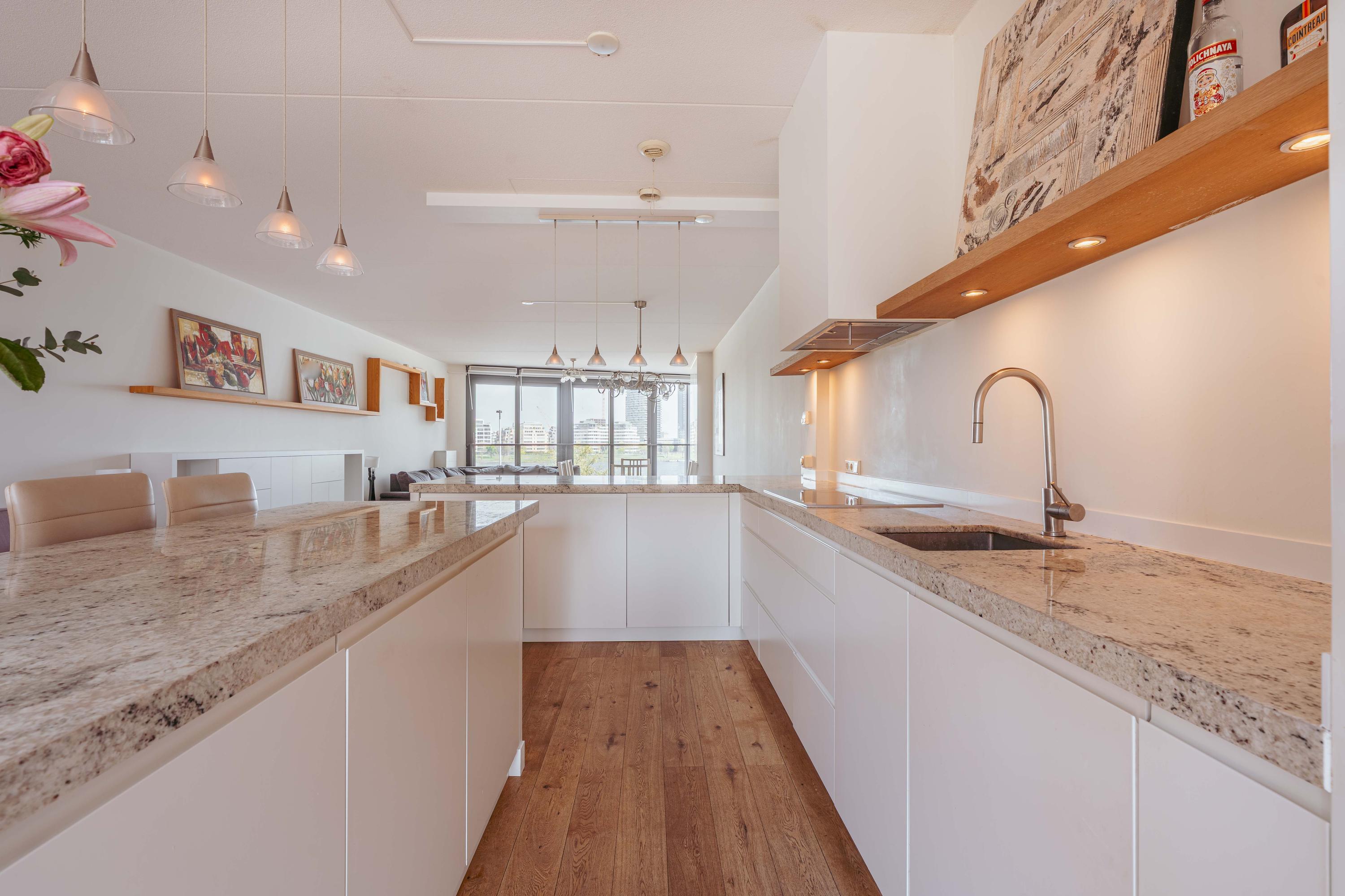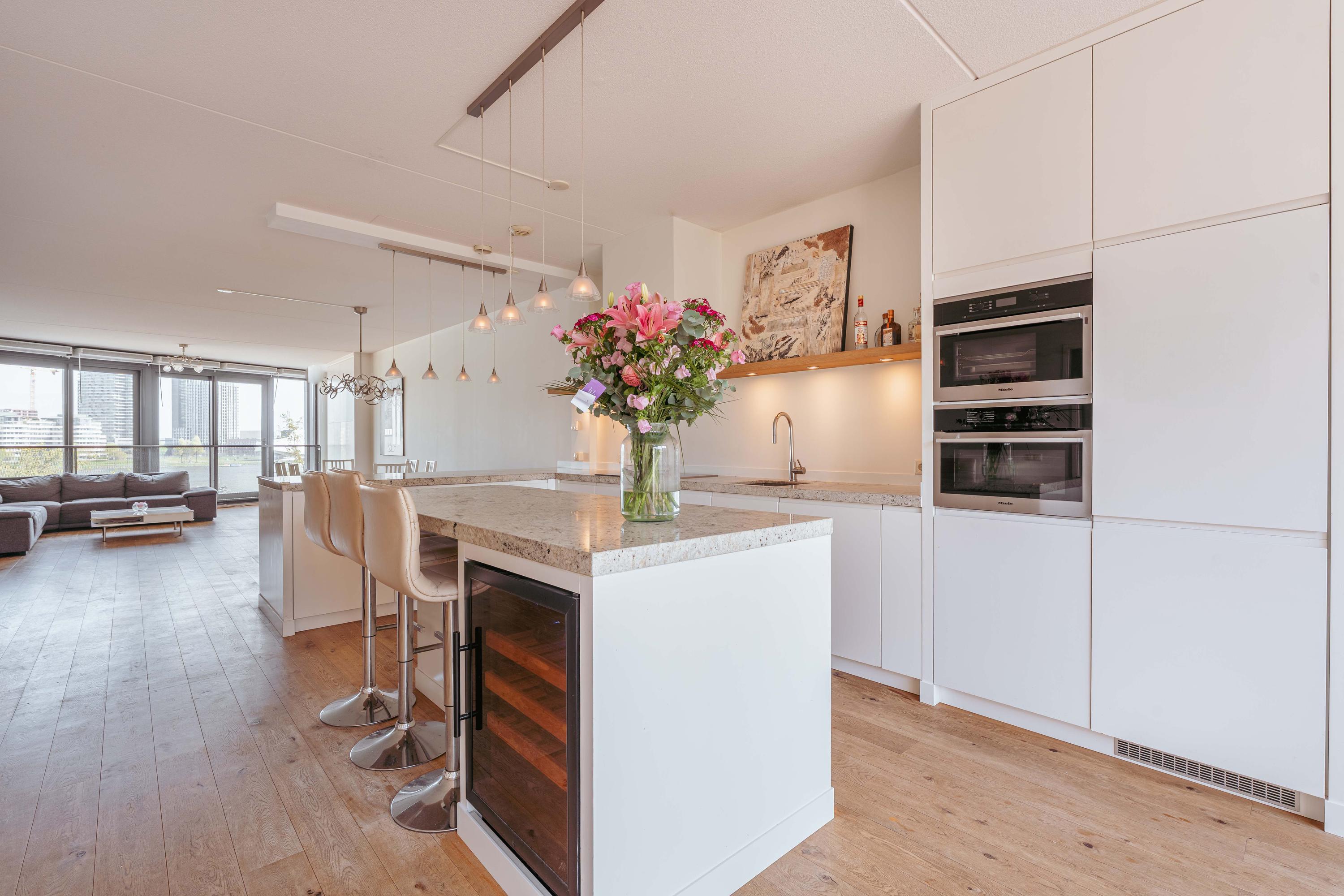 Enjoy breathtaking daily views over the IJ from this spacious 4-room apartment measuring a spacious 164 m², located on the highly sought-after Westerdokseiland. With a sunny west-facing terrace of 14 m², a luxurious open kitchen, three bedrooms, and a smart, functional layout, this apartment offers everything for comfortable and stylish living in the heart of Amsterdam. A private storage unit and the option to purchase a private parking space in the underground garage complete the package.