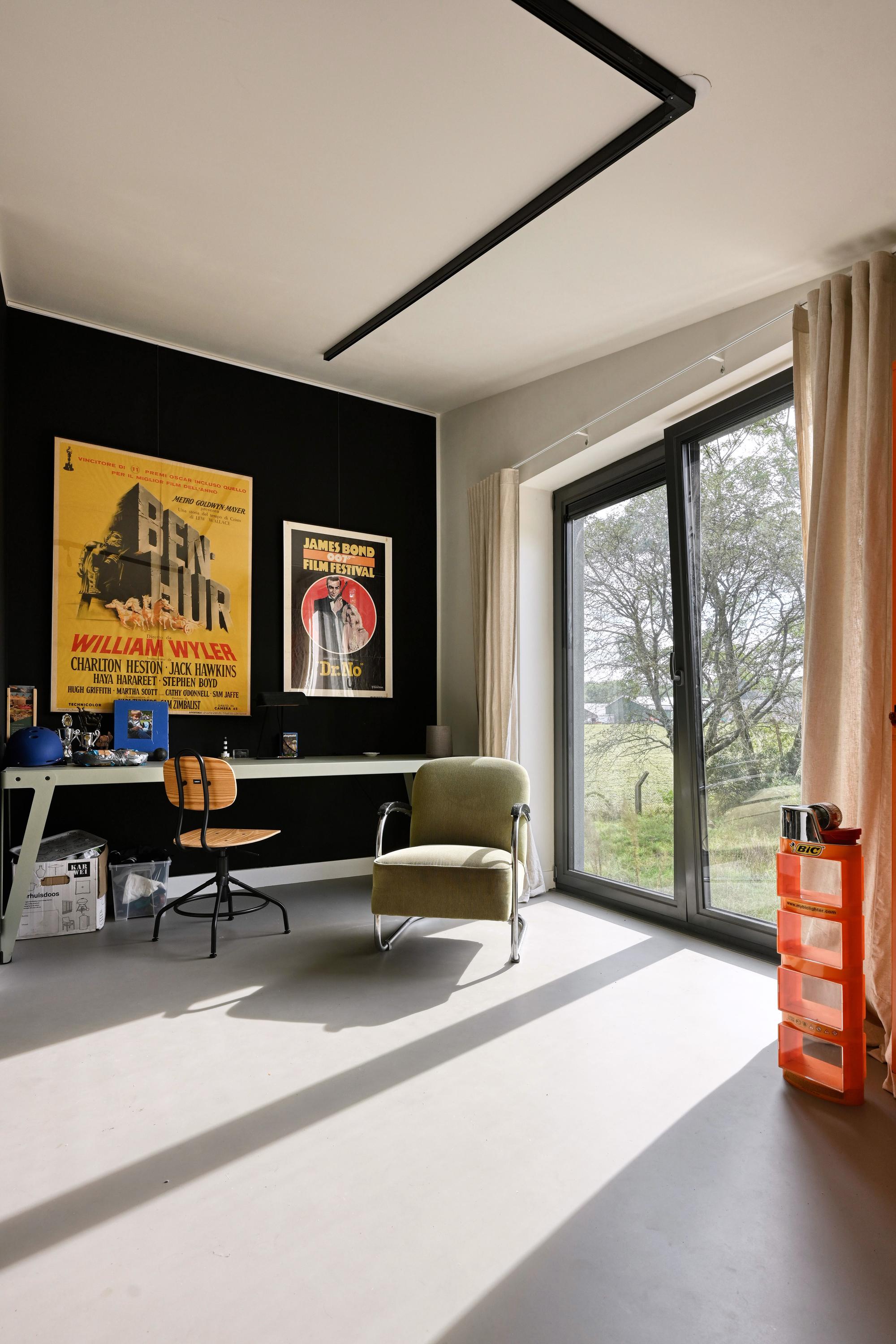 De vloeren zijn grotendeels uitgevoerd in gevlinderd beton die een knipoog zijn naar het industriële karakter van de voormalige hangar. De vloeren zijn voorzien van vloerverwarming.