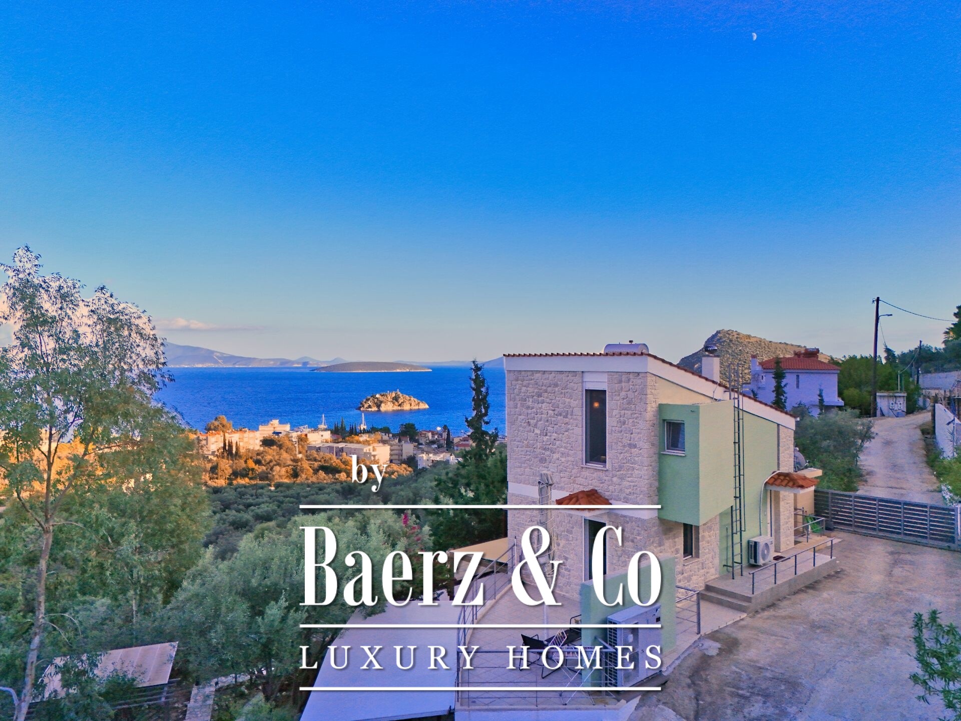 Stone residences Asini are introduced as an exclusive opportunity, set on a tranquil hillside above Tolo and offering far-reaching 180° panoramic views over the Argolic Gulf and surrounding mountains. The property forms a discreet complex of three autonomous homes, totaling 158 m² of living space on a 2,410 m² plot, harmoniously grounded in the landscape through the use of local stone and wood.