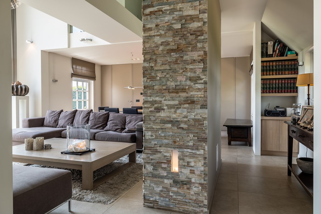 Over ieder detail in dit huis is nagedacht. De looplijn van de keuken naar de plek waar de eettafel staat loopt achter de gashaard langs. U loopt dus als het ware achter de zitkamer langs zodat u niemand hoeft te storen.