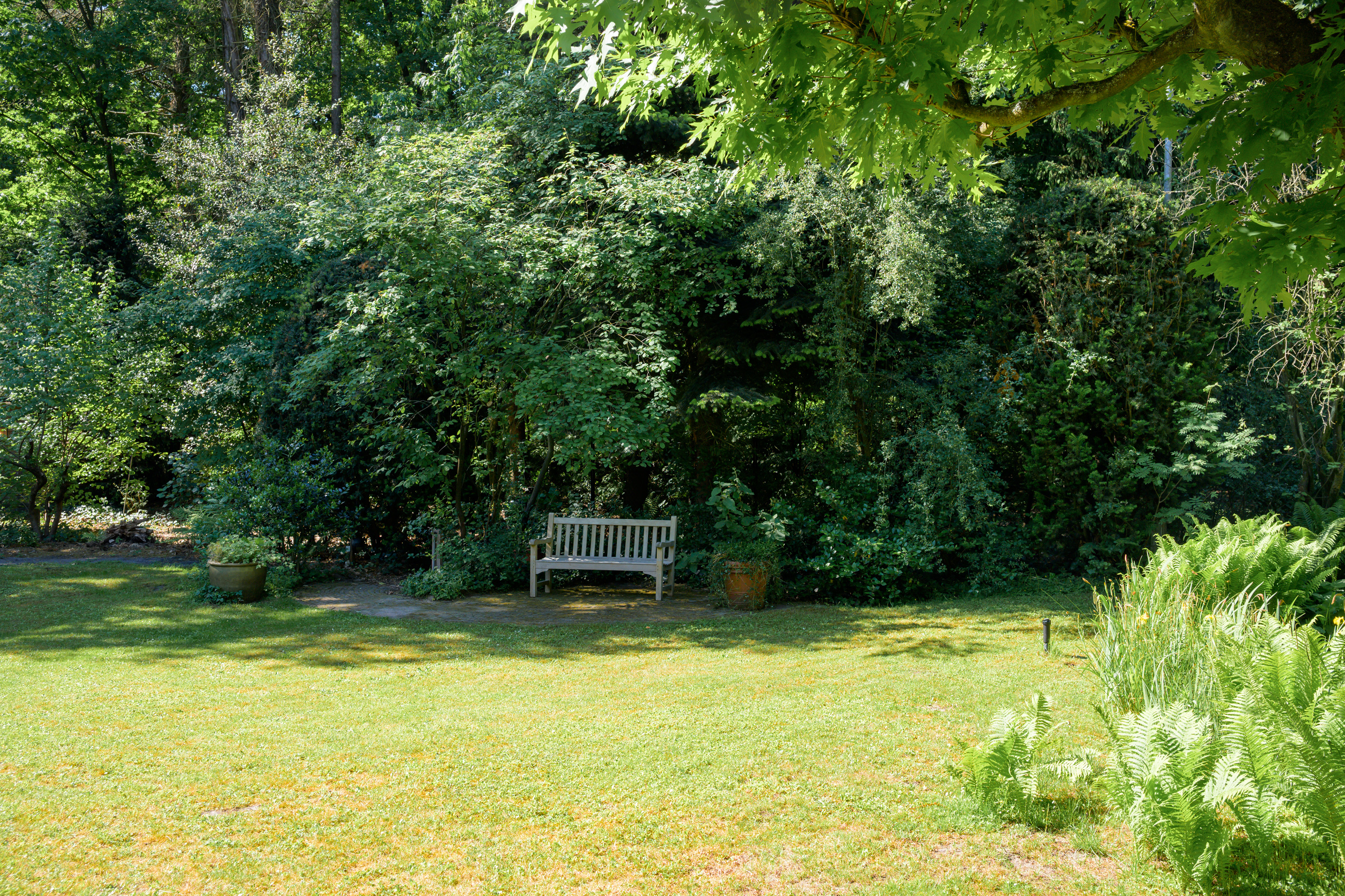 Five flexible bedrooms allow for individual privacy and adaptation, with dedicated spaces easily reimagined for study, studio, or guest purposes. The primary suite opens directly onto a balcony, while the lower level provides additional living or working areas. Bathrooms are finished with contemporary fittings, walk-in showers, and designer radiators to maintain quiet comfort.