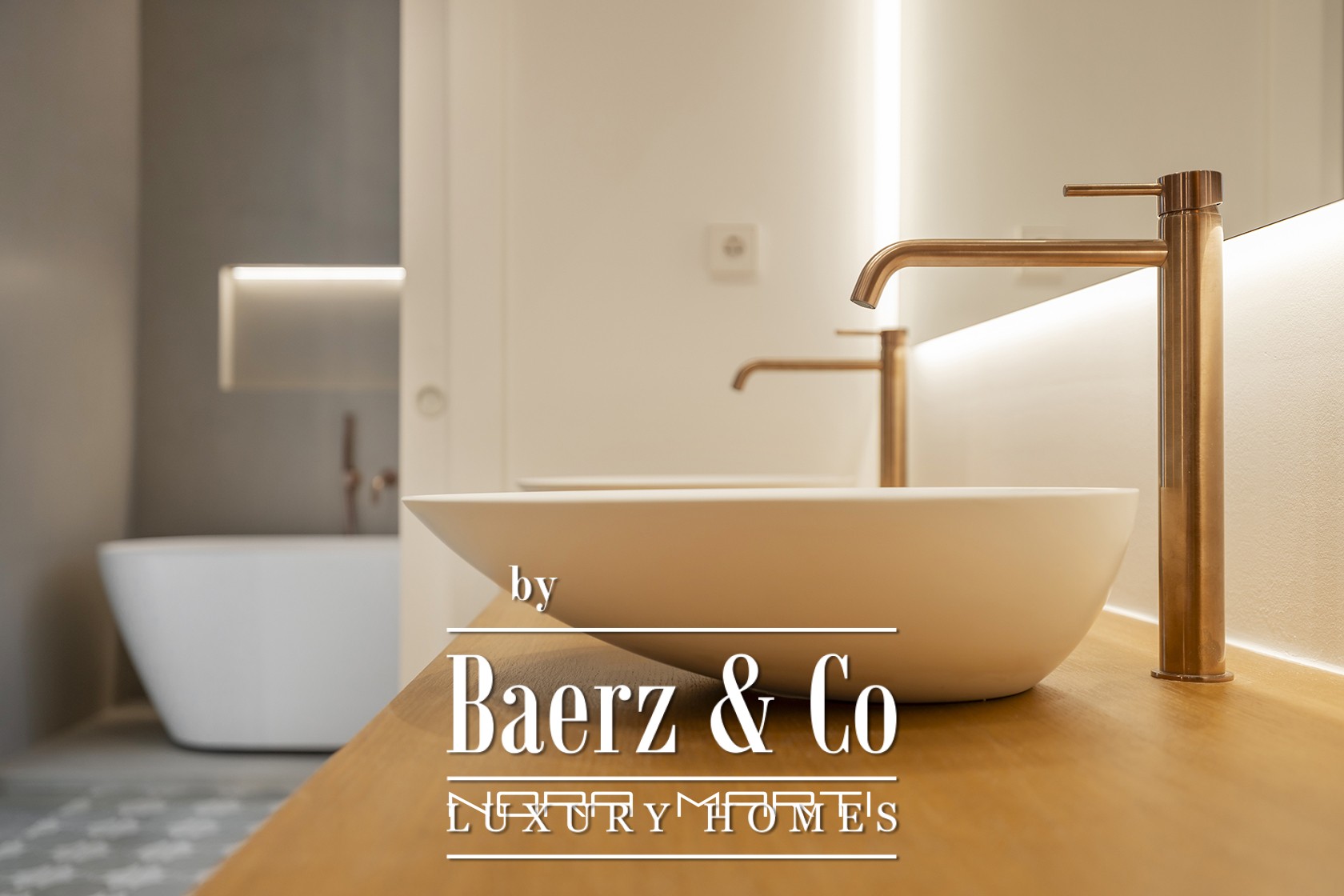 Three bedrooms define the private quarters, anchored by a master suite with en-suite bath and dressing room. Two additional bedrooms share a generous second bathroom. The living area flows openly, with a handcrafted solid wood kitchen, appointed with Miele appliances, designed for both intimacy and sociability. Noia flooring adds subtle texture beneath your feet, while luxury finishes and air heating, paired with energy efficiency rated A, deliver genuine comfort throughout the seasons.