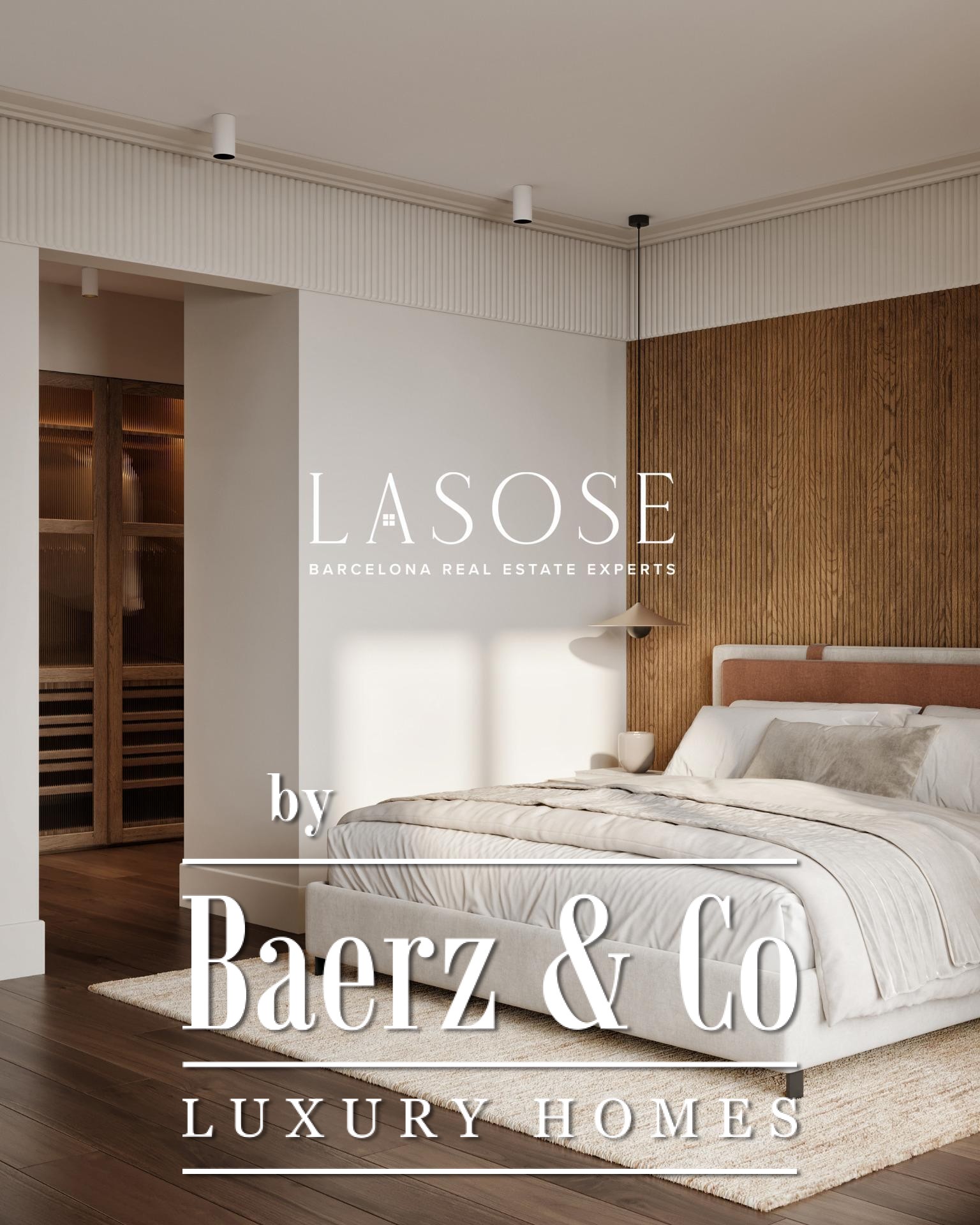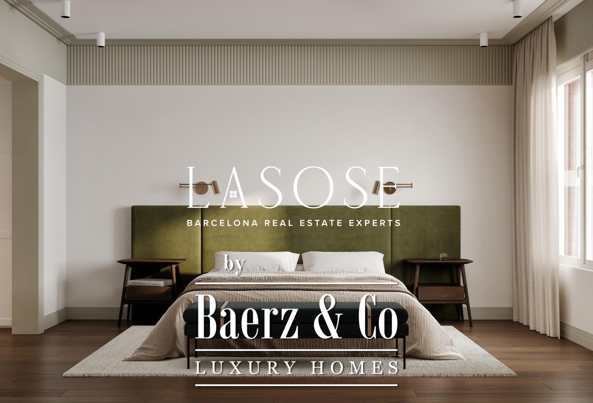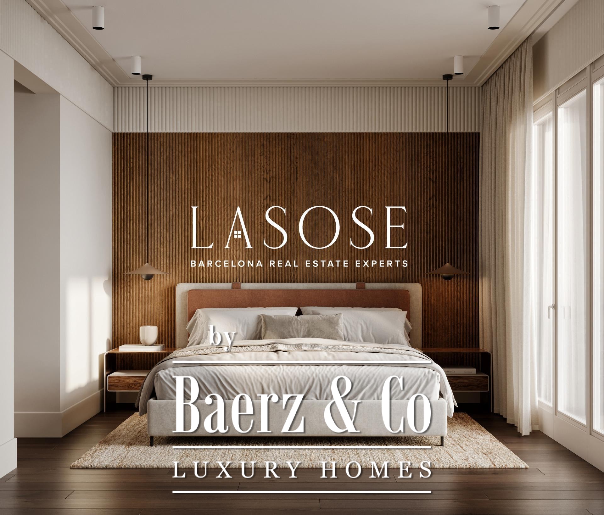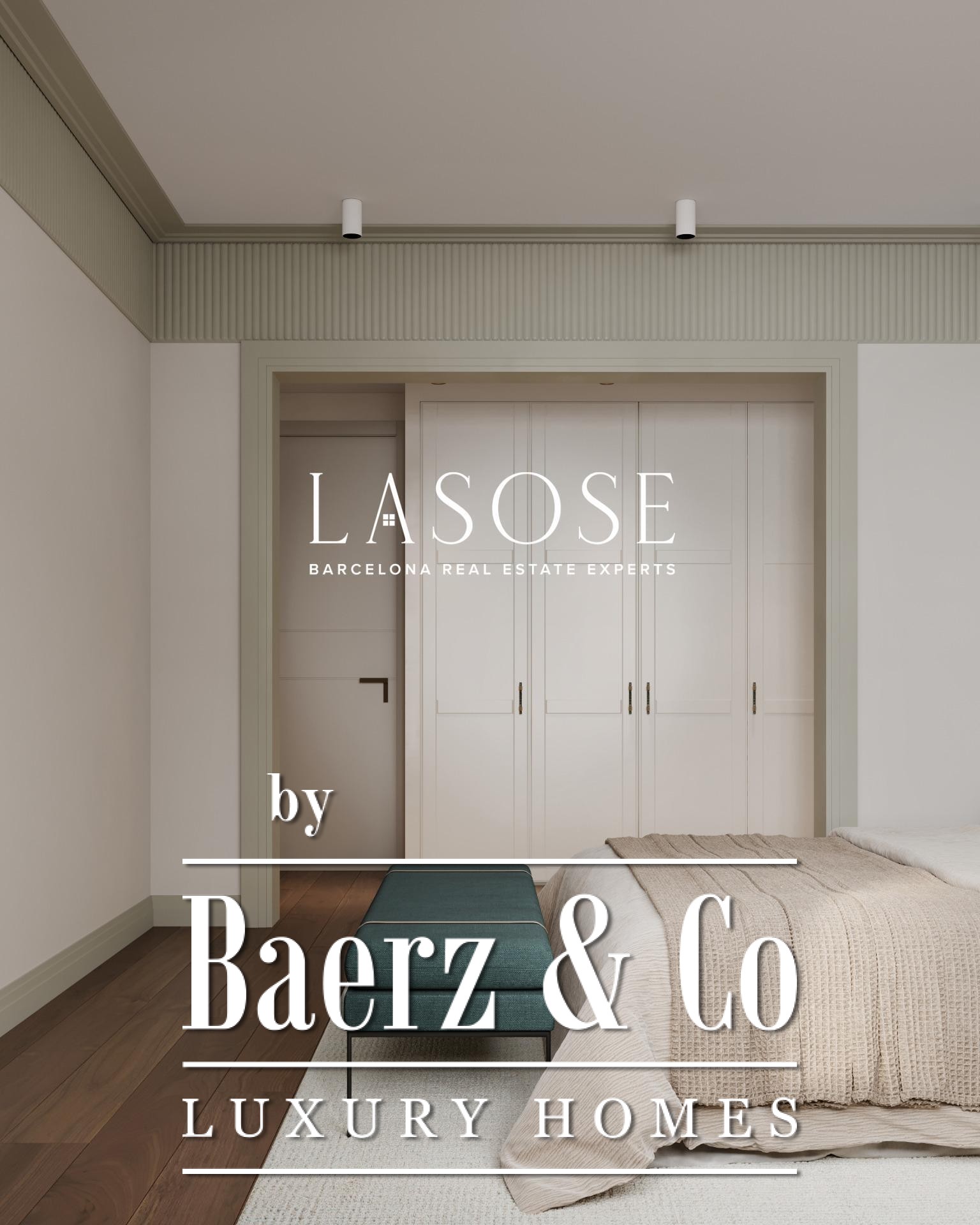 Apartment Barcelona is exemplified in this 226 m² seventh-floor residence on Aribau street, currently undergoing a complete renovation, with anticipated completion in July 2025. This property offers a rare balance of space and privacy, featuring four bedrooms, including two generous 16 m² suites with private bathrooms and fitted wardrobes, and two interior rooms of 9 m² each. One primary bedroom opens to a balcony capturing partial sea and Sagrada Familia views, bathed in the morning’s gentle light.