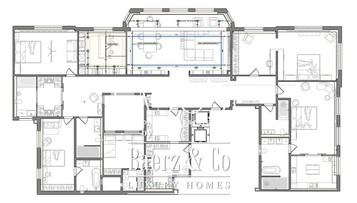 Apartment Barcelona Turó Park is an address defined by privacy, volume, and calm. This 455 m² residence occupies the third floor of a carefully maintained 1957 building with concierge presence and elevator, in one of Barcelona’s most distinguished neighborhoods. The apartment is presented with a high-end renovation project already underway, offering flexibility for those who seek a move-in-ready home or wish to individualize every detail.