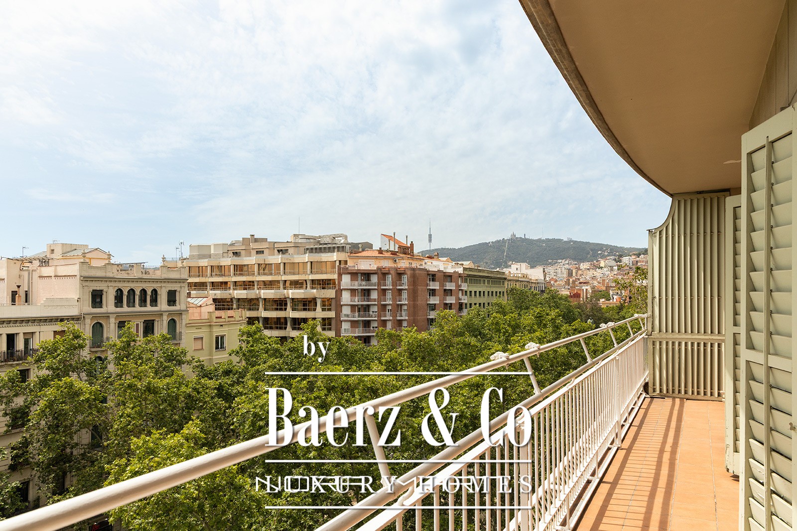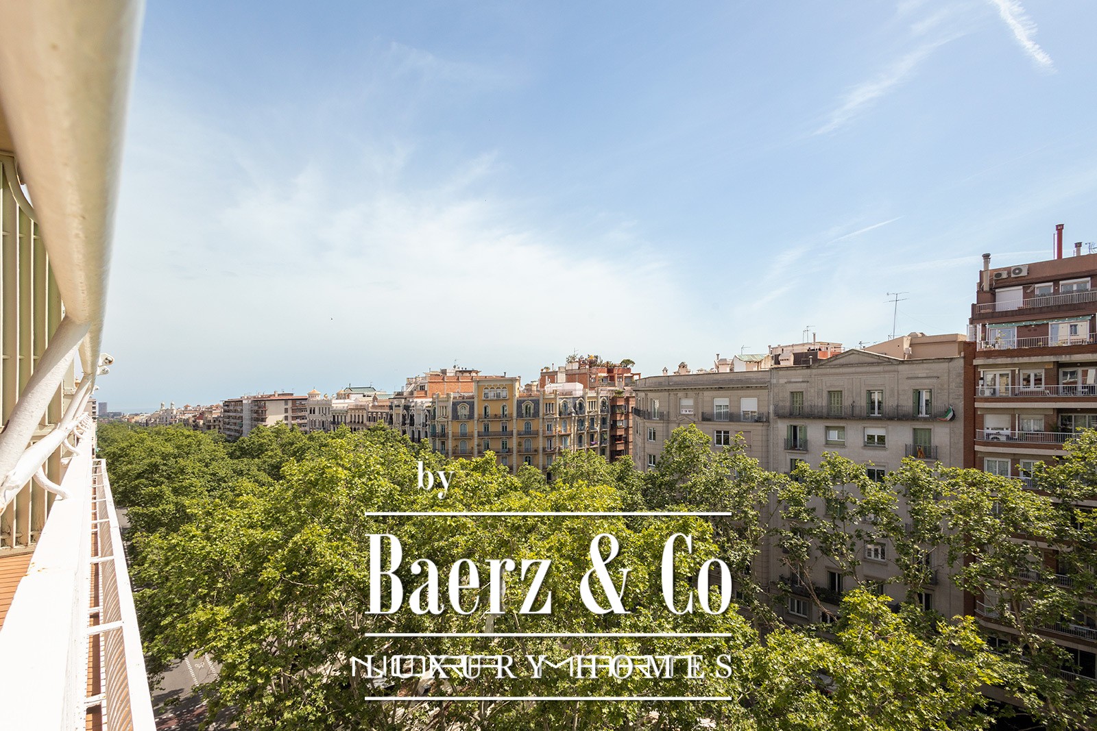 Apartment Barcelona is offered in the heart of the city’s most sought-after promenade, where Passeig de Sant Joan meets the distinctive atmosphere of Gràcia. This 90 m² apartment on the sixth floor enjoys expansive light, carrying the warmth of the midday sun and an enveloping calm through the afternoon. The living-dining room, oriented towards a 10 m² terrace, invites both city and Mediterranean sea views that stretch toward Tibidabo, with the terrace providing an ideal setting for quiet rituals or convivial gatherings.