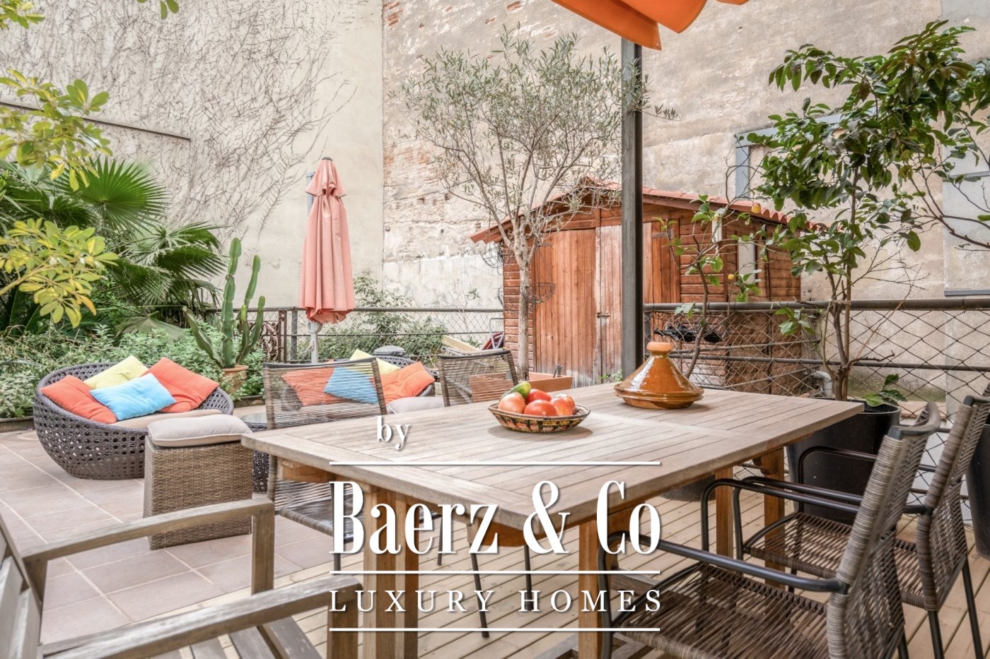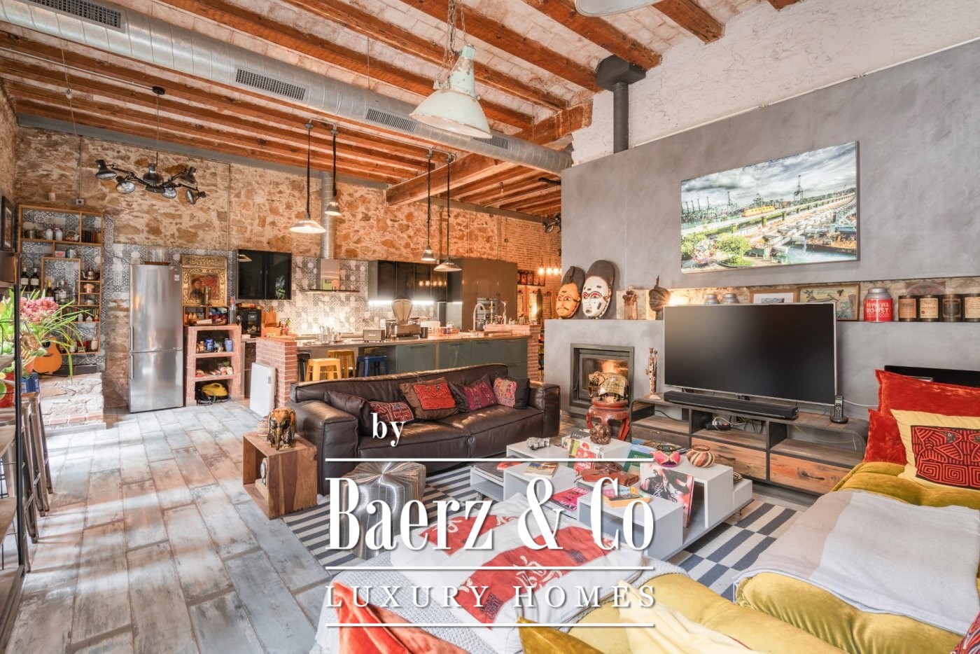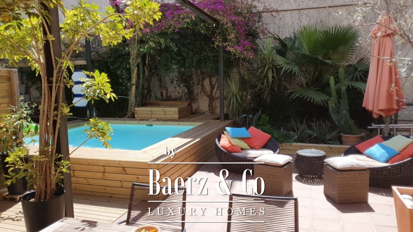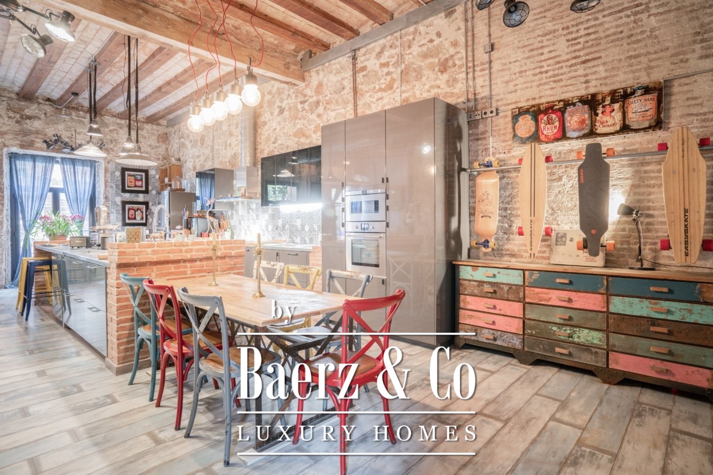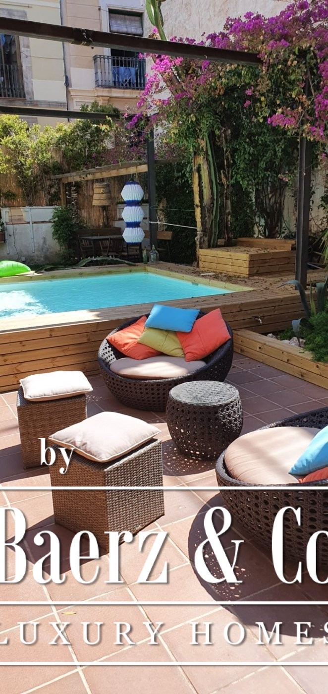 . . This catalan style apartment consists of 218 m2 plus 74 m2 of private terrace with pool. Upon entering, we find a corridor with huge windows that overlooks a large interior patio offering the space plenty of natural light. Ithis area connects the three double bedrooms; each one with its private bathroom, and another room that acts as a large multifunctional space that can perfectly be used as an office space.. . Following the corridor we find the day area, a huge and spacious space with very high ceilings up to 5 meters, composed of a large open kitchen, original brick walls and tiles, a toilet and a beautiful living room with a (wood) fireplace from which you can access the wonderful terrace with a pool shared with the neighbour next door. The terrace is private and is recently restored with new roofing to guarantee privacy. The whole house was completely renovated keeping original elements and decorated with great