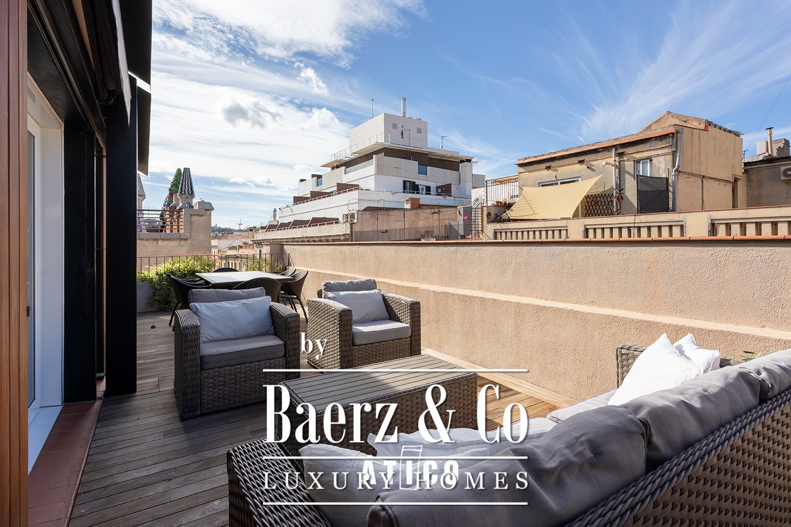 Penthouse Barcelona offers a living experience defined by space, light and enduring city views. This furnished property presents 105 m² of modern interior, enriched by an 80 m² terrace that frames the heart of the city and invites relaxed mornings or intimate summer dinners. The penthouse's careful orientation ensures abundant natural light, while the open terrace embraces the rhythm of Barcelona's urban energy.