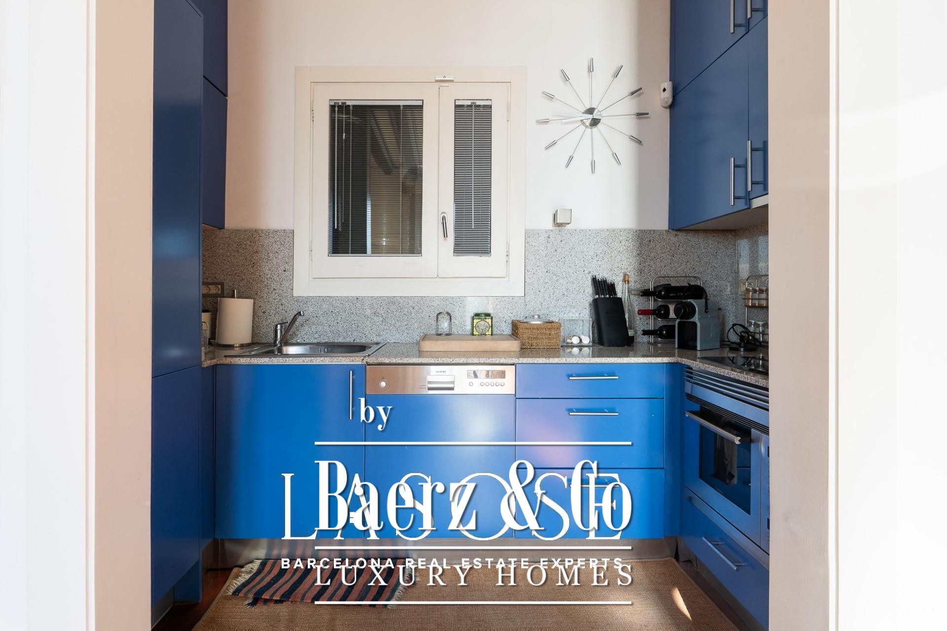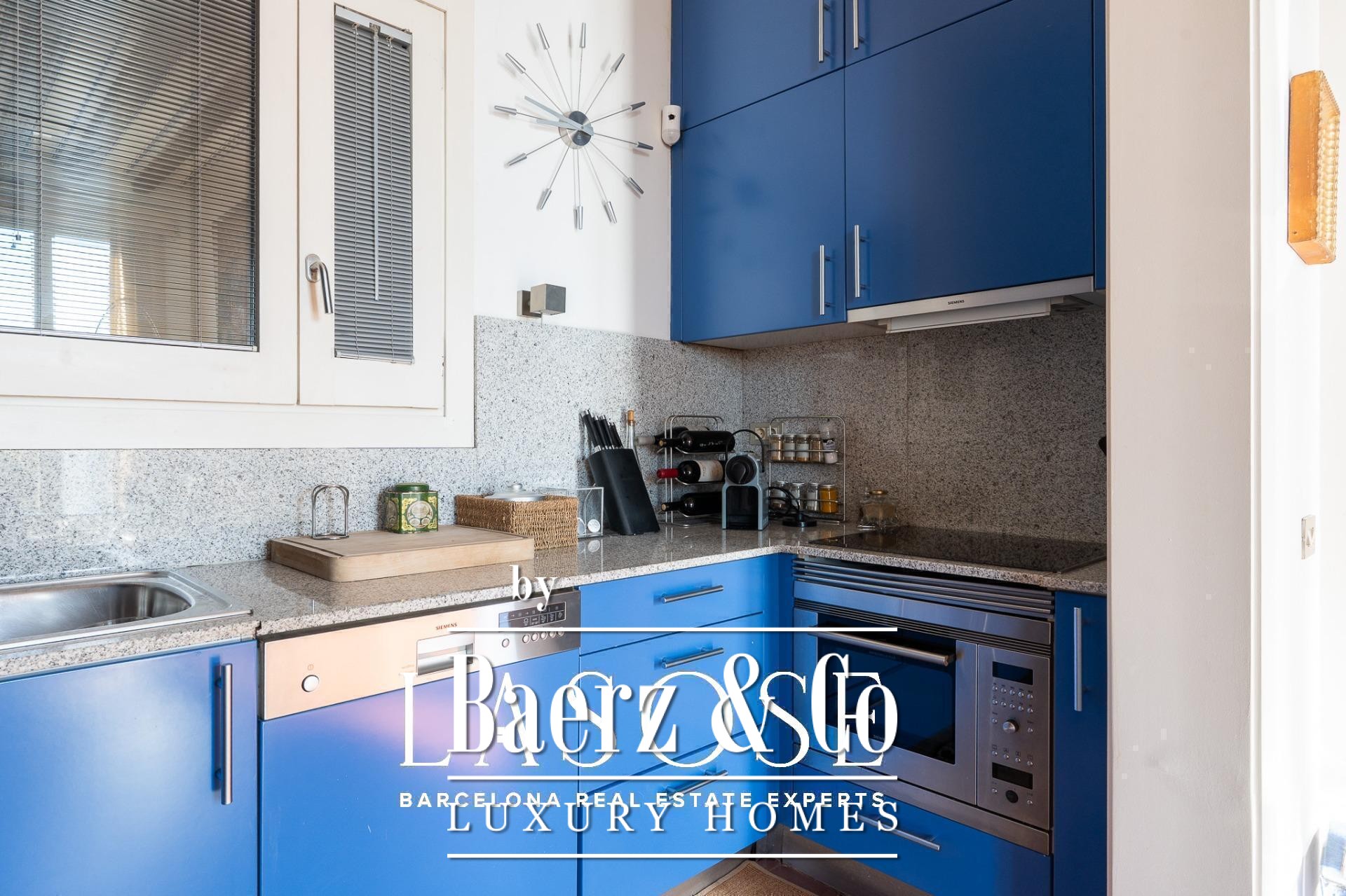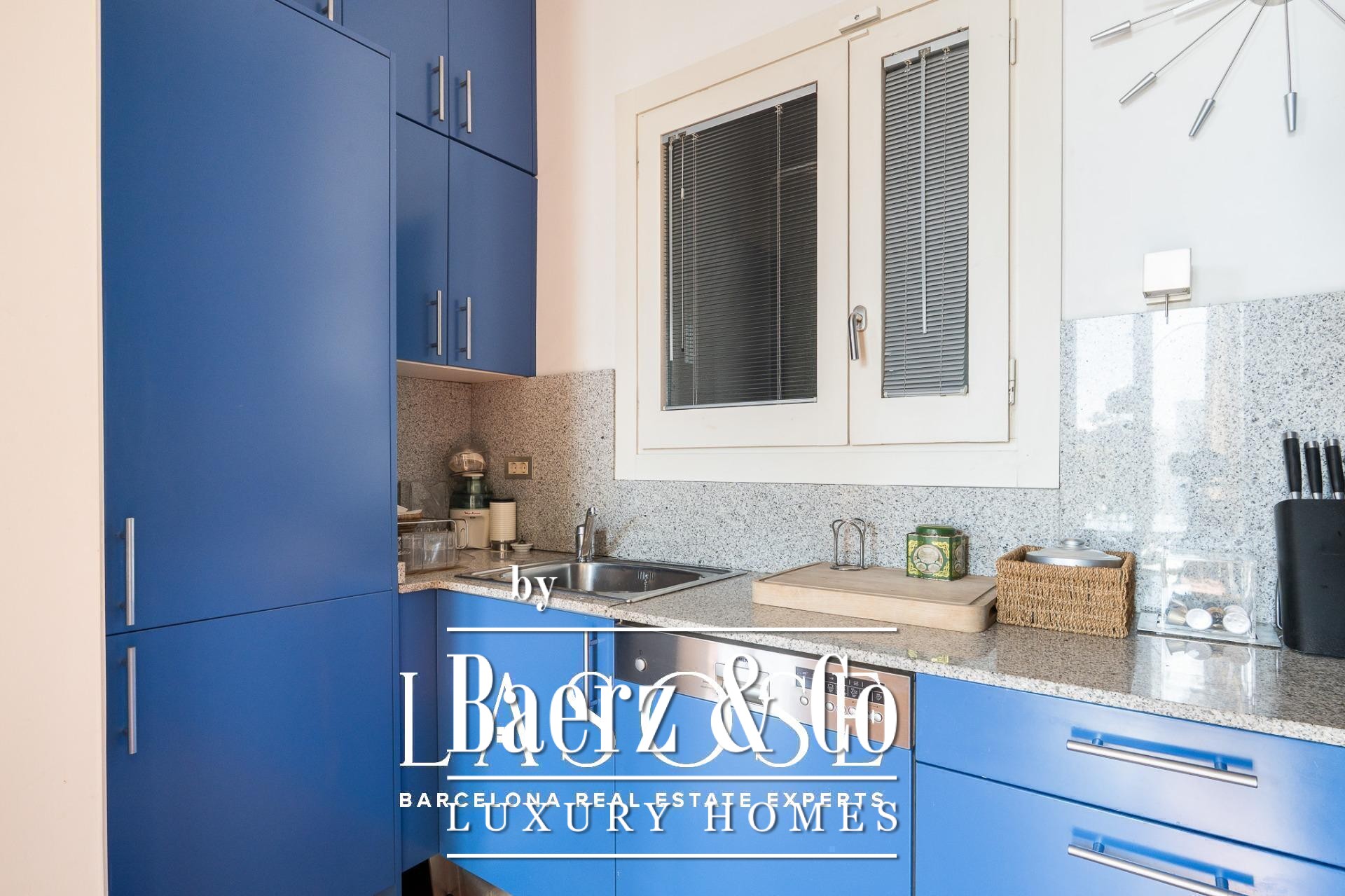 Apartment Barcelona sets its stage within a historic building overlooking the city’s marina. This apartment, spanning 122 m², occupies a distinguished address on Carrer Llauder and presents a rare interplay of heritage and contemporary living. Step inside to a volume defined by 3.8-meter ceilings, exposed wooden beams, and Catalan vaulted ceilings with hand-painted details. Wrought-iron balconies frame the open sea and the greenery of Las Ramblas de Mar, filling each room with Mediterranean light.