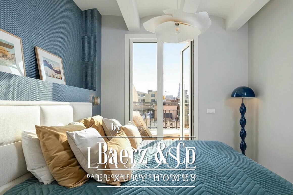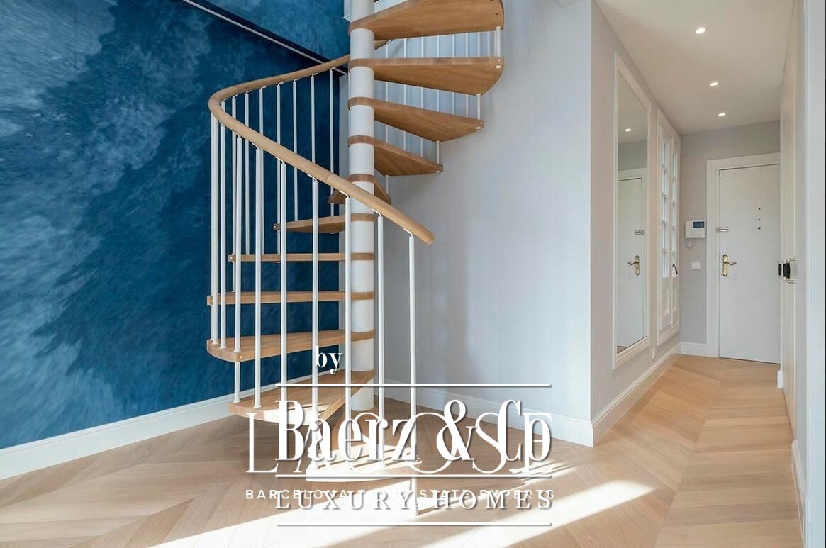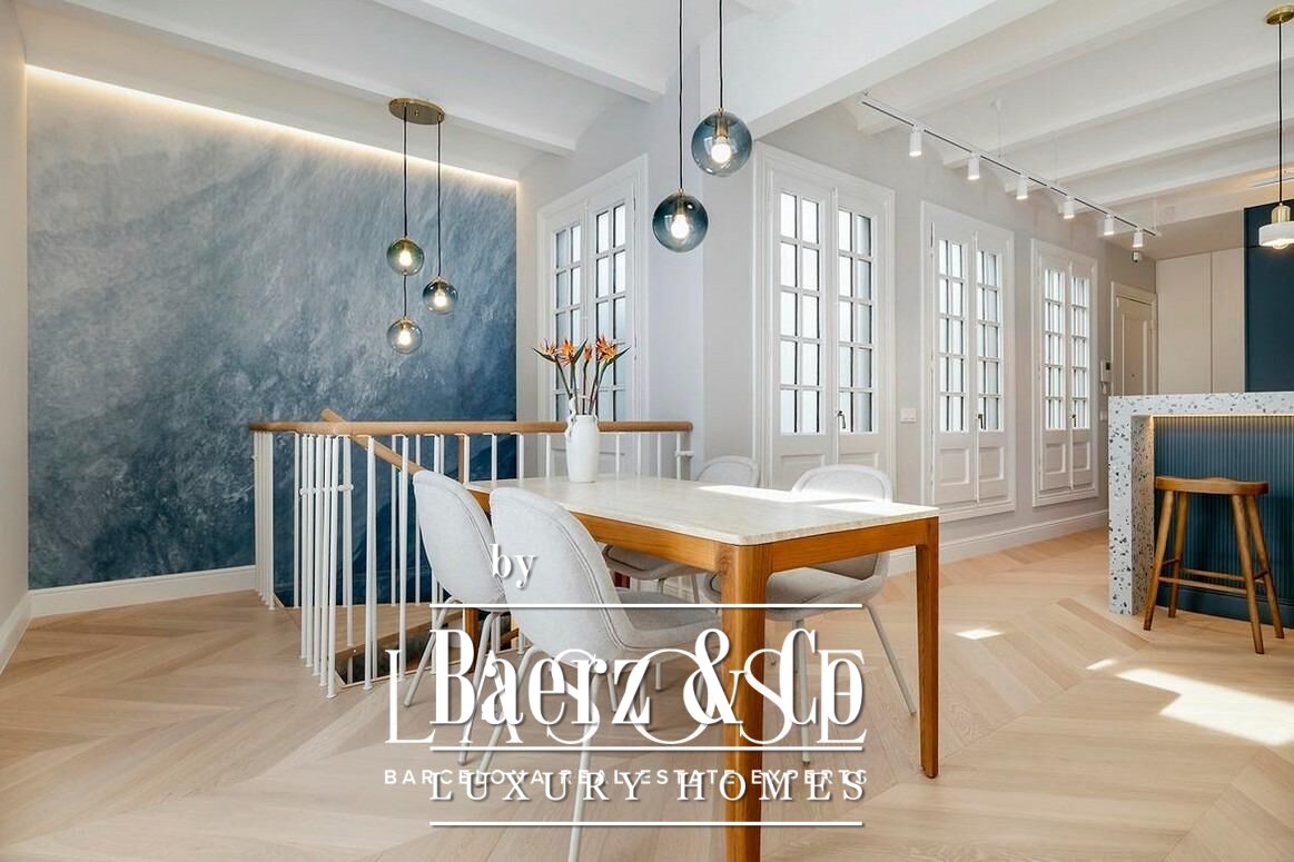 LASOSE presents next to the iconic former Ritz Hotel, this stunning 133 m² duplex penthouse is set within a beautifully preserved modernist building, featuring a majestic entrance hall and two original elevators that evoke timeless charm.. . Thoughtfully redesigned by Nobohome, the top floor (6th and final) serves as the day area, where a bright and spacious living-dining room flows effortlessly into a fully equipped open-plan kitchen. This space opens onto a 22 m² south-facing terrace — perfect for basking in the sun and enjoying panoramic views of the city.. . A stylish internal staircase connects to the lower floor (5th), dedicated to the night area. It features two bedrooms that share a sleek, contemporary bathroom, while the luxurious master suite boasts a walk-in closet and a private en-suite bathroom. All three bedrooms have direct access to an 18 m² balcony, enhancing natural light and a sense of openness.. . In the hallway, built-in wardrobes discreetly house the washer, dryer, and heat pump. For added convenience and flexibility, both floors are equipped with independent entrance doors.. . This exceptional penthouse seamlessly blends modern comfort with classic elegance — all in one of Barcelona’s most sought-after locations.