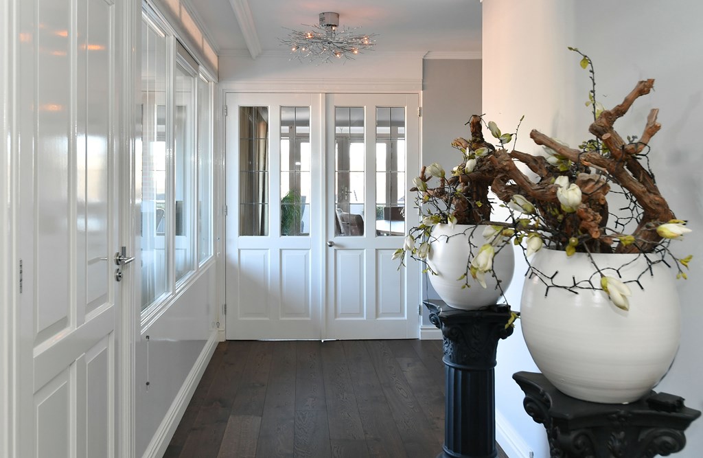 Through the covered entrance, you enter a spacious hallway that immediately reveals the high-quality finishes and sense of space that characterize this penthouse.