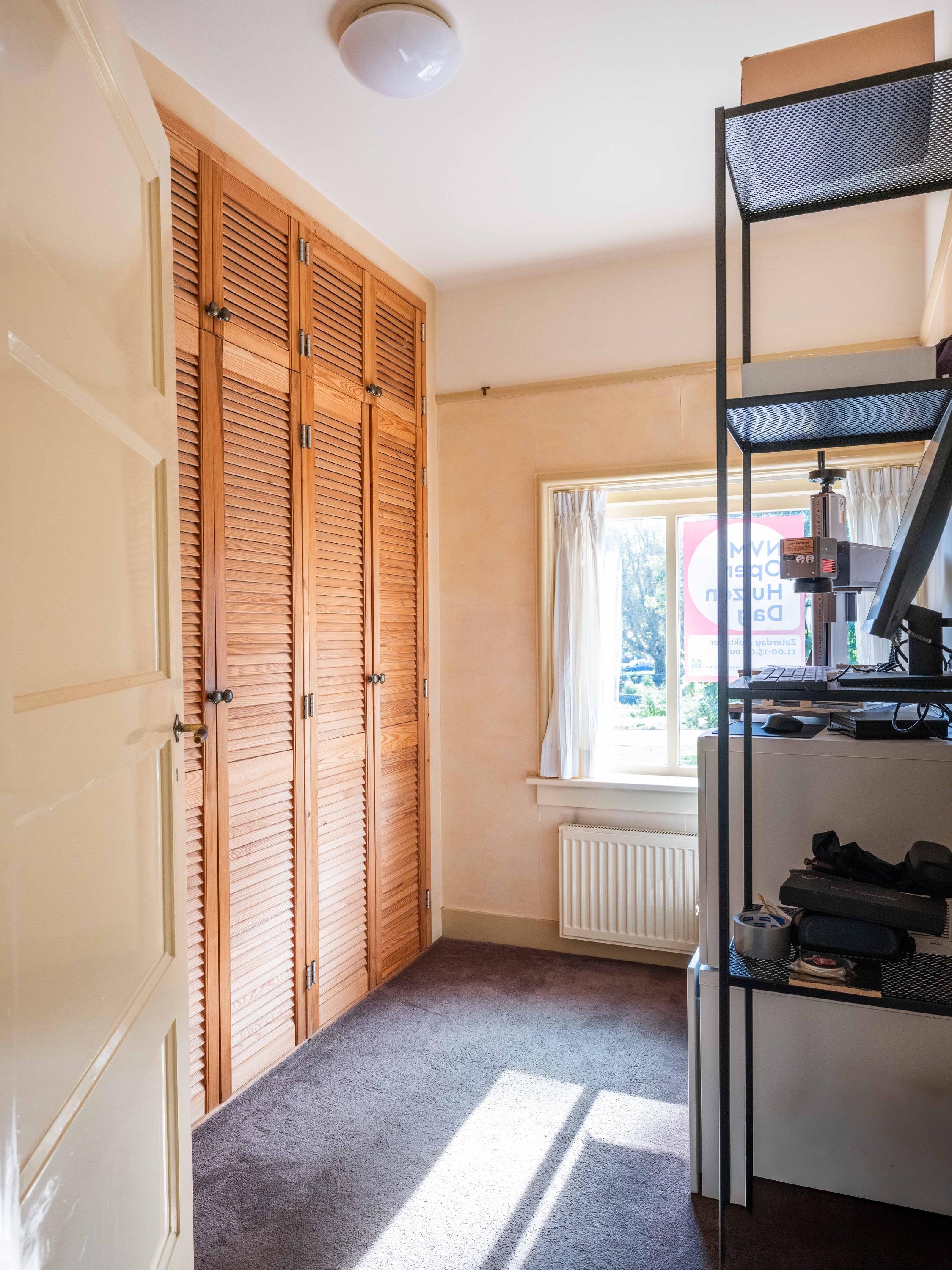Bicycles, tools and garden equipment can be stored in the detached shed with electricity, water and heating. Very special is the presence of an old bunker, which is still accessible, the current residents use it to store garden chairs.