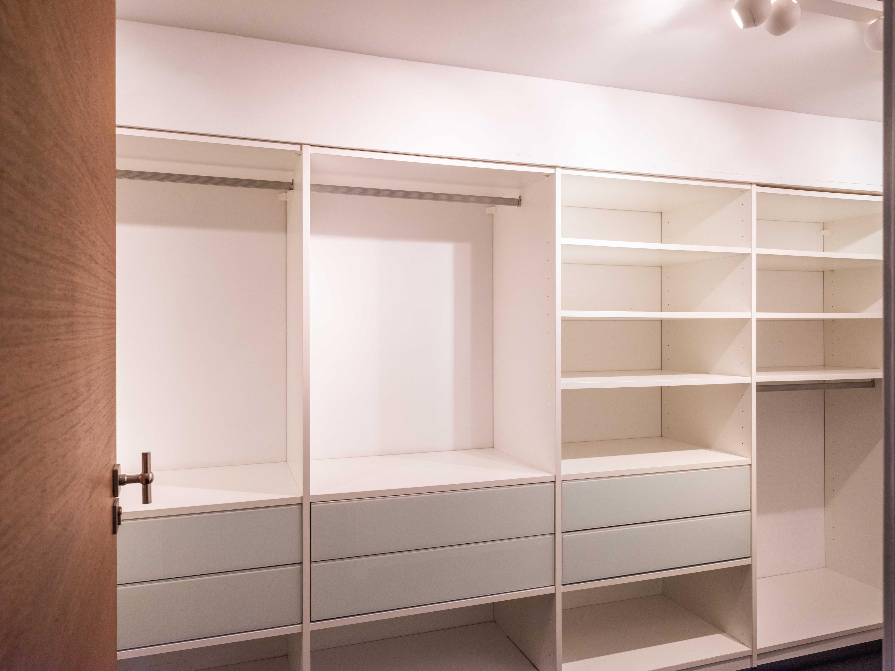 Also from the living room, there are passages to a separate toilet, several storage rooms and the master bedroom in the adjacent wing. This bedroom has a spacious walk-in wardrobe and an open bathroom with double sinks. The bathroom has a spacious shower with seat and a toilet. The view from both the bedroom and the bathroom faces the pool, further emphasising the luxury of the property and creating a wellness experience.