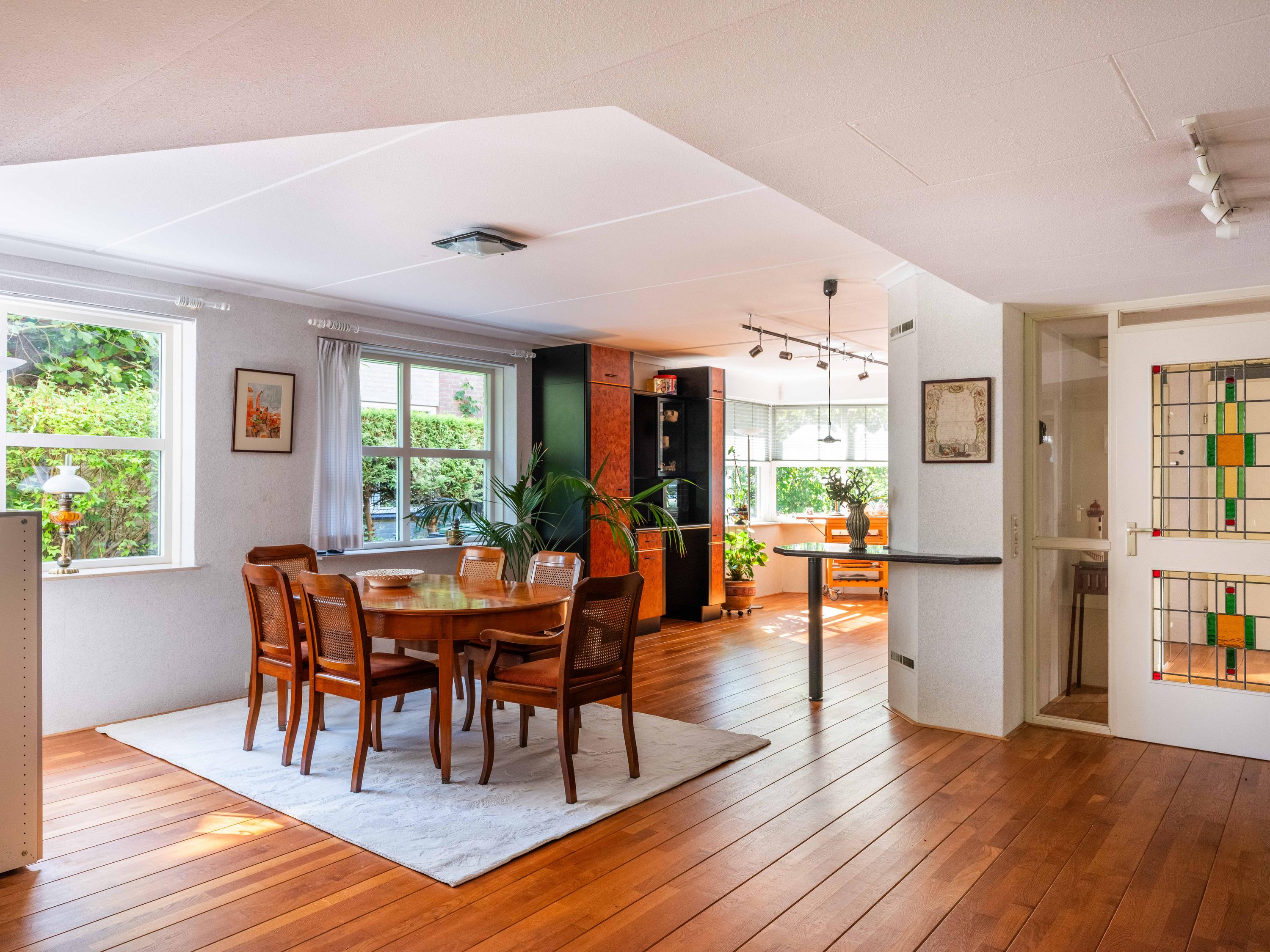 We would be happy to show you around. Upon entering, you will find a spacious entrance hall with a cloakroom, toilet, and meter cupboard. The layout of this home is playful and contemporary, with a cozy garden-facing sitting area with a separate dining area. The kitchen is located at the front and offers plenty of storage space and various built-in appliances. Ideal for both relaxing evenings and cozy family moments.