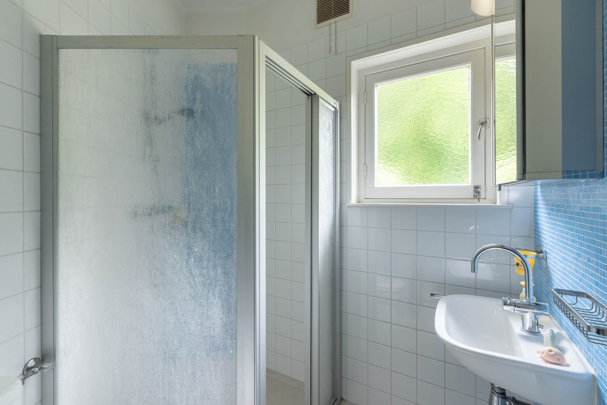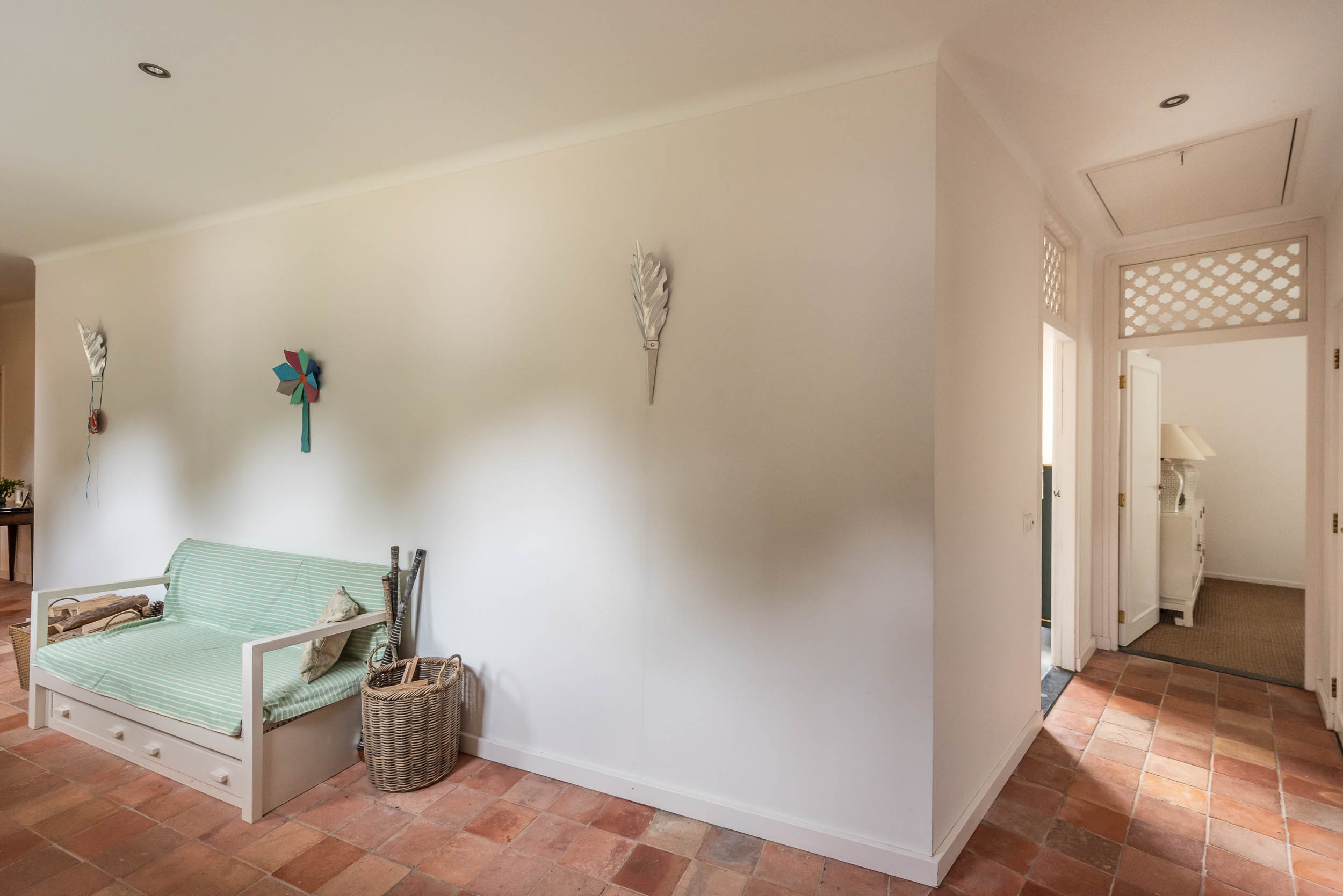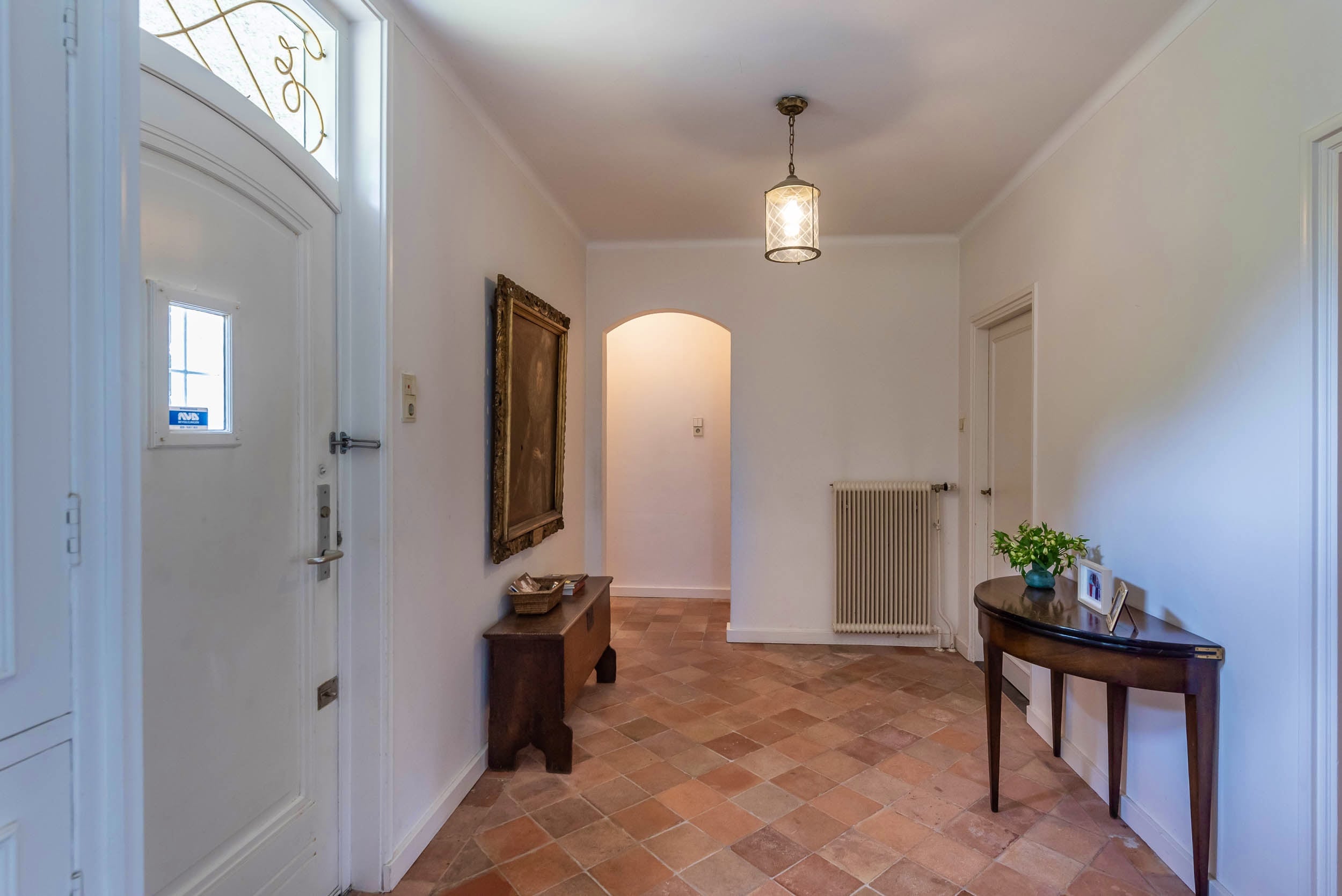A sweeping driveway leads to a double carport with round point and ample parking, complemented by an indoor garage. The living area of 221 m² is arranged in both the original 1953 house and a 2001 extension, maintaining architectural continuity throughout. Interiors are composed for comfort: airy rooms are connected by French doors to the unusually varied and sunlit garden. The main living spaces blend parquet and terrazzo flooring, open fireplaces, and bespoke built-ins, shaping an atmosphere of understated warmth.
