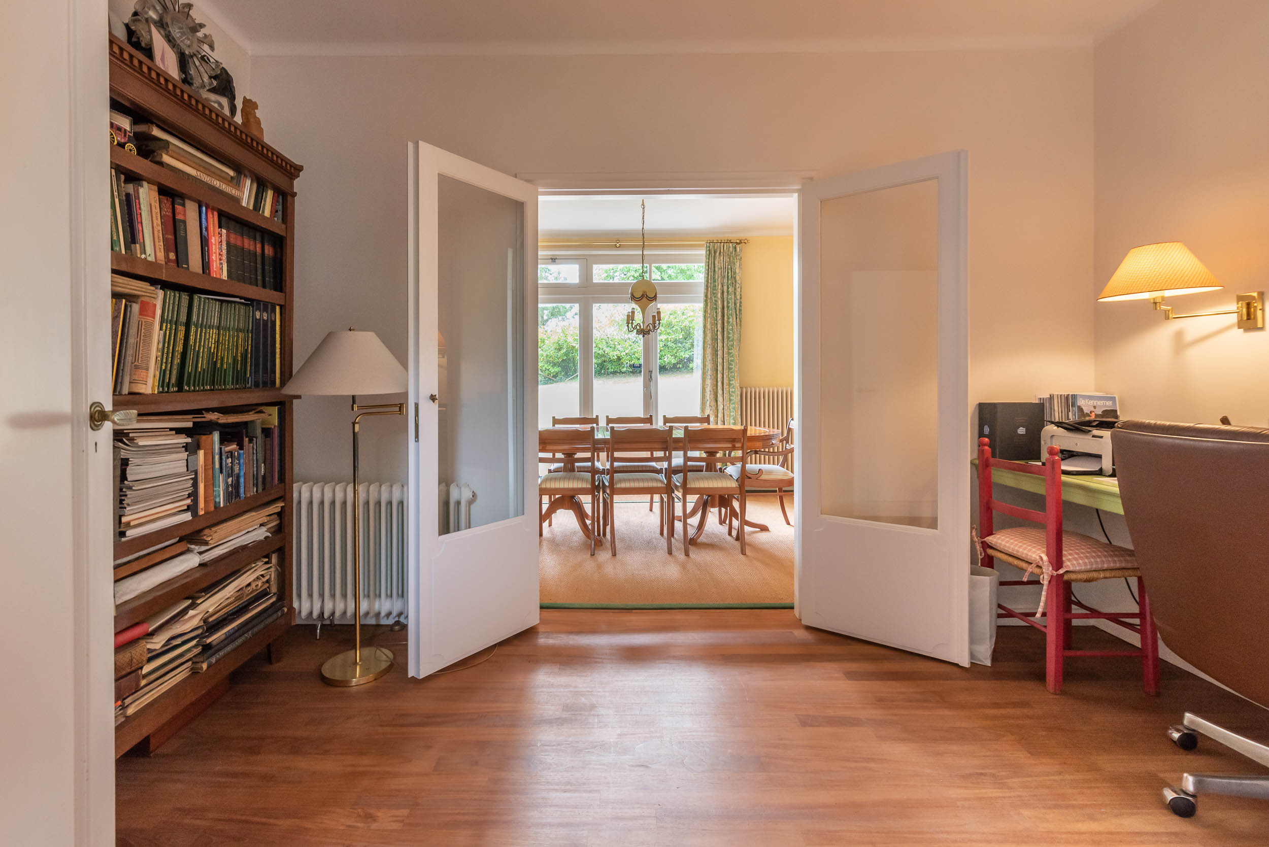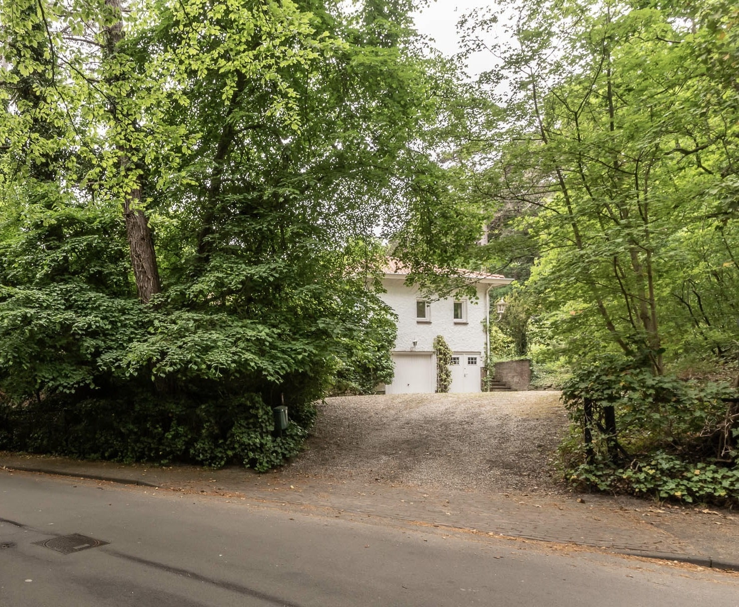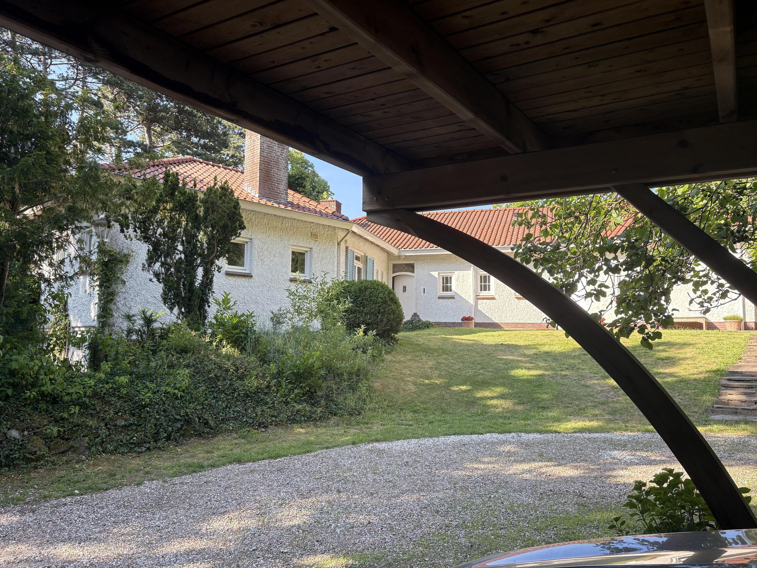 Detached villa Bloemendaal offers a refined architectural presence within the sought-after Duin en Daal villa park. Designed by H.W. van Kempen, this property evokes Mediterranean lightness with its subtle blue Louvre shutters, hipped roof, and the authentic character of French tiles in the hallway. Set on a substantial 4420 m² private plot, the house is surrounded by mature trees and elevated above the road, providing optimal privacy.