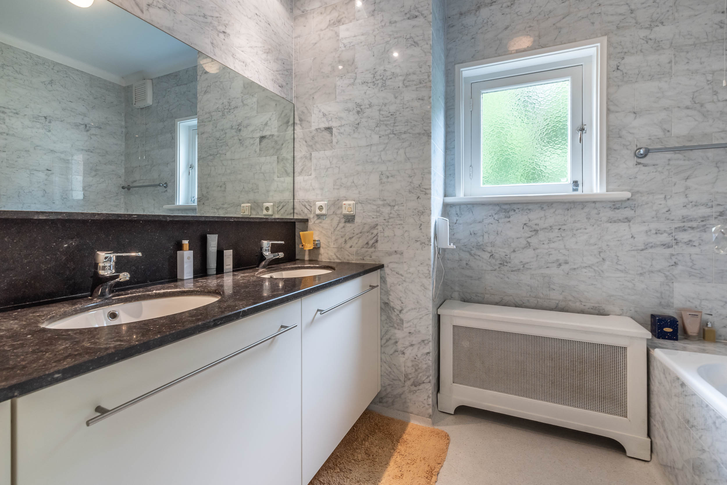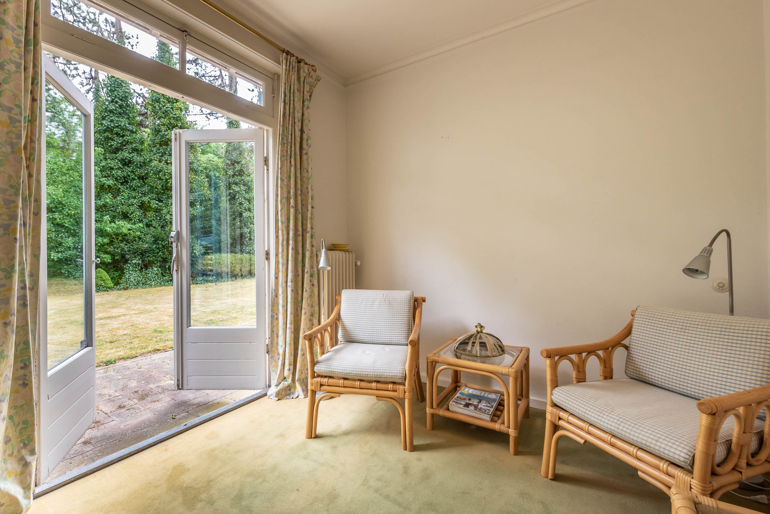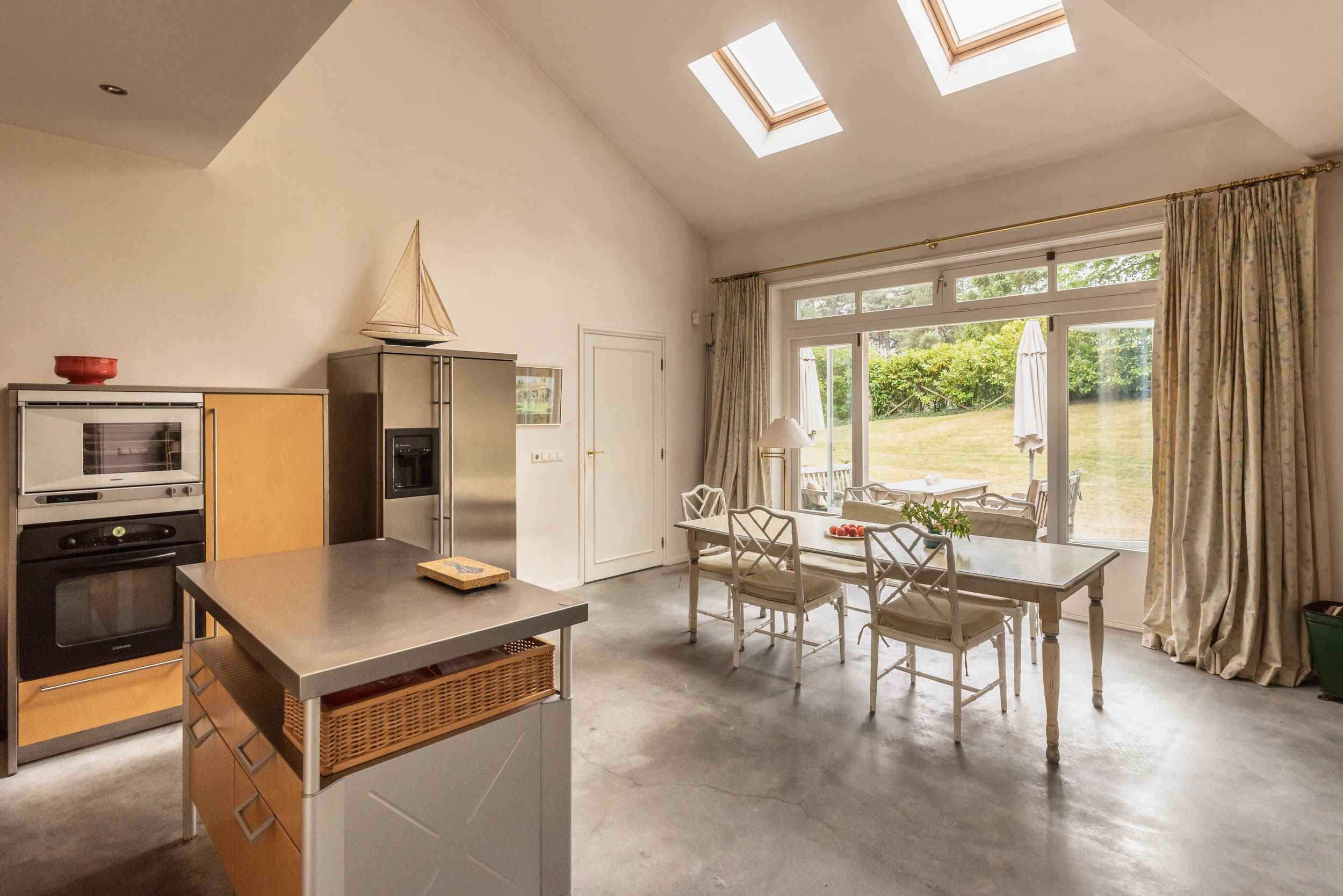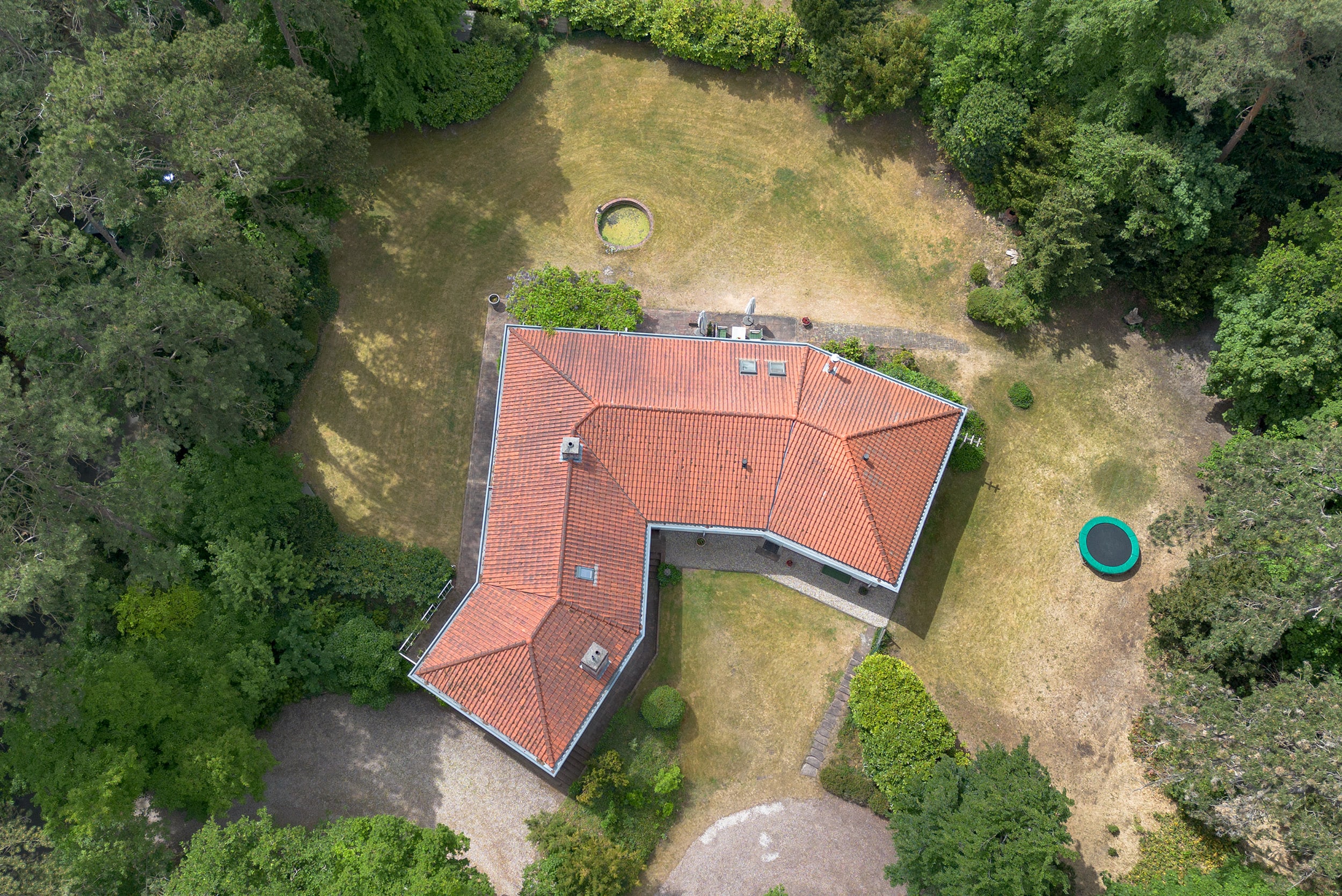 Detached villa Bloemendaal offers a refined architectural presence within the sought-after Duin en Daal villa park. Designed by H.W. van Kempen, this property evokes Mediterranean lightness with its subtle blue Louvre shutters, hipped roof, and the authentic character of French tiles in the hallway. Set on a substantial 4420 m² private plot, the house is surrounded by mature trees and elevated above the road, providing optimal privacy.
