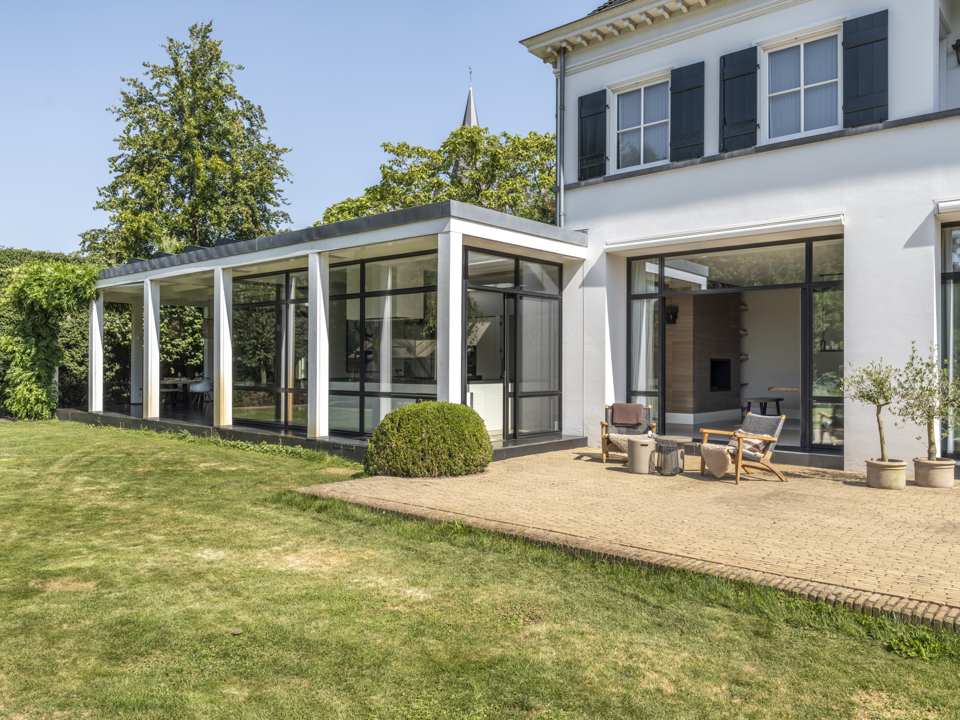 Villa Breda sits discreetly within walking distance of Ginnekenmarkt, the Mastbos, and Markdal, embodying understated grandeur through a fusion of classical and modern architecture. This 850 m² villa for sale in Breda, constructed in 2011, is nestled behind gates in a private courtyard, shaded by plane trees, where a carriage house accommodates four cars and a wooden shed completes the arrival sequence. On a 3,188 m² secured plot, the home offers an atmosphere of cultivated seclusion, heightened by a lush garden, a private swimming pool, and a synthetic grass hockey field, seamlessly blending outdoor leisure with elegant living.