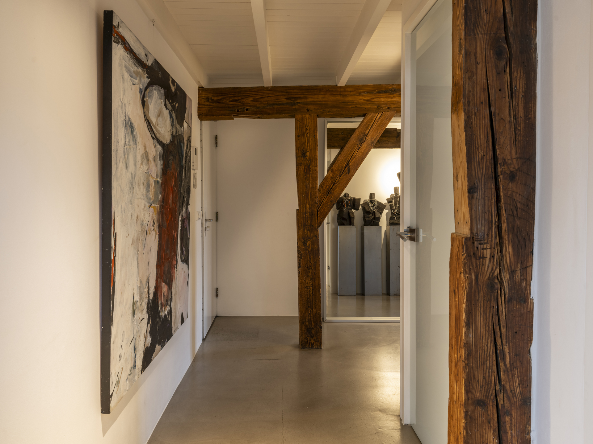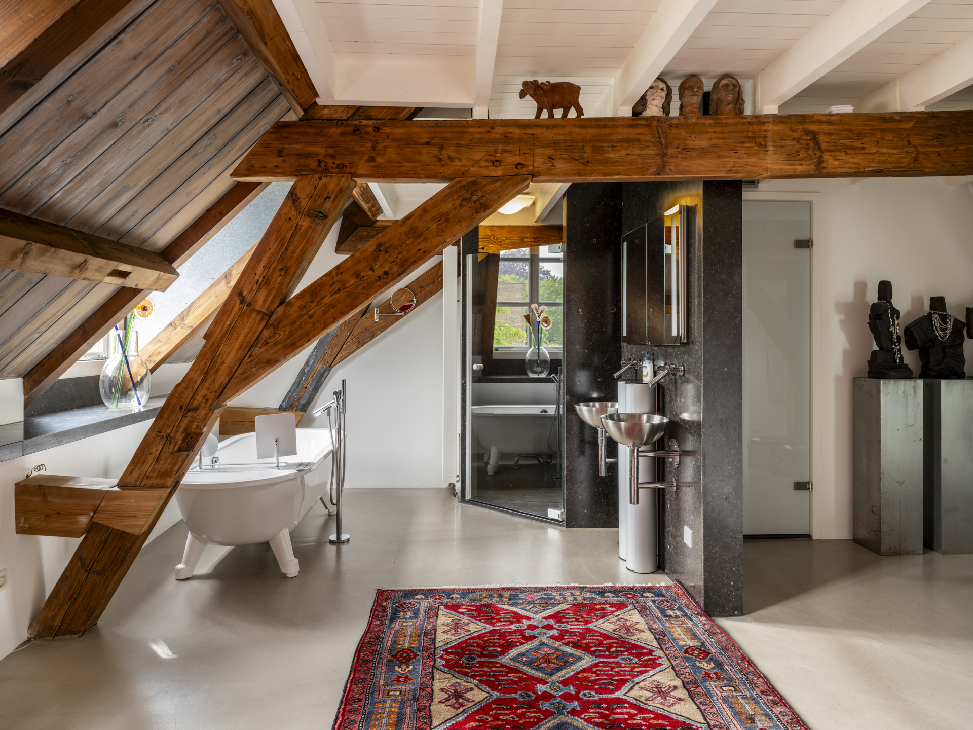 The apartment features a unique and monumental roof structure with a maximum height of approximately 6 meters.
