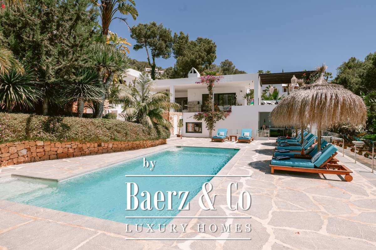 includes a private gym, a game room, and a separate laundry area.With its exceptional finishes and contemporary architecture, this villa is not only the perfect holiday home but also an outstanding investment opportunity in Ibiza.Outdoor Living at Its Finest: Pool, Jacuzzi, and Breathtaking ViewsThe outdoor areas of this villa are just as spectacular as the interiors. The large infinity pool offers unparalleled panoramic views of the lush hills and the sea, while the spacious sun terraces invite you to relax and soak up the Ibiza sunshine. Start your day with a coffee on your private terrace, spend the afternoon lounging by the pool, and end the evening with a barbecue in the outdoor kitchen, dining under the stars.The jacuzzi adds an extra layer of relaxation, while the Bali-style pergola with massage beds offers a unique wellness experience with mesmerizing island views. Families will appreciate the dedicated play area and trampoline, making this villa an excellent choice for both families and investors seeking a high-end property in Ibiza.Are you looking for a dream villa that combines privacy, luxury, and a prime location? Then this is your opportunity. This exclusive villa in Can Furnet offers everything you need in a high-end Ibiza home. Contact us today to schedule a viewing and experience this extraordinary property firsthand!Additional OpportunitiesSince this is a big buildable plot within an urbanization, there is even the option to completely demolish the existing villa and develop something entirely new and contemporary on this location. Whether you dream of building your own home, considering a full renovation, or making specific modifications to change the layout, the possibilities are endless. At Ibiza Estates, we are more than happy to think along with you!