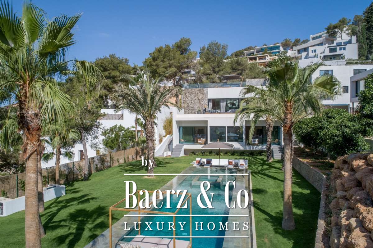 Modern villa Can Furnet invites refined living in one of Ibiza’s most coveted residential enclaves. This elevated home with 426m² of living space, thoughtfully designed by Blakstad, commands spectacular views over Dalt Vila. Set within a tranquil 1,404m² plot, it offers a rare combination of privacy and immediate access to the cultural pulse of Ibiza Town, the fashionable marina of Botafoch, and the sandy stretch of Talamanca Beach, each within minutes’ reach.