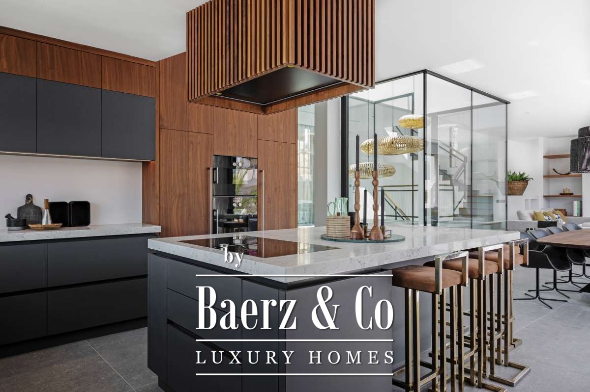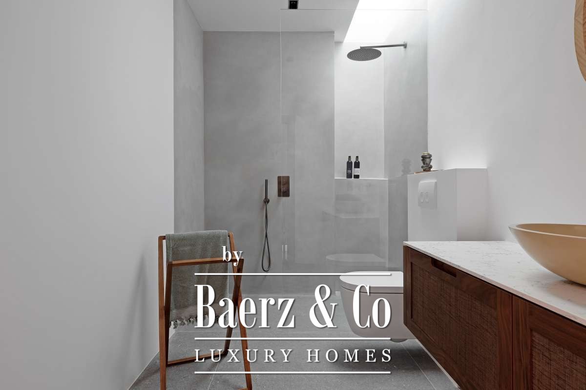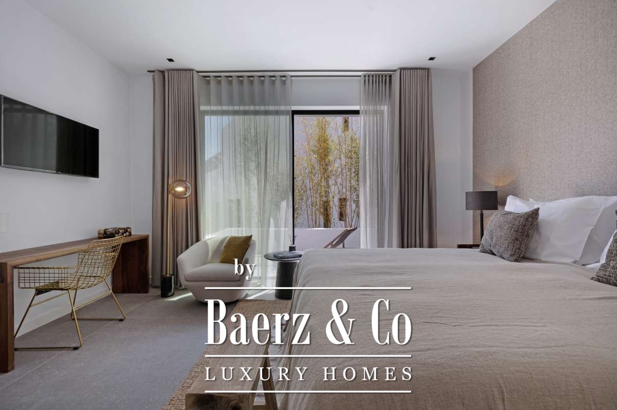 Five generously proportioned en suite bedrooms, all on the lower level, open onto private balconies and terraces, each offering a vantage point over the expansive tropical gardens and the pool. The master suites benefit from tranquil garden views and direct access to the serene pool terrace. Throughout, underfloor heating, air conditioning, double glazing, and a full alarm system ensure comfort and peace of mind.