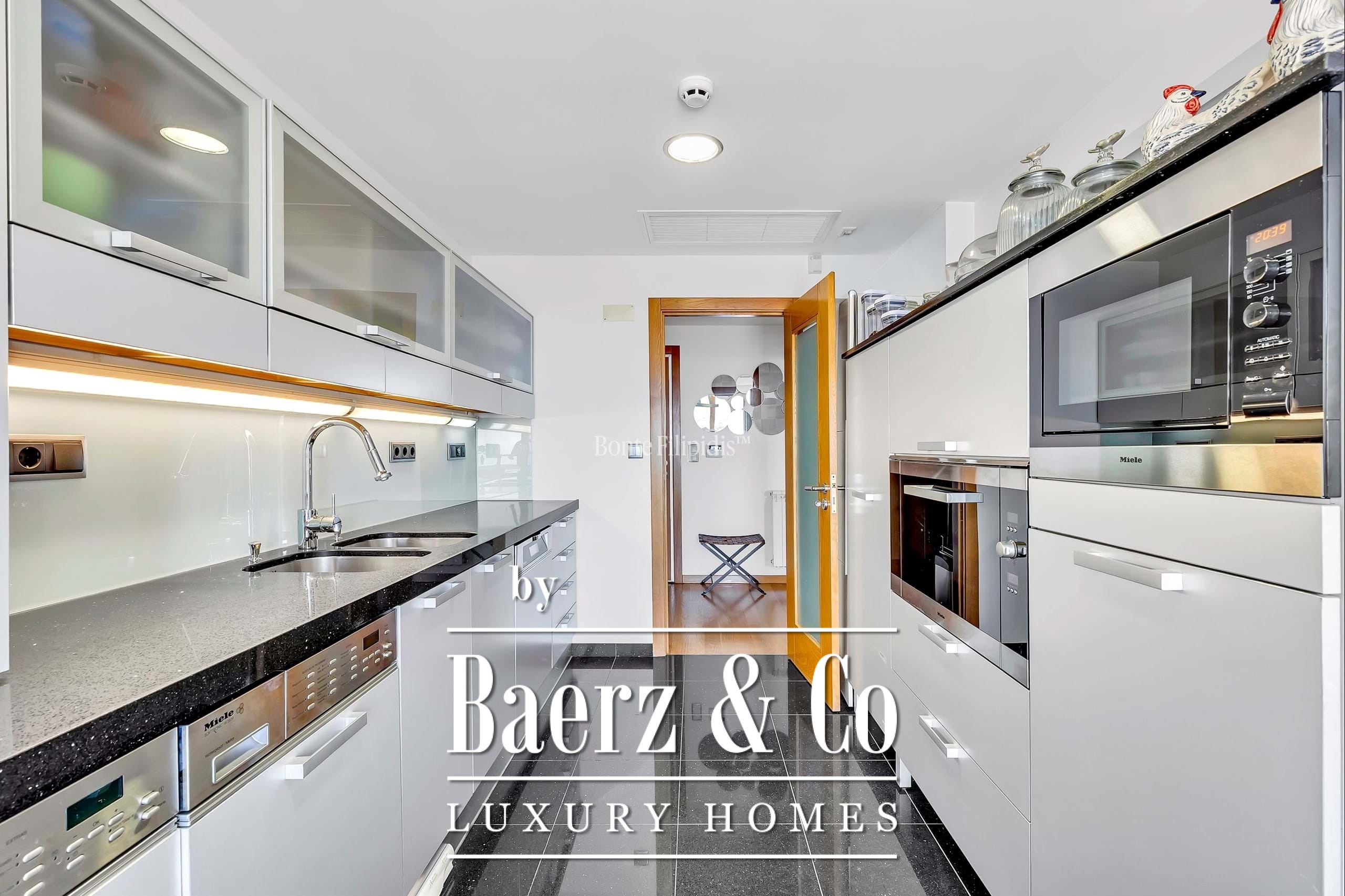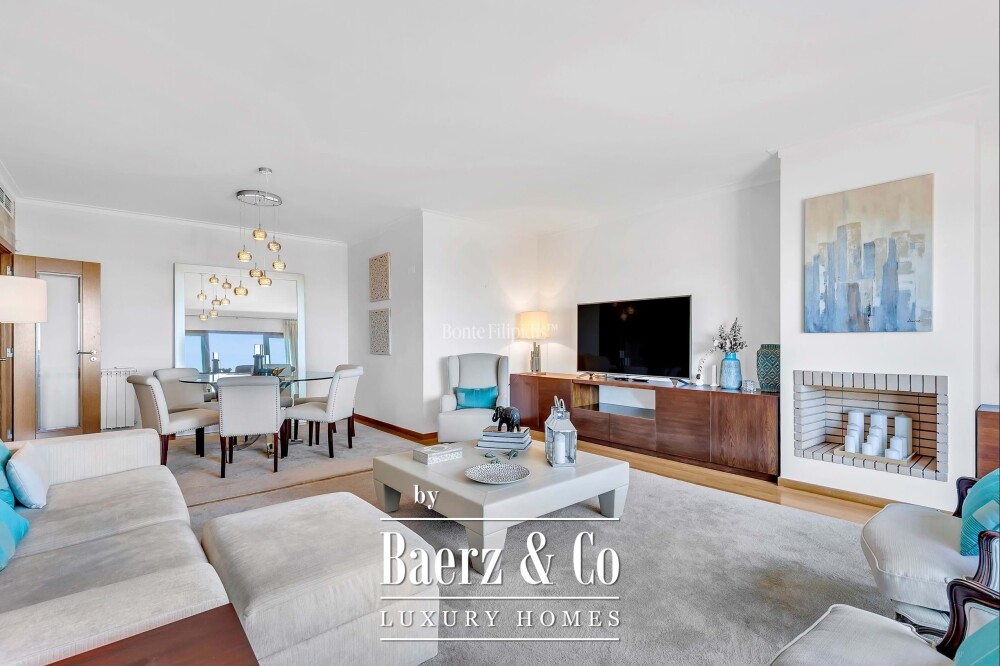 Apartment Cascais e Estoril occupies a quiet position within a private gated condominium, offering open ocean views and concierge service in one of Portugal’s most desirable coastal areas. This two-bedroom, two-bathroom apartment has a private gross area of 113.50 m², with a layout that balances privacy and openness, inviting the sea into every living space. The living room separates into lounge and dining zones, anchored by a fireplace and integrated wine storage, while the kitchen—equipped with Miele appliances, gas and electric hobs—extends discreetly to a laundry area.