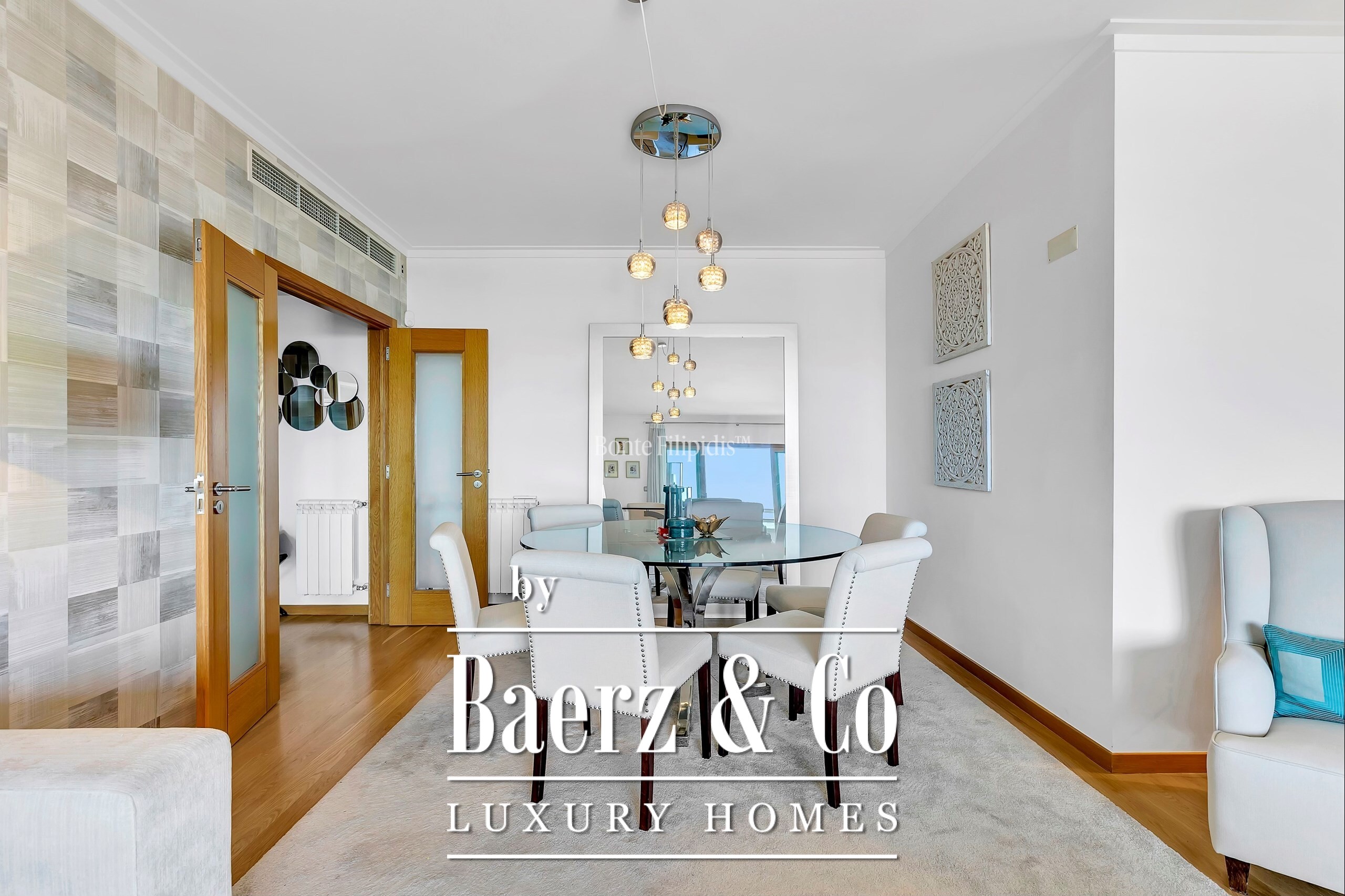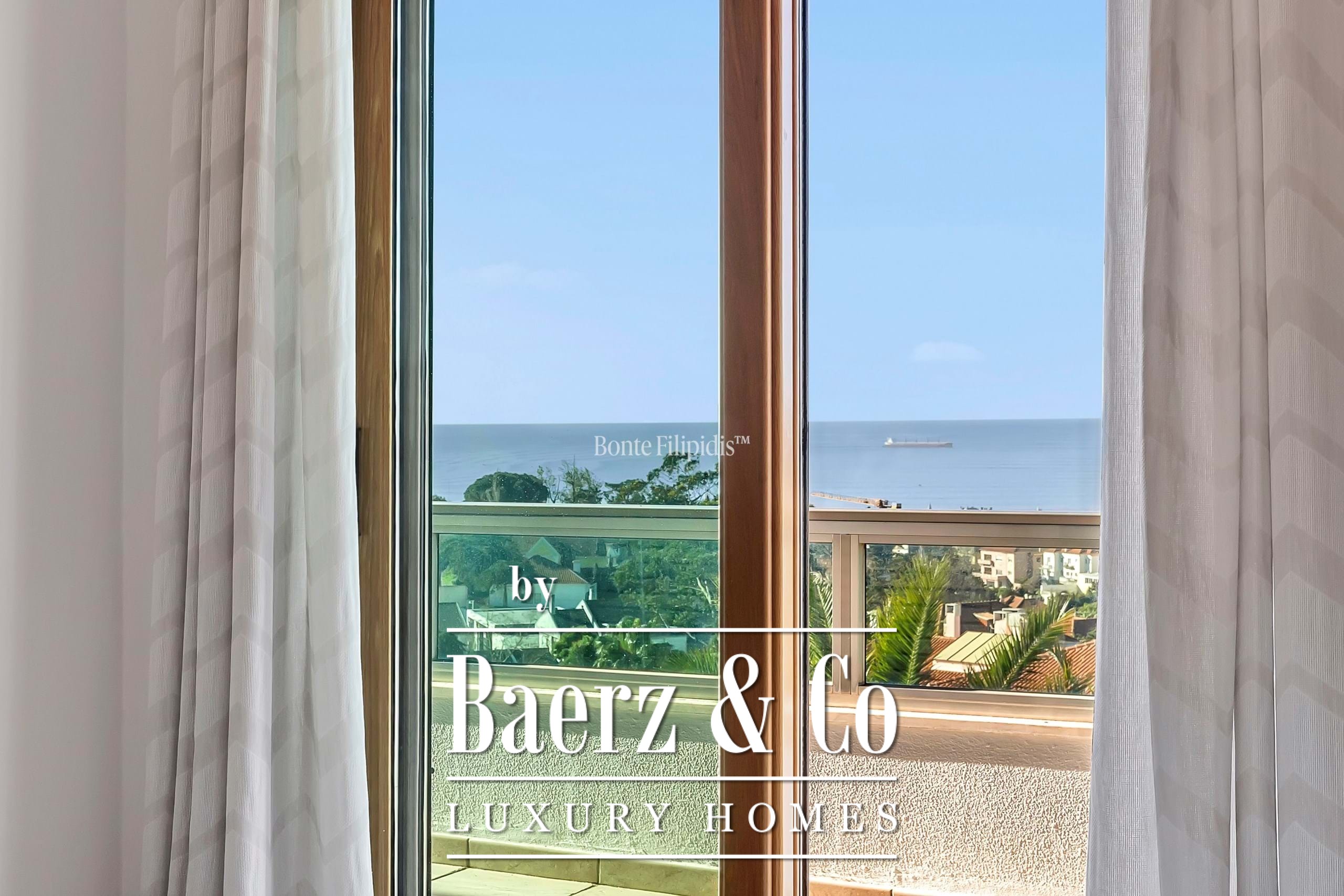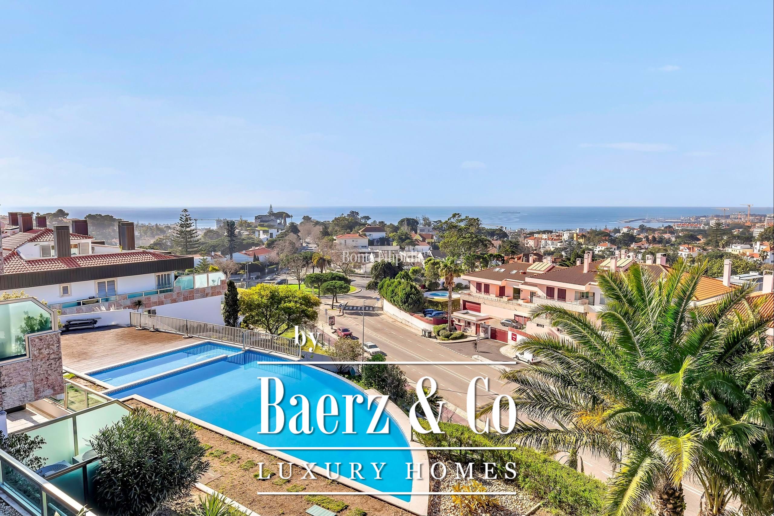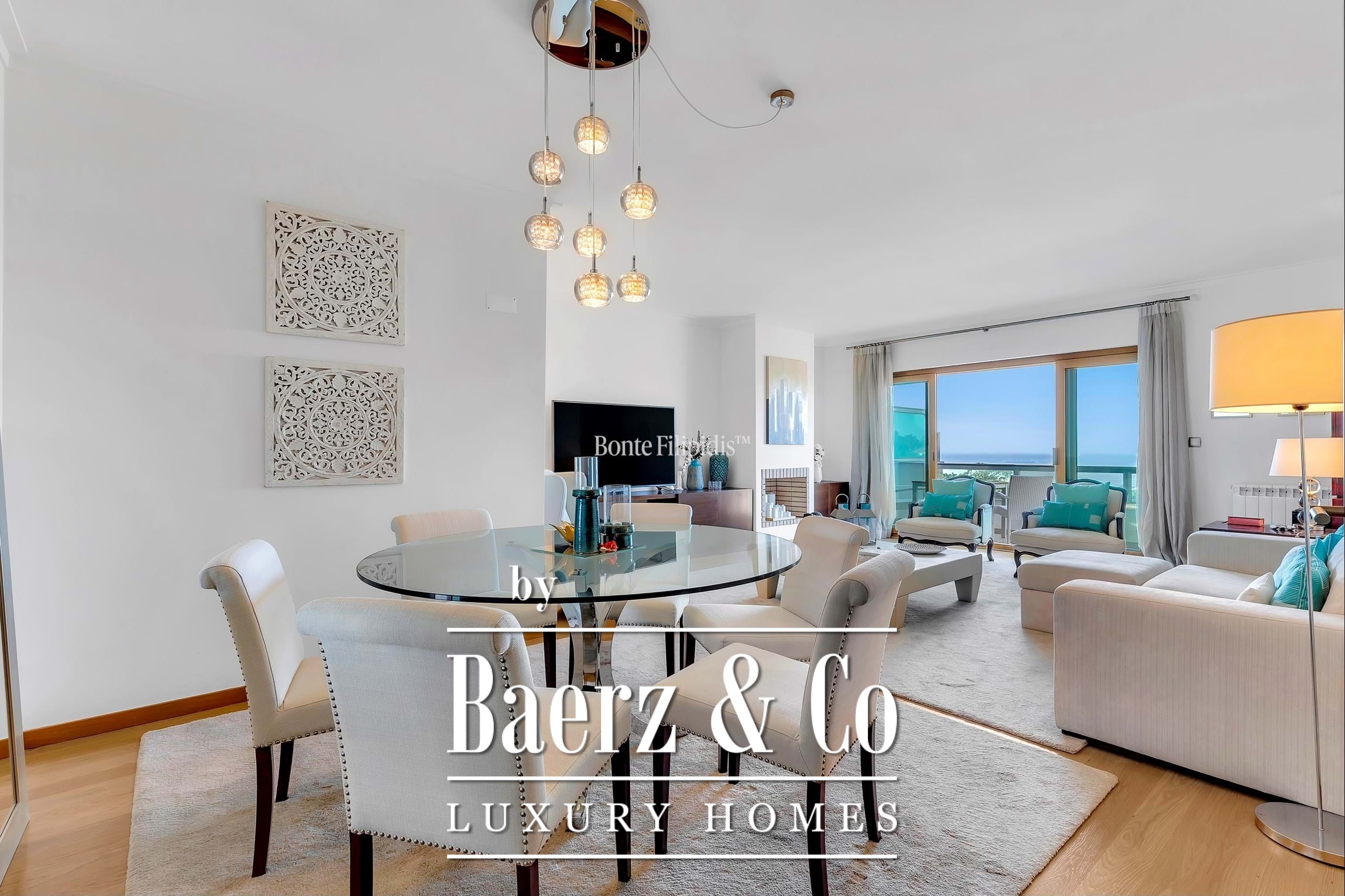 Amenities include air conditioning and heating throughout, a storage room, two private parking spaces with a total dependent area of 47 m², lift access, and participation in the condominium’s pool and well-kept gardens. The apartment benefits from proximity to Estoril’s beaches, local restaurants, schools, and direct routes to Lisbon, making it a rare proposition for those seeking an apartment with sea view in Cascais e Estoril.