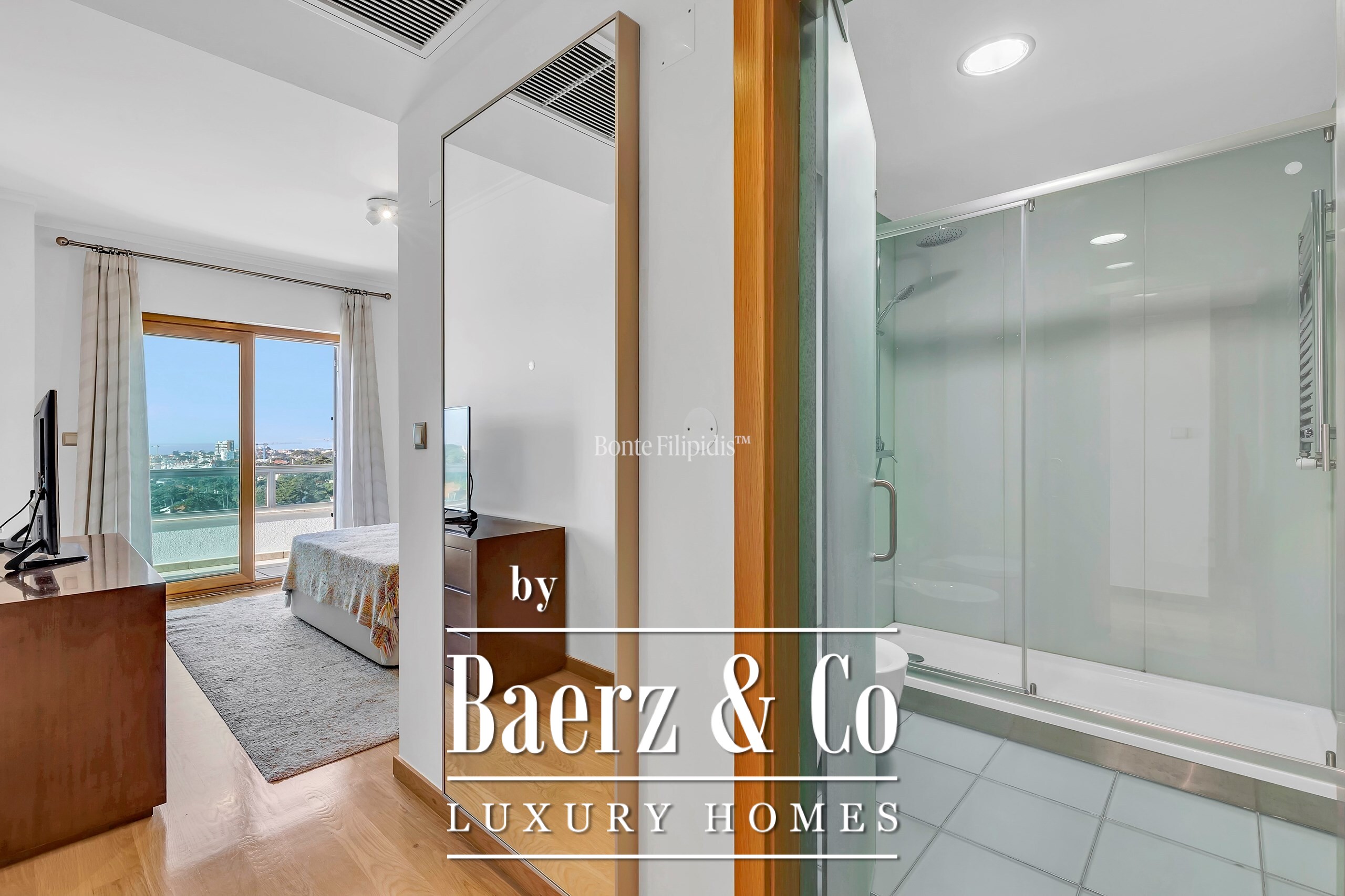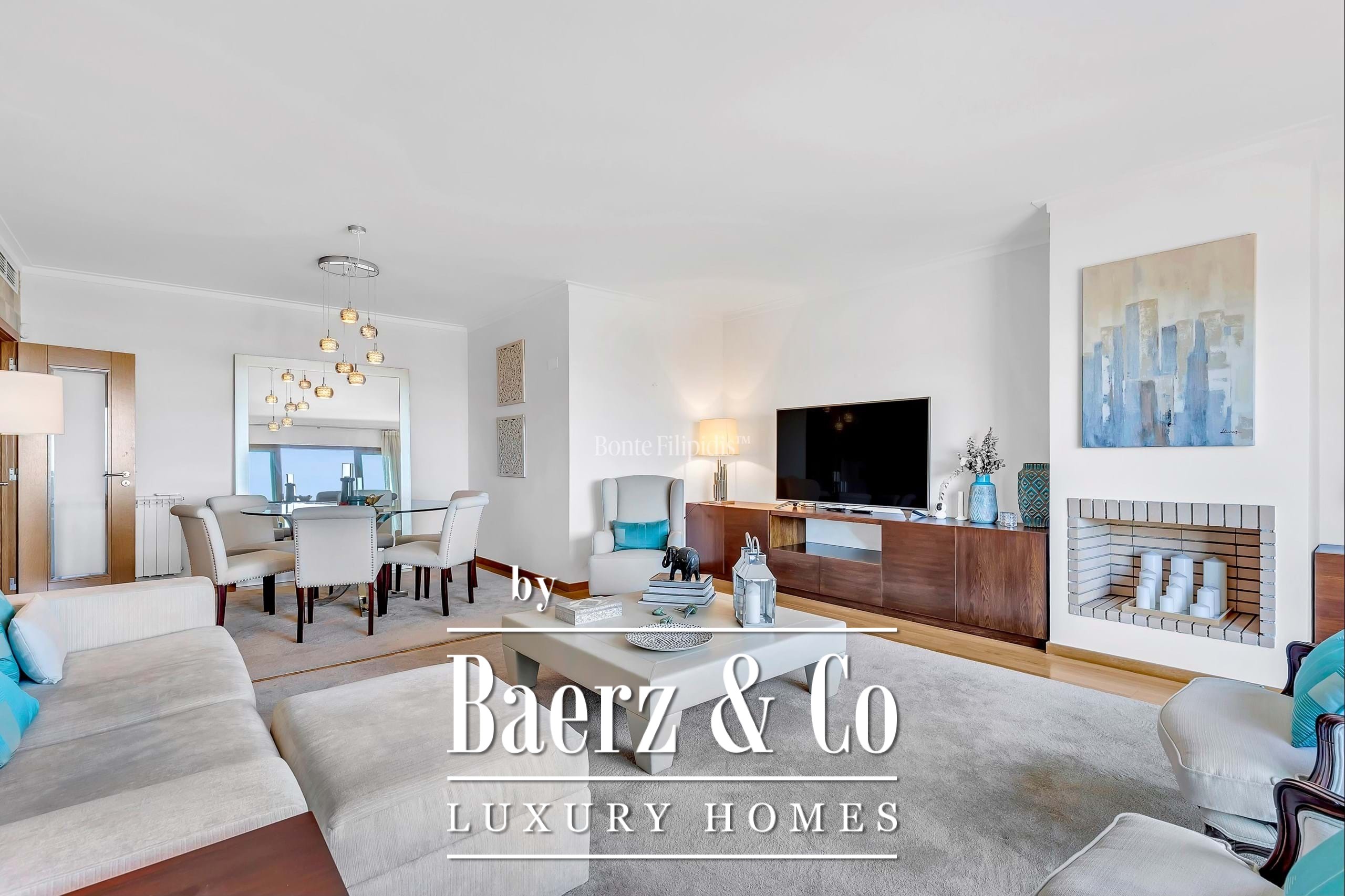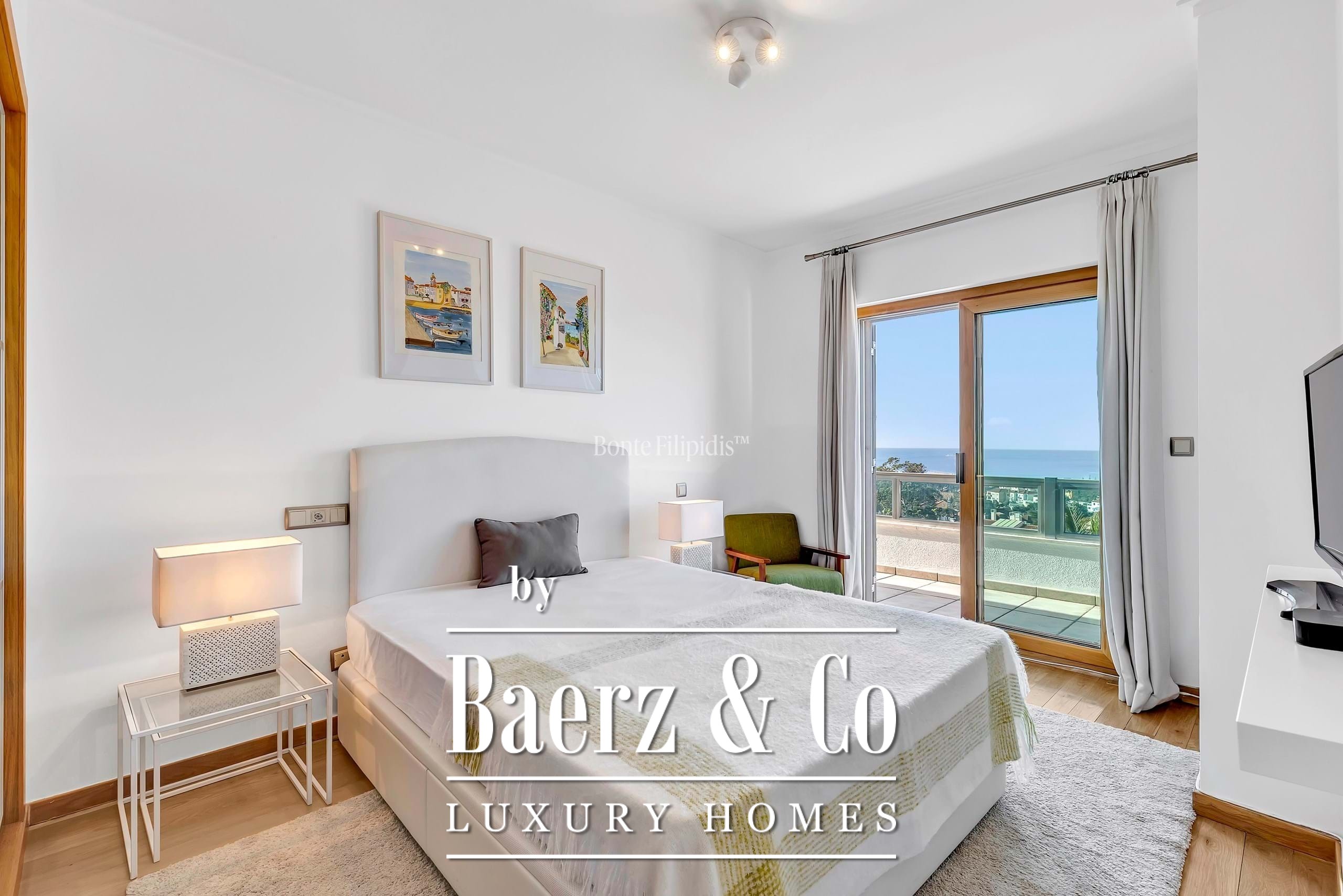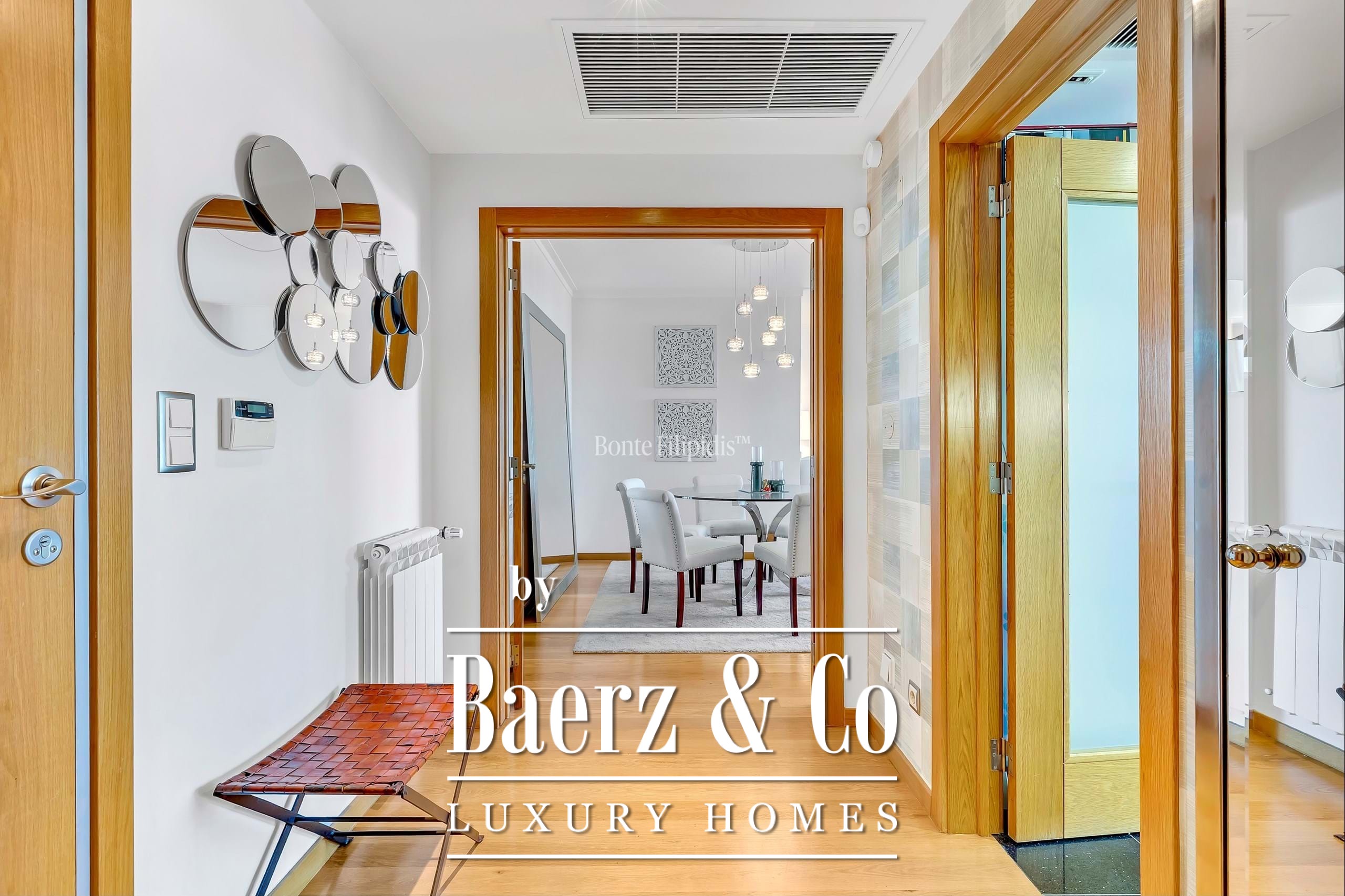 Amenities include air conditioning and heating throughout, a storage room, two private parking spaces with a total dependent area of 47 m², lift access, and participation in the condominium’s pool and well-kept gardens. The apartment benefits from proximity to Estoril’s beaches, local restaurants, schools, and direct routes to Lisbon, making it a rare proposition for those seeking an apartment with sea view in Cascais e Estoril.